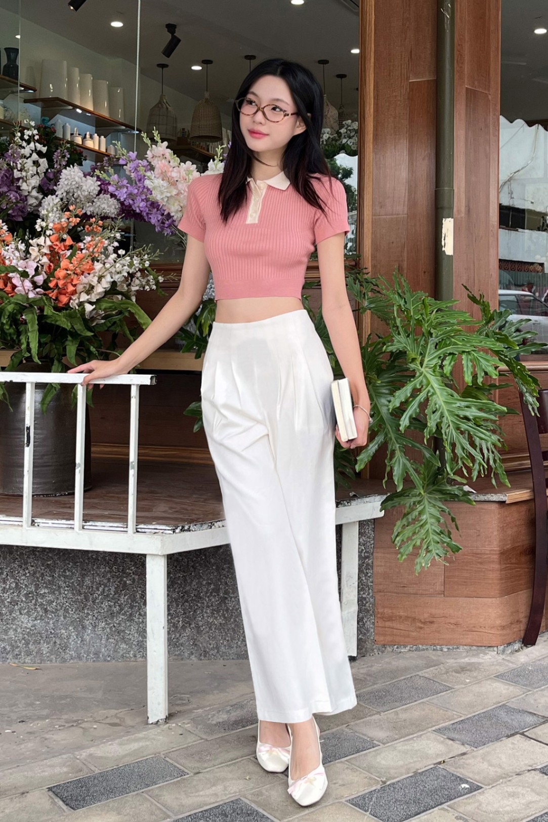 Áo len croptop cổ bẻ nẹp trụ phối - V61W24Q037