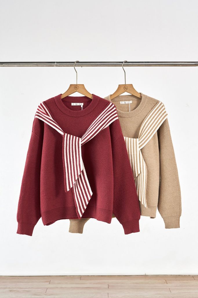 Áo len dáng rộng vai chờm phối khăn - H61W25T003 KHUYẾN MÃI - ƯU ĐÃI