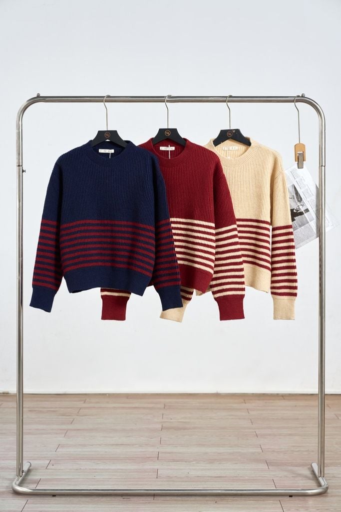 Áo len kẻ phối màu - H61W25T005 KHUYẾN MÃI - ƯU ĐÃI