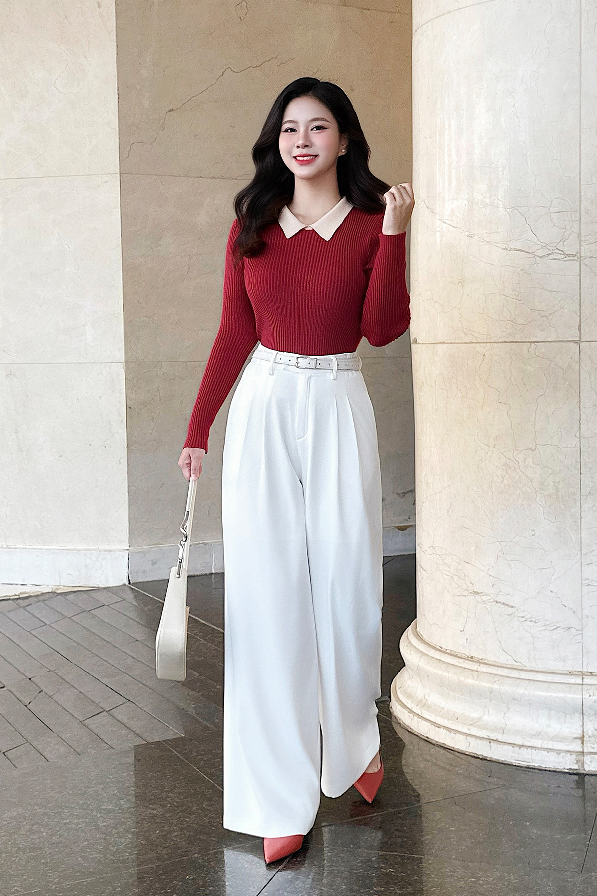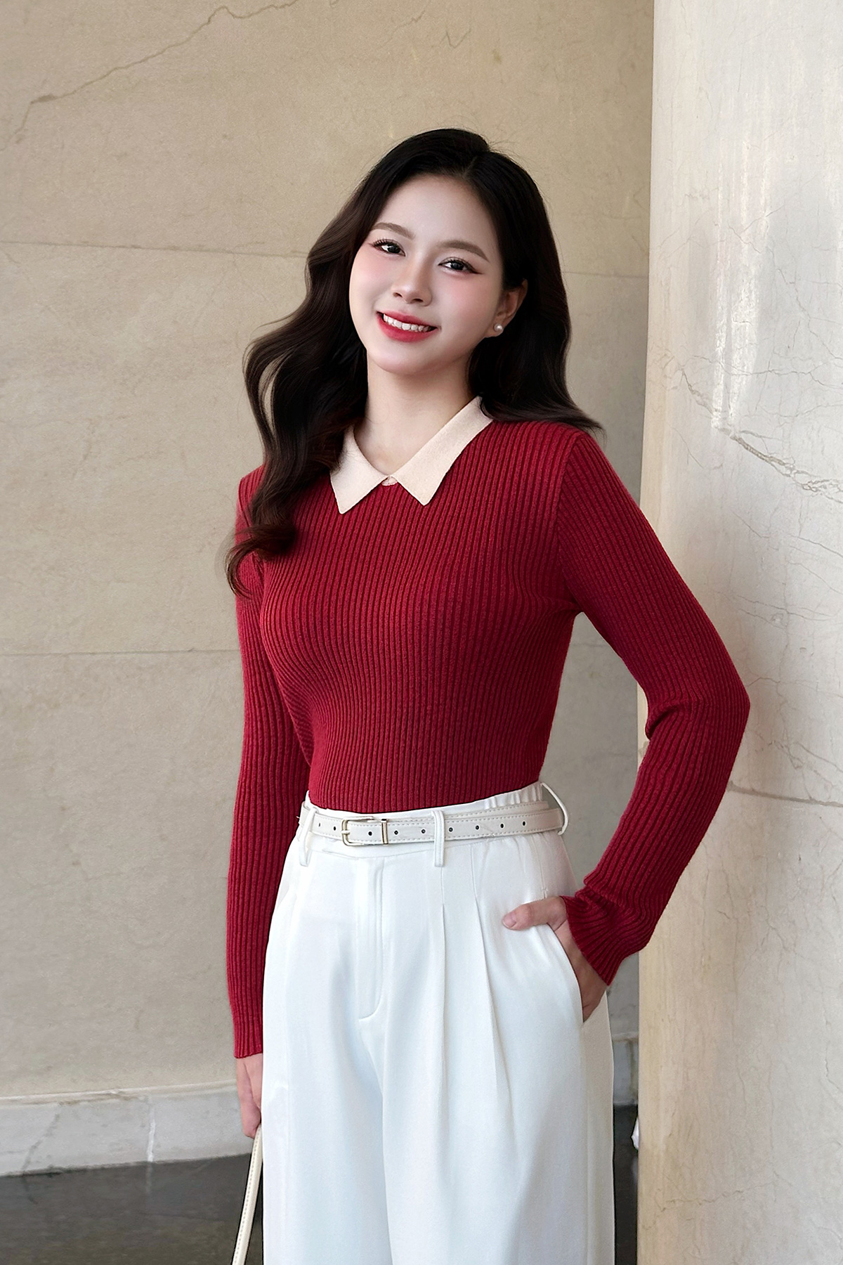Áo len ôm phối cổ - L61W25T002 KHUYẾN MÃI - ƯU ĐÃI