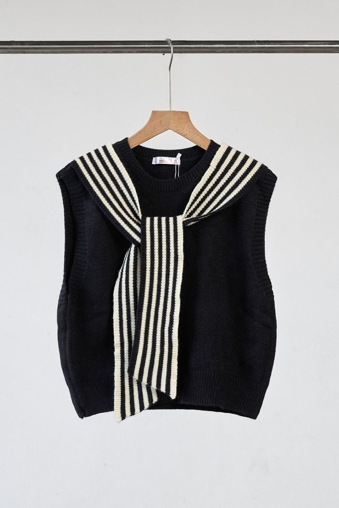 Áo len sát nách phối khăn vai kẻ - N61W25Q040
