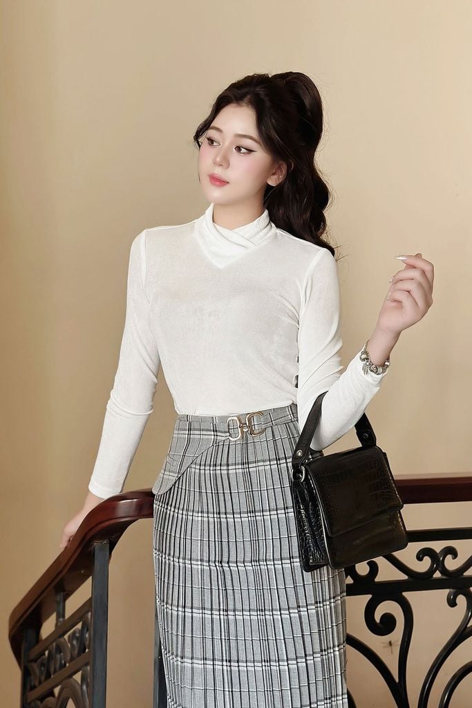 Áo len thun dài tay cổ lọ tim đè - O61B25T007 KHUYẾN MÃI - ƯU ĐÃI