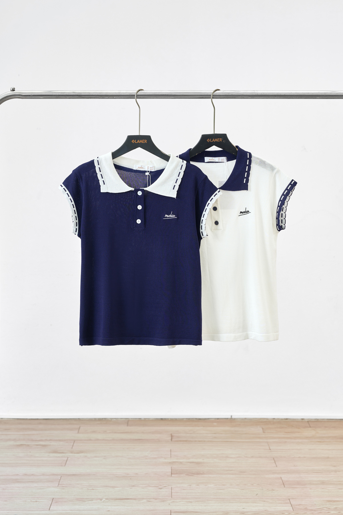 Áo len thun sát nách cổ bẻ phối màu - O61W25Q014