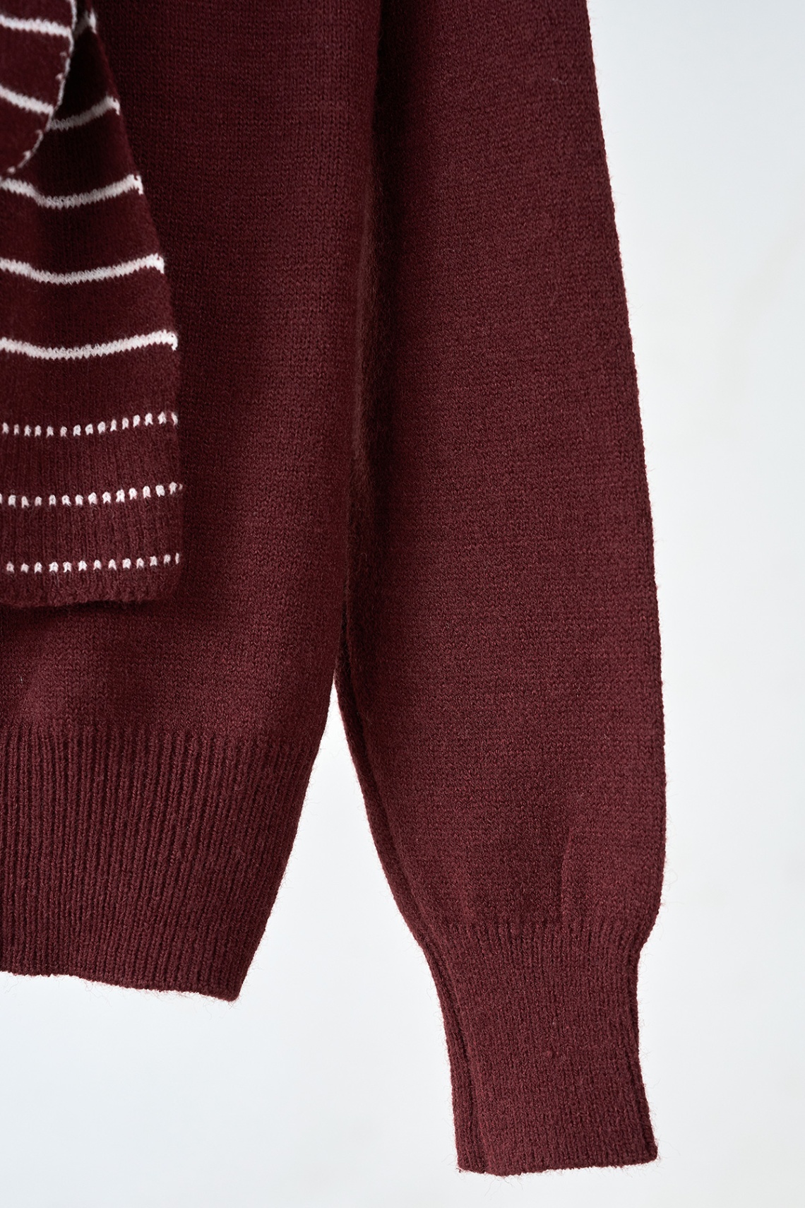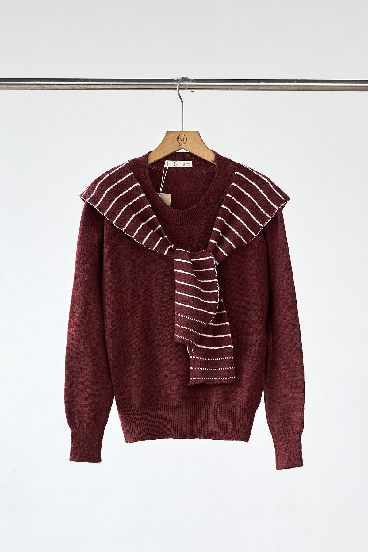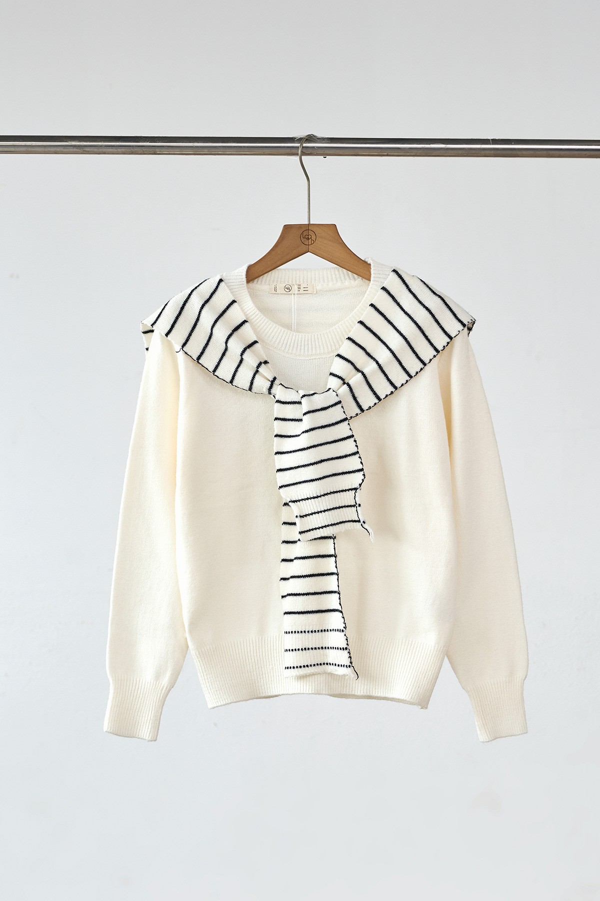 Áo len trơn cổ tròn bo kèm khăn vai kẻ - N61W25T023 KHUYẾN MÃI - ƯU ĐÃI