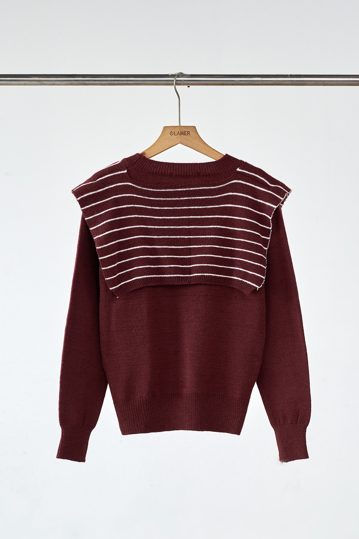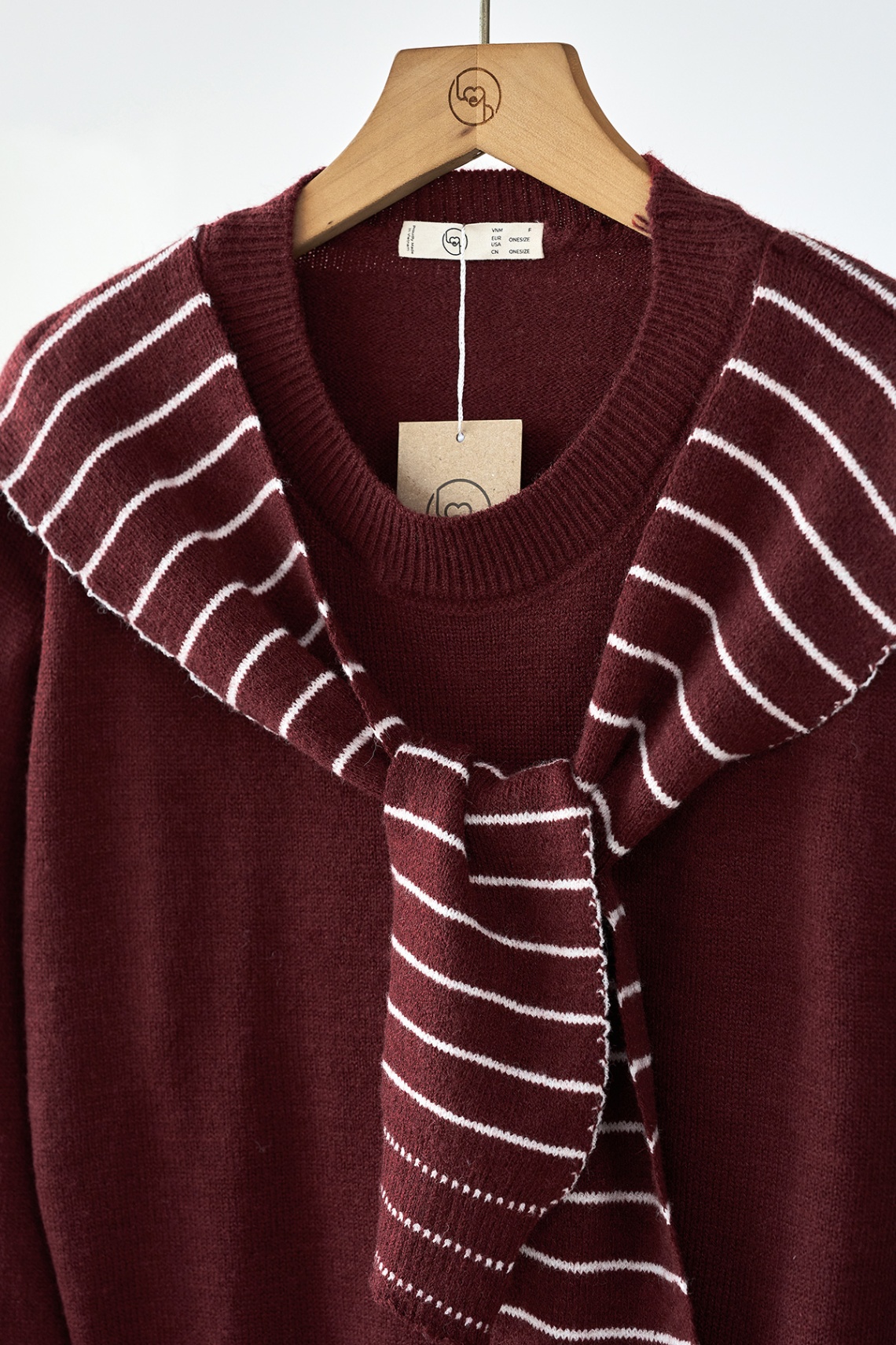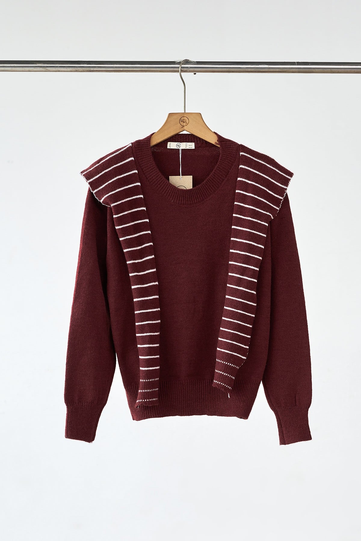 Áo len trơn cổ tròn bo kèm khăn vai kẻ - N61W25T023 KHUYẾN MÃI - ƯU ĐÃI