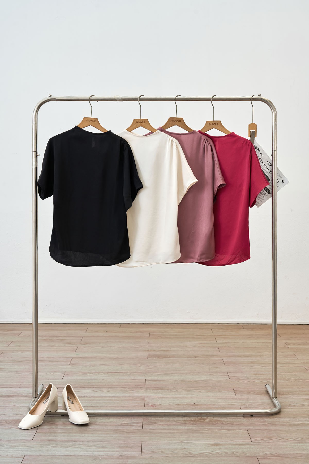 Áo lụa vai chờm nhún vai - L61B25H072 KHUYẾN MÃI - ƯU ĐÃI