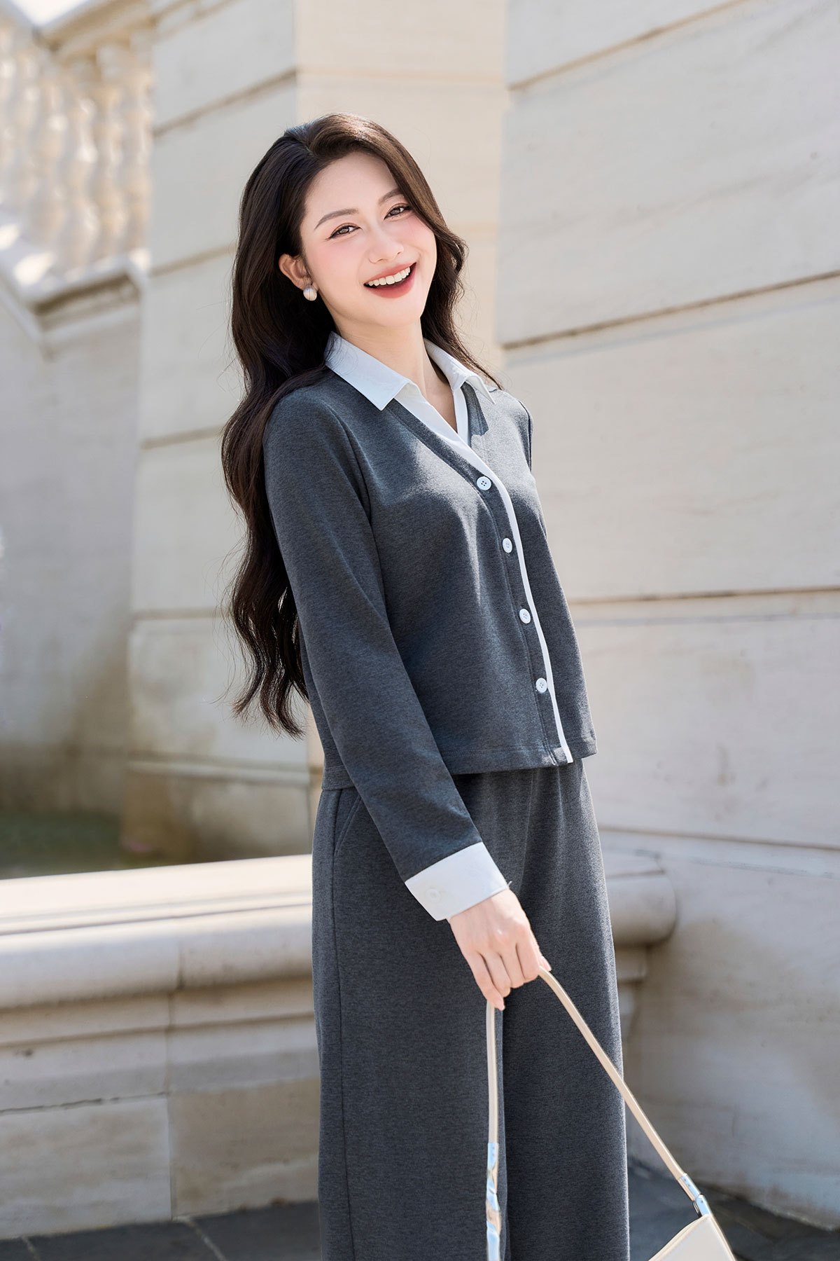 Áo nỉ da cá phối sơ mi cổ đức - O61O25T006