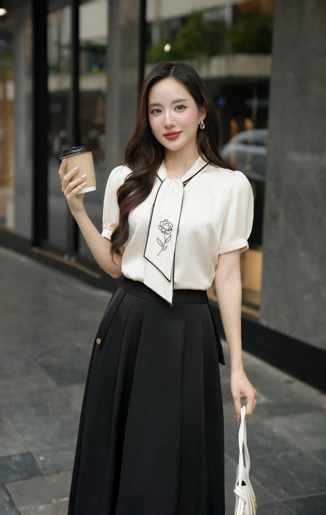 Áo nơ cổ viền phối in hoa - L61B25H045 KHUYẾN MÃI - ƯU ĐÃI
