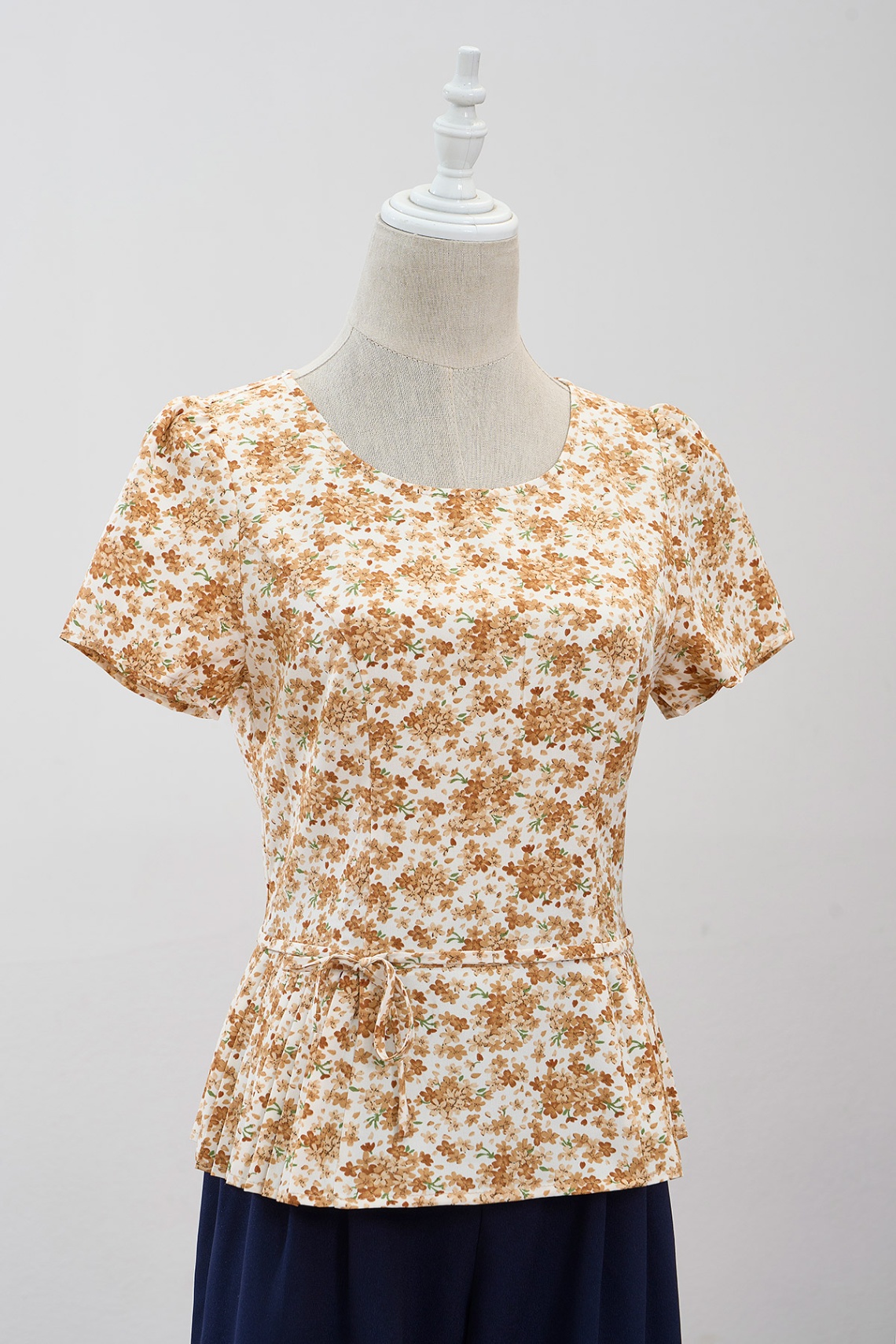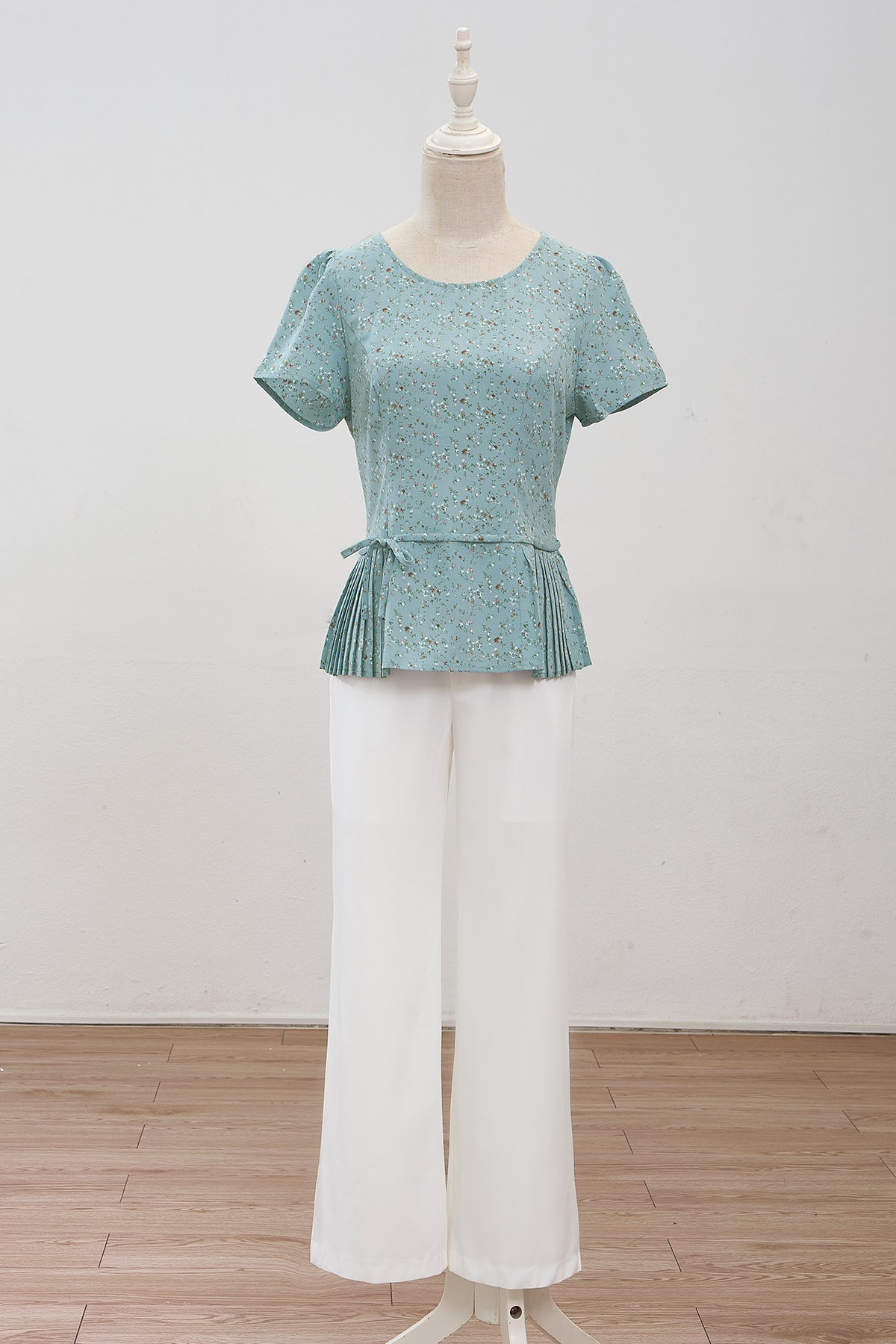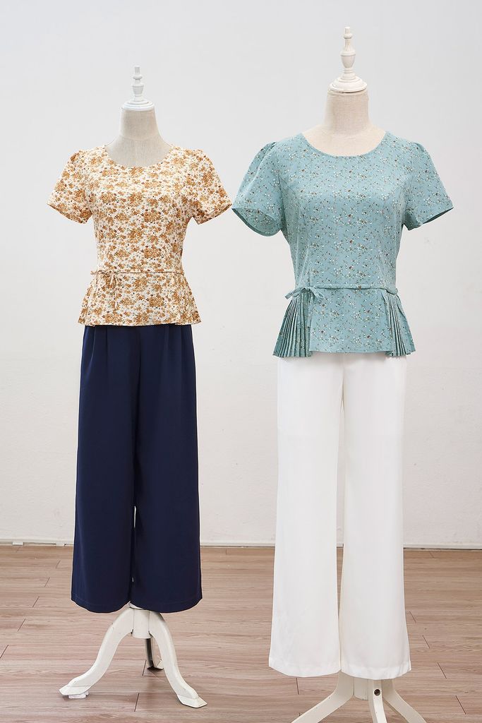 Áo nơ eo, gấu dập ly: L61B24H076