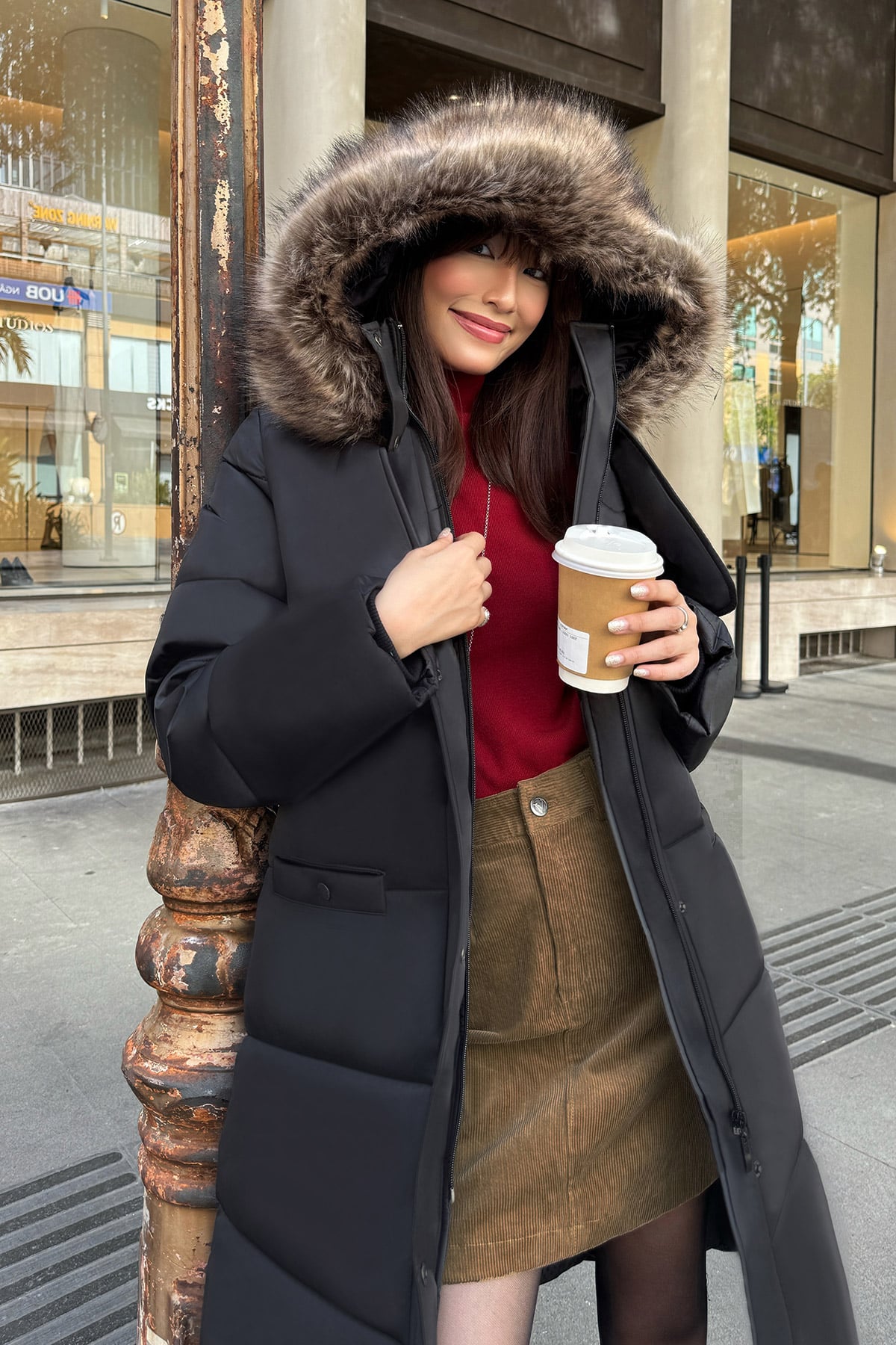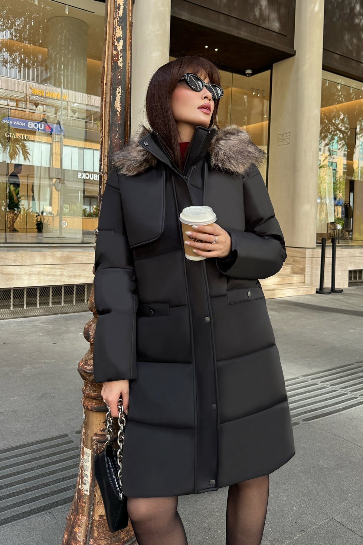 Áo phao dáng dài mũ lông : V65P24T009-S1100