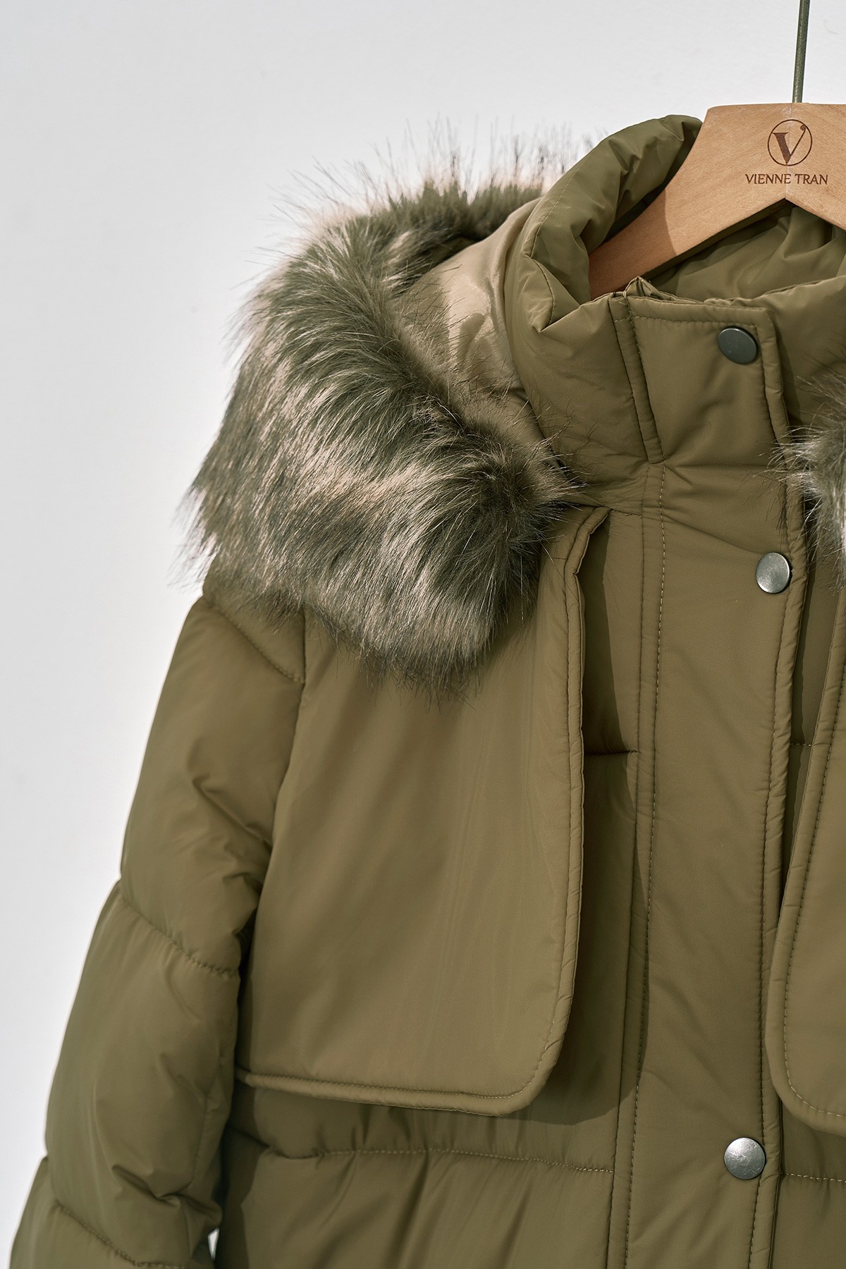 Áo phao dáng dài mũ lông - V65P24T009 KHUYẾN MÃI - ƯU ĐÃI