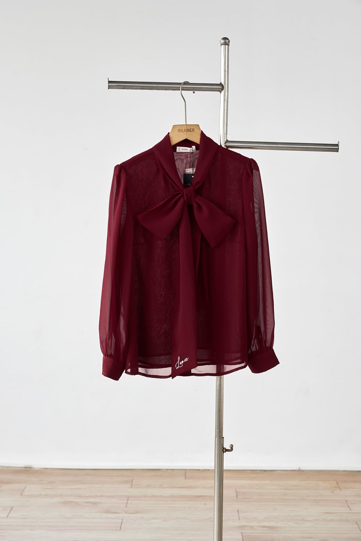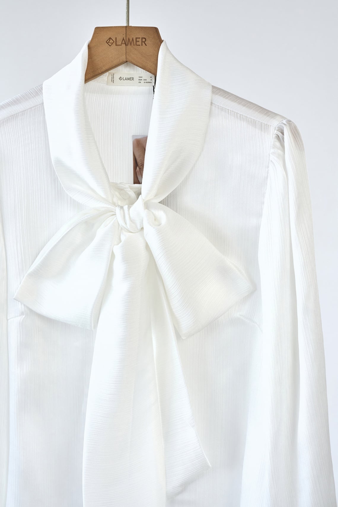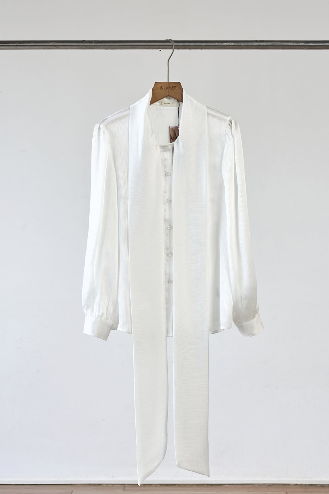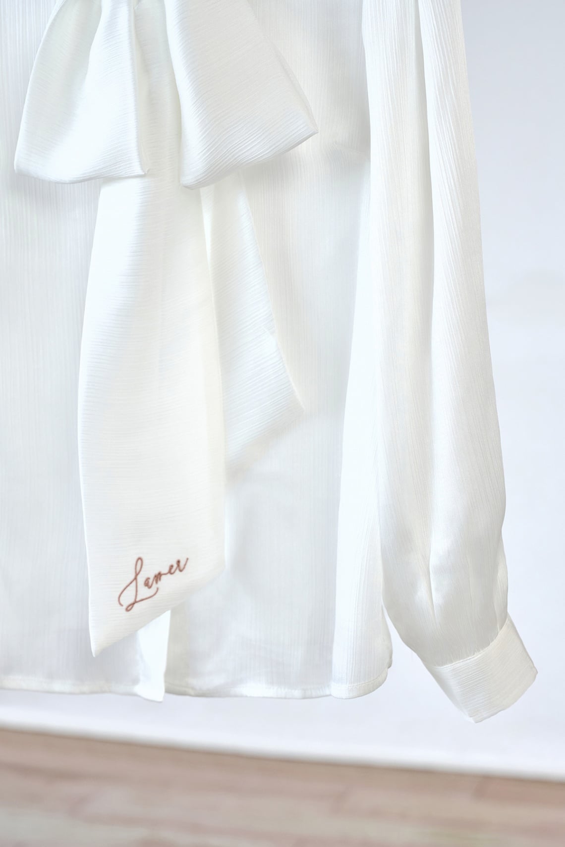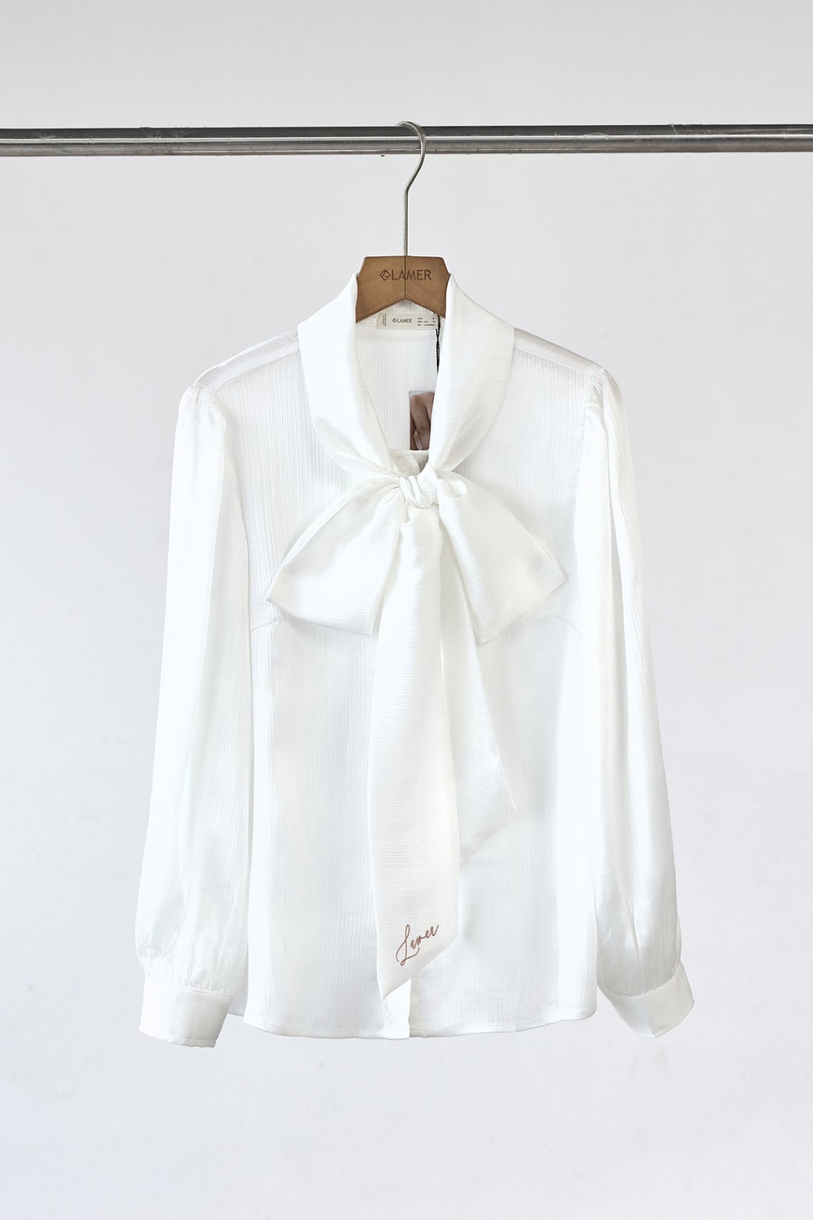 Áo sơ mi cổ buộc nơ thêu chữ - L61H25Q035