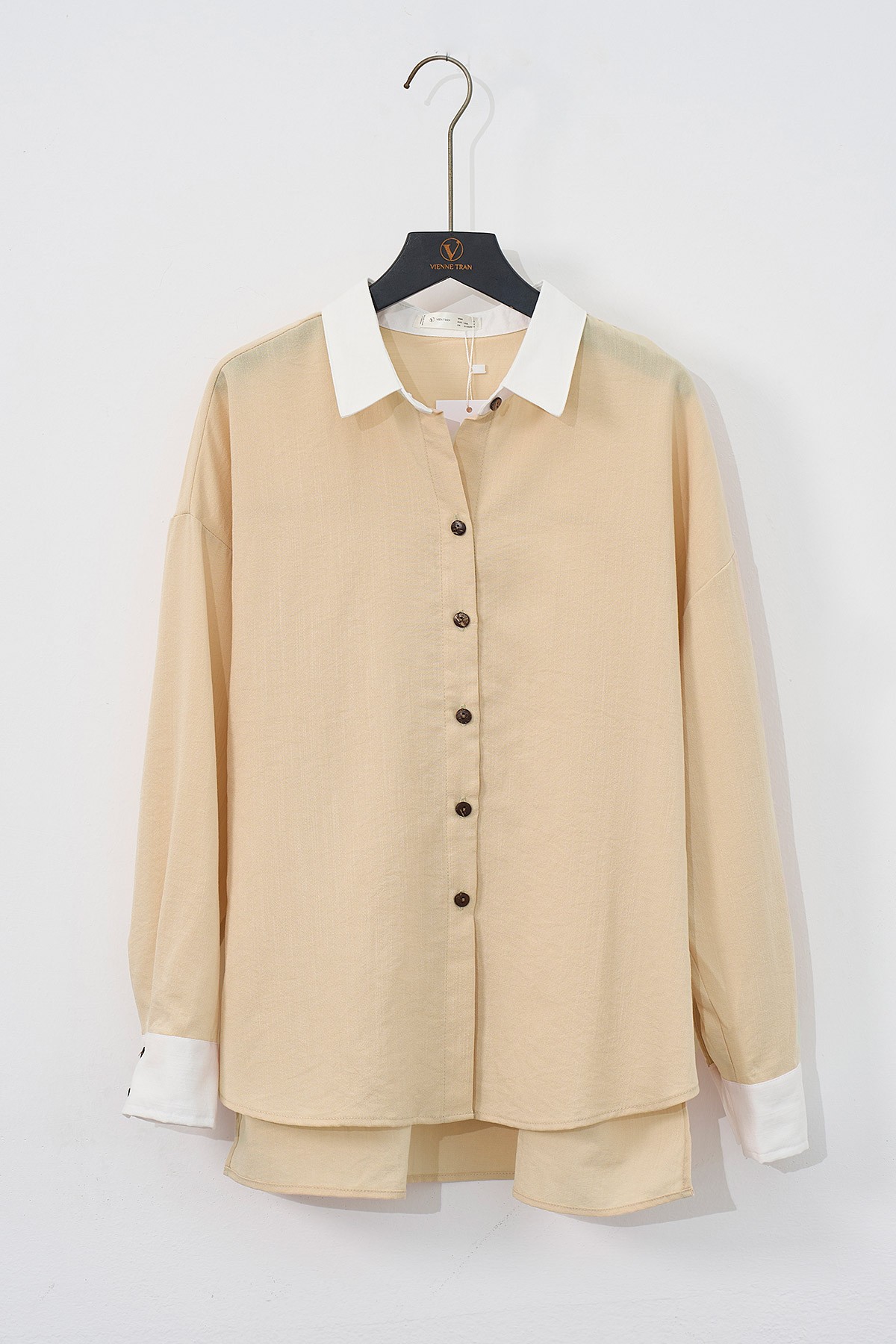 Áo sơ mi cổ đức, dáng rộng phối màu-GBH007 : V61H24Q026-S1800