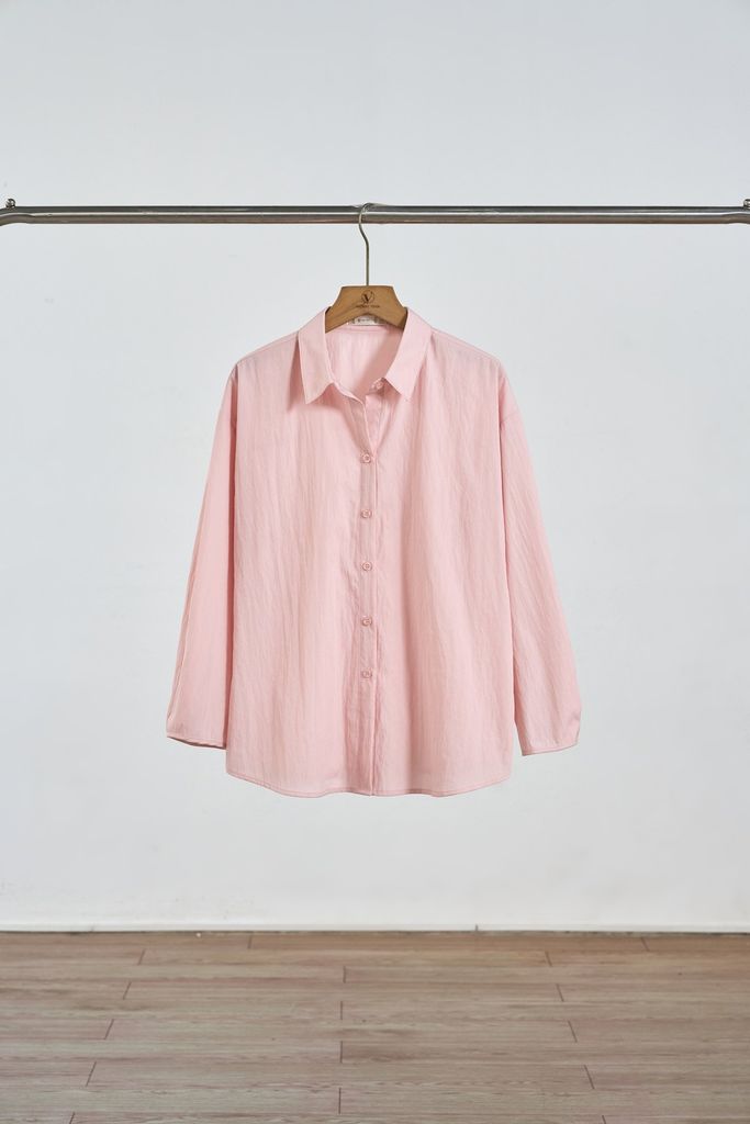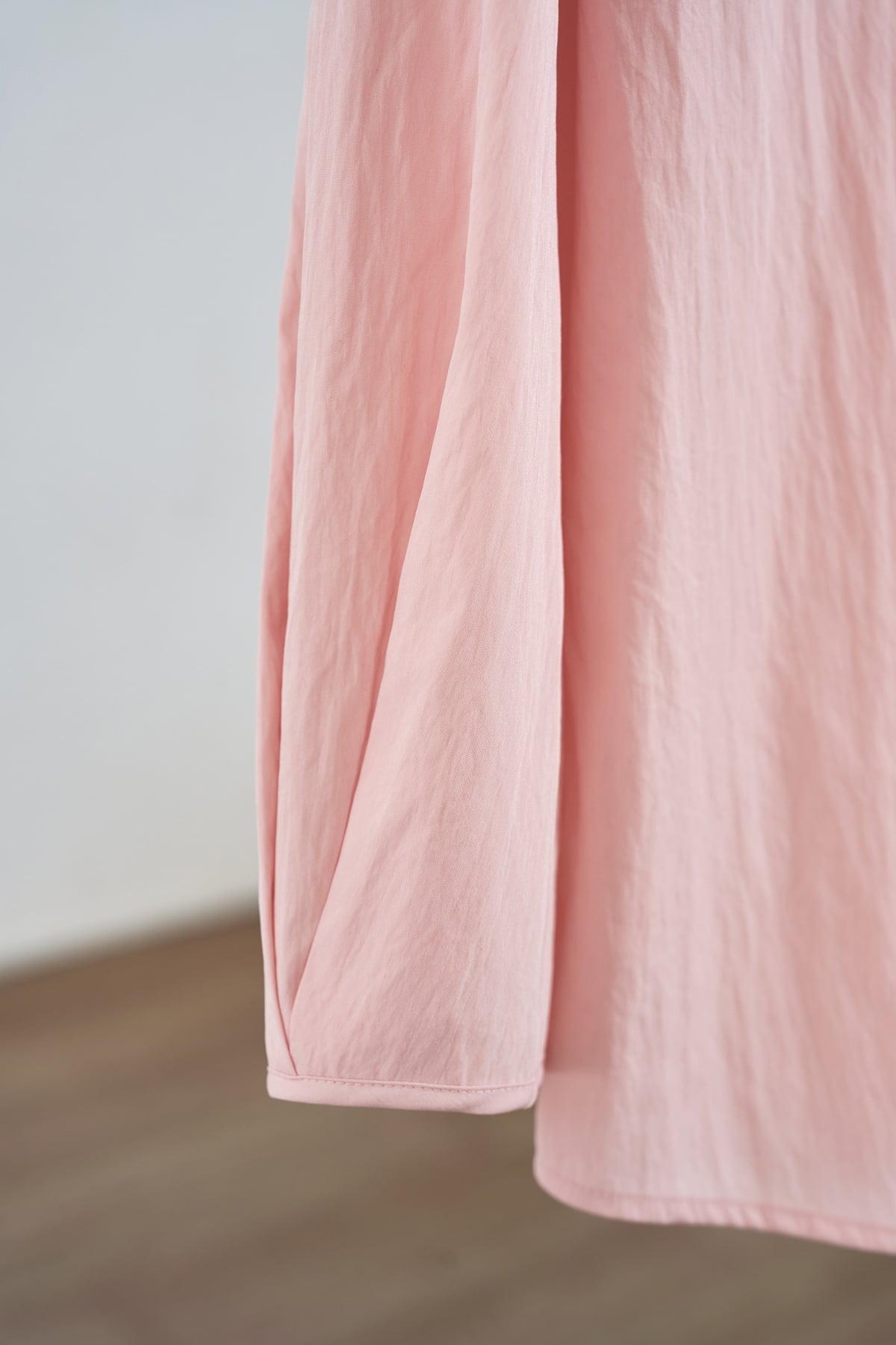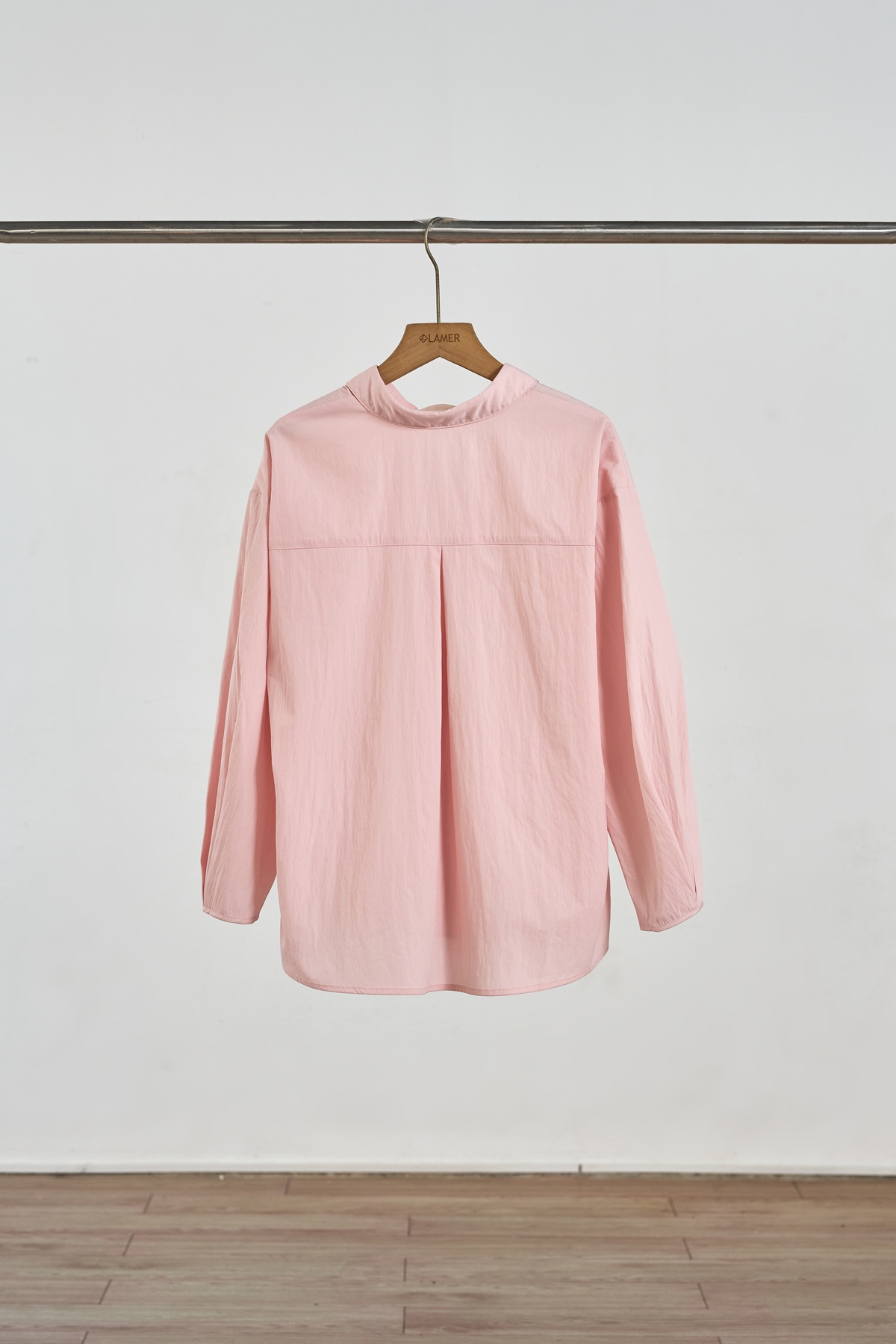 Mô tả sản phẩm: Áo sơ mi cổ đức, viền cửa tay, xếp ly tay phồng, dáng A nhẹ.