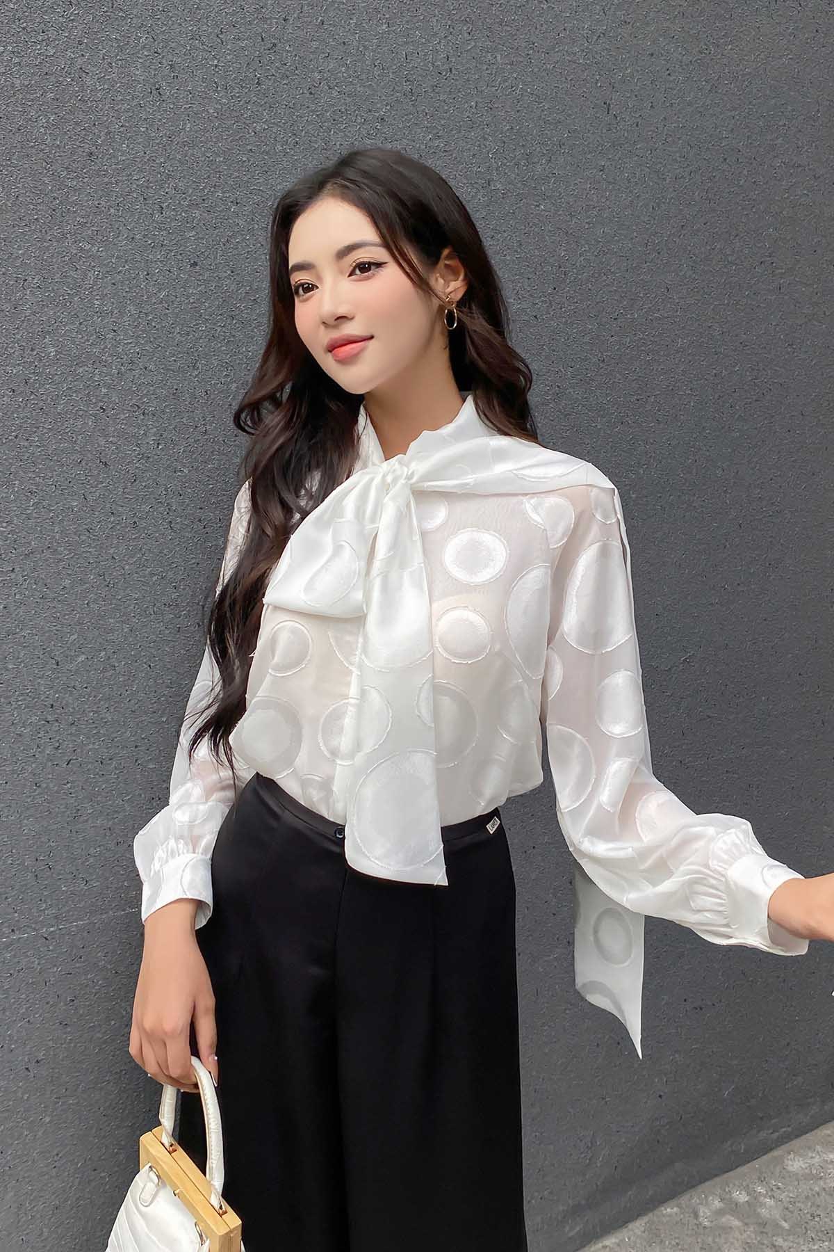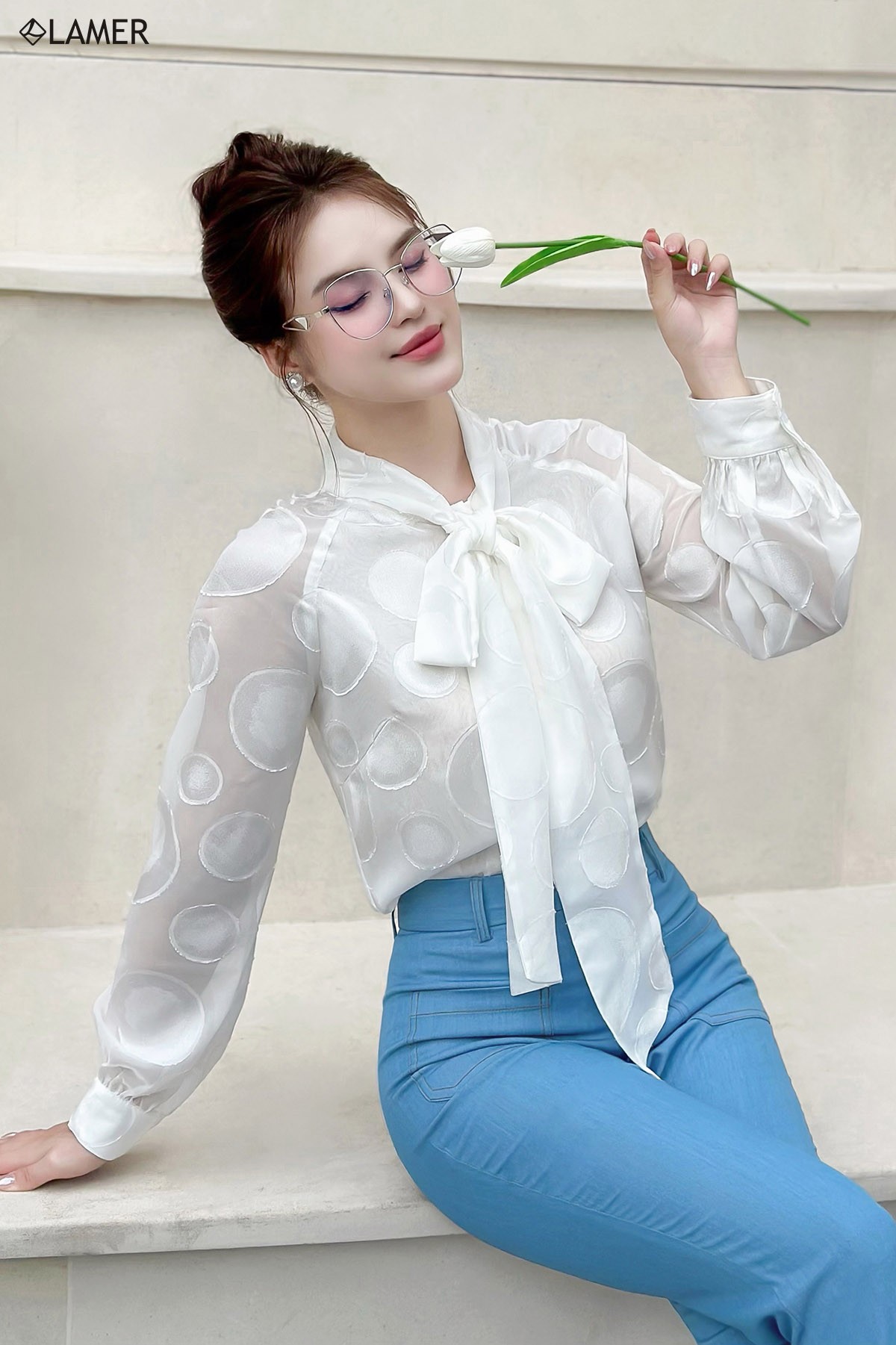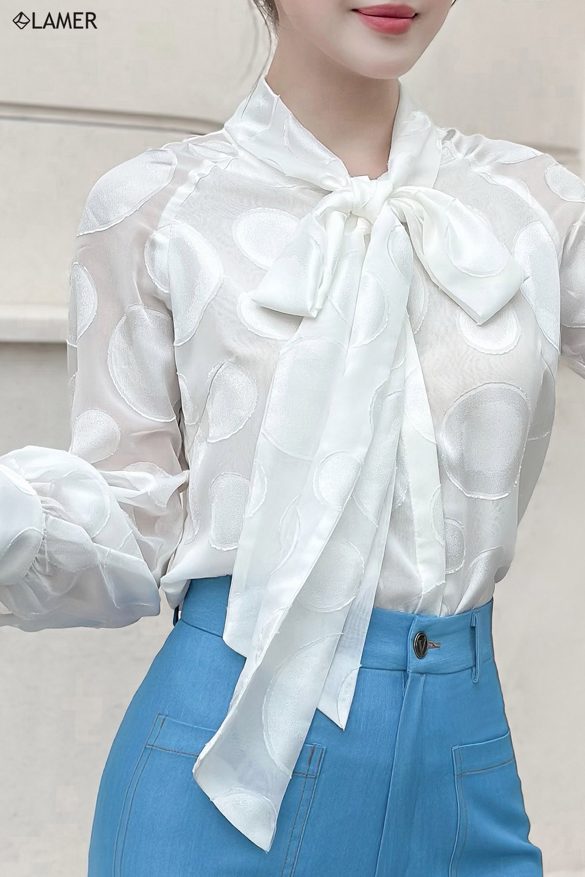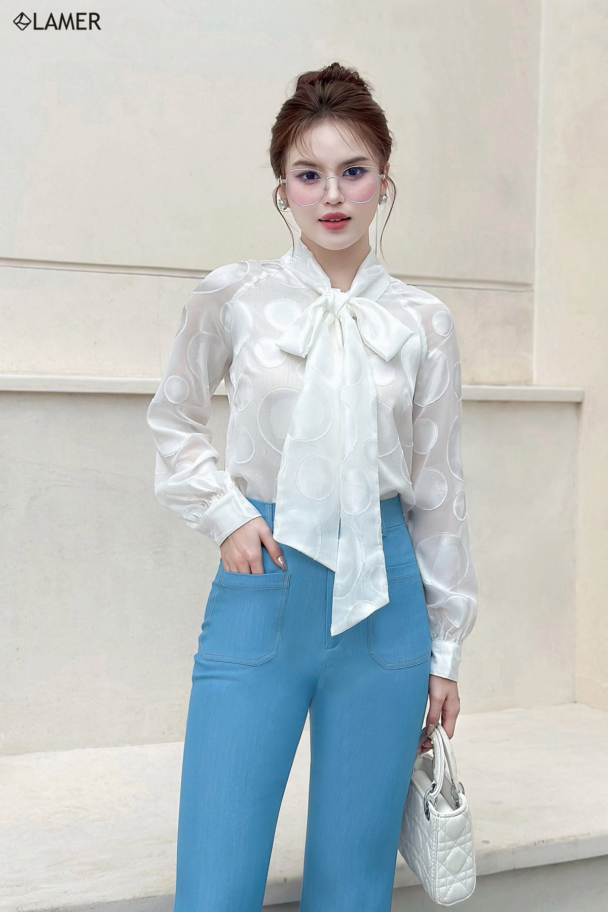 Áo sơ mi cổ nơ, tay raplang : L61H23Q064-S1500