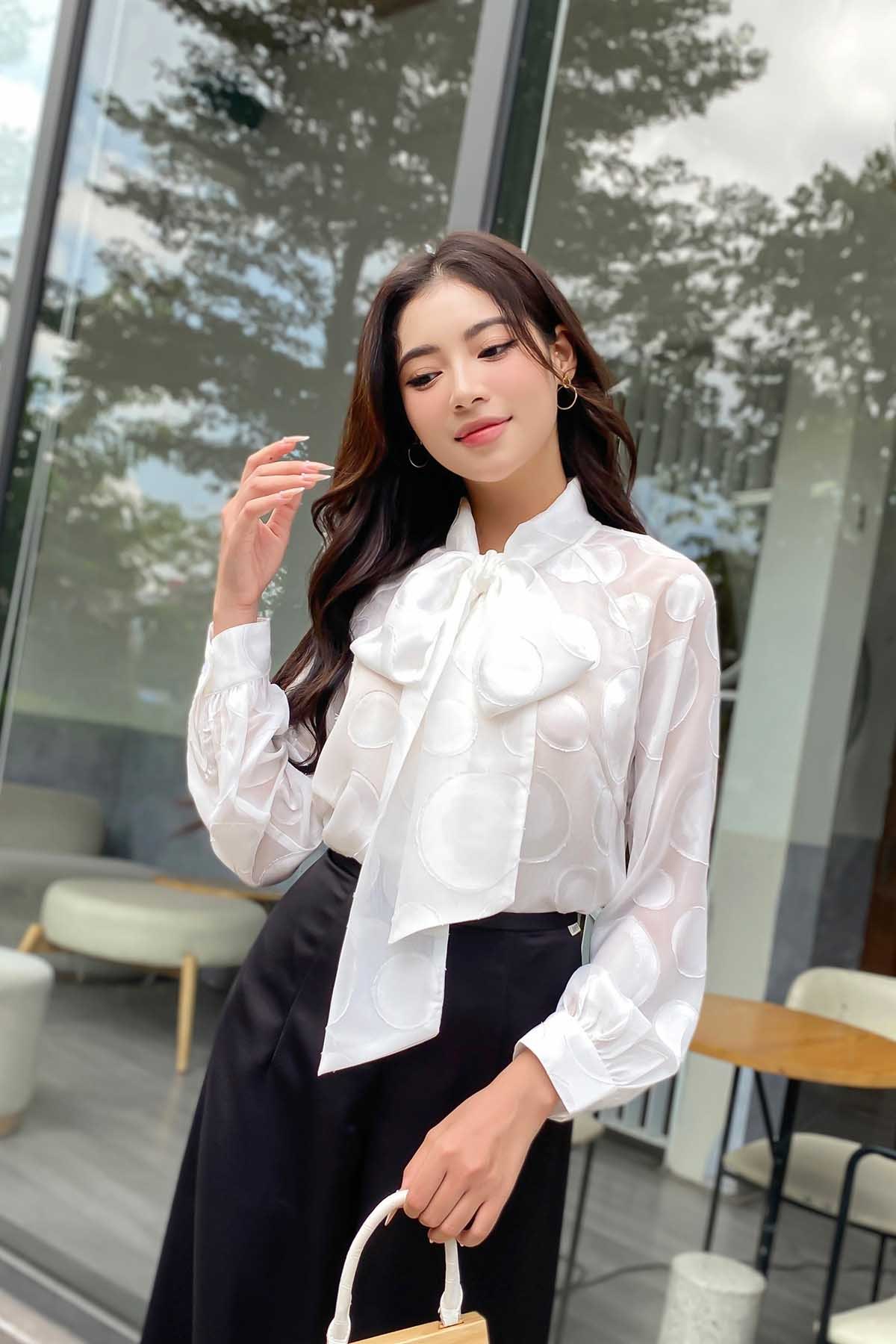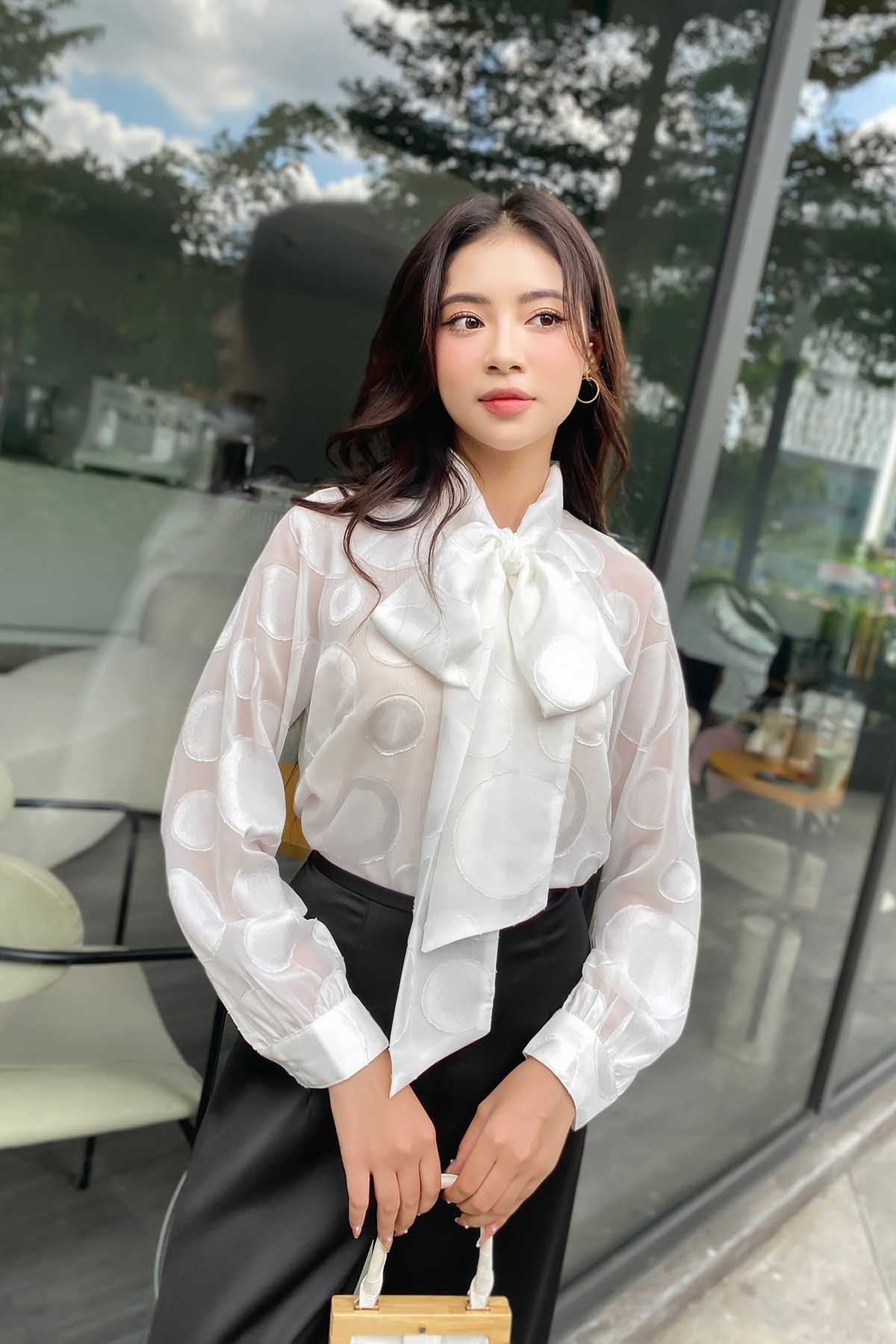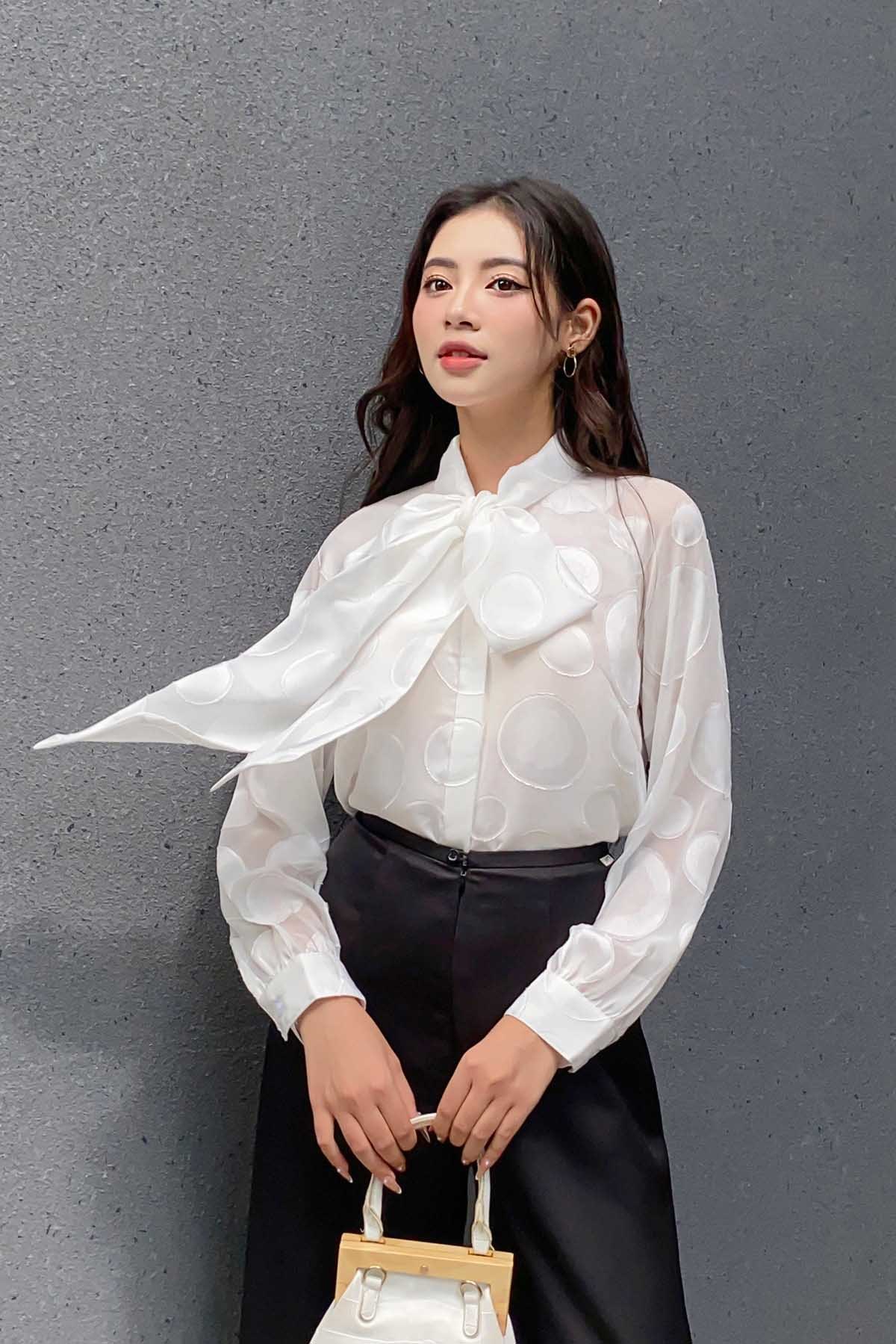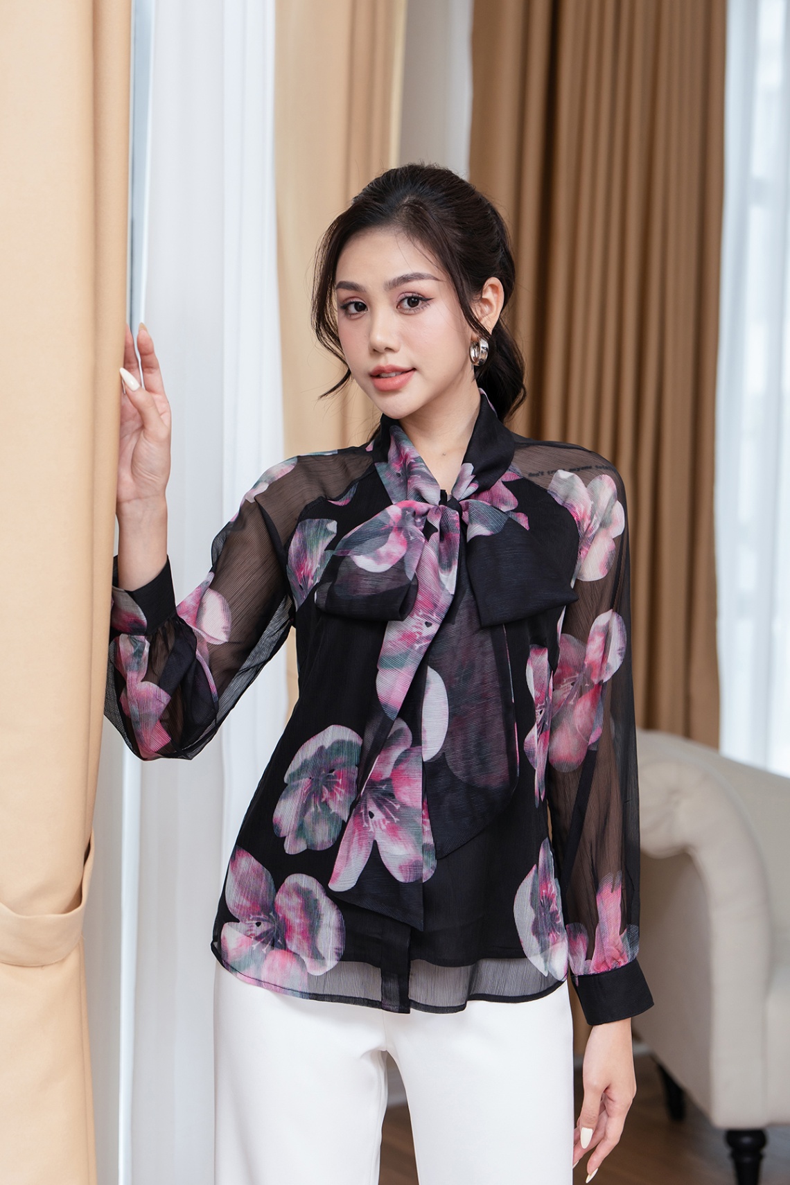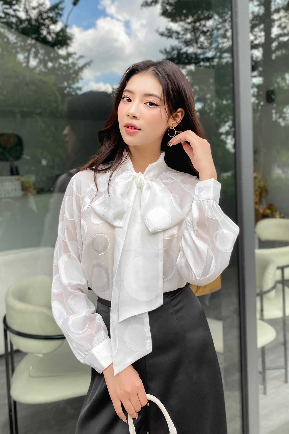 Áo sơ mi cổ nơ, tay raplang : L61H23Q064-S1500