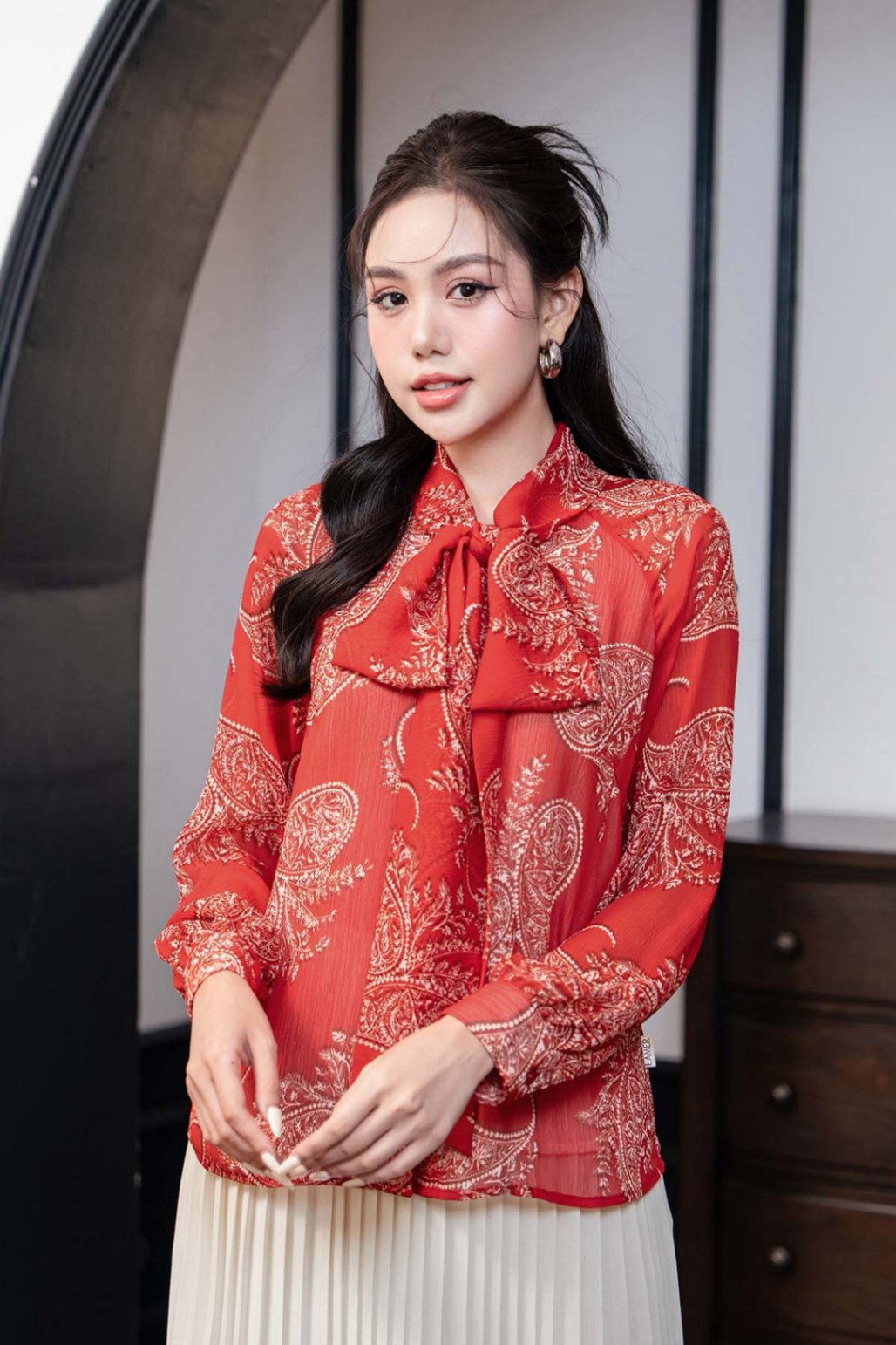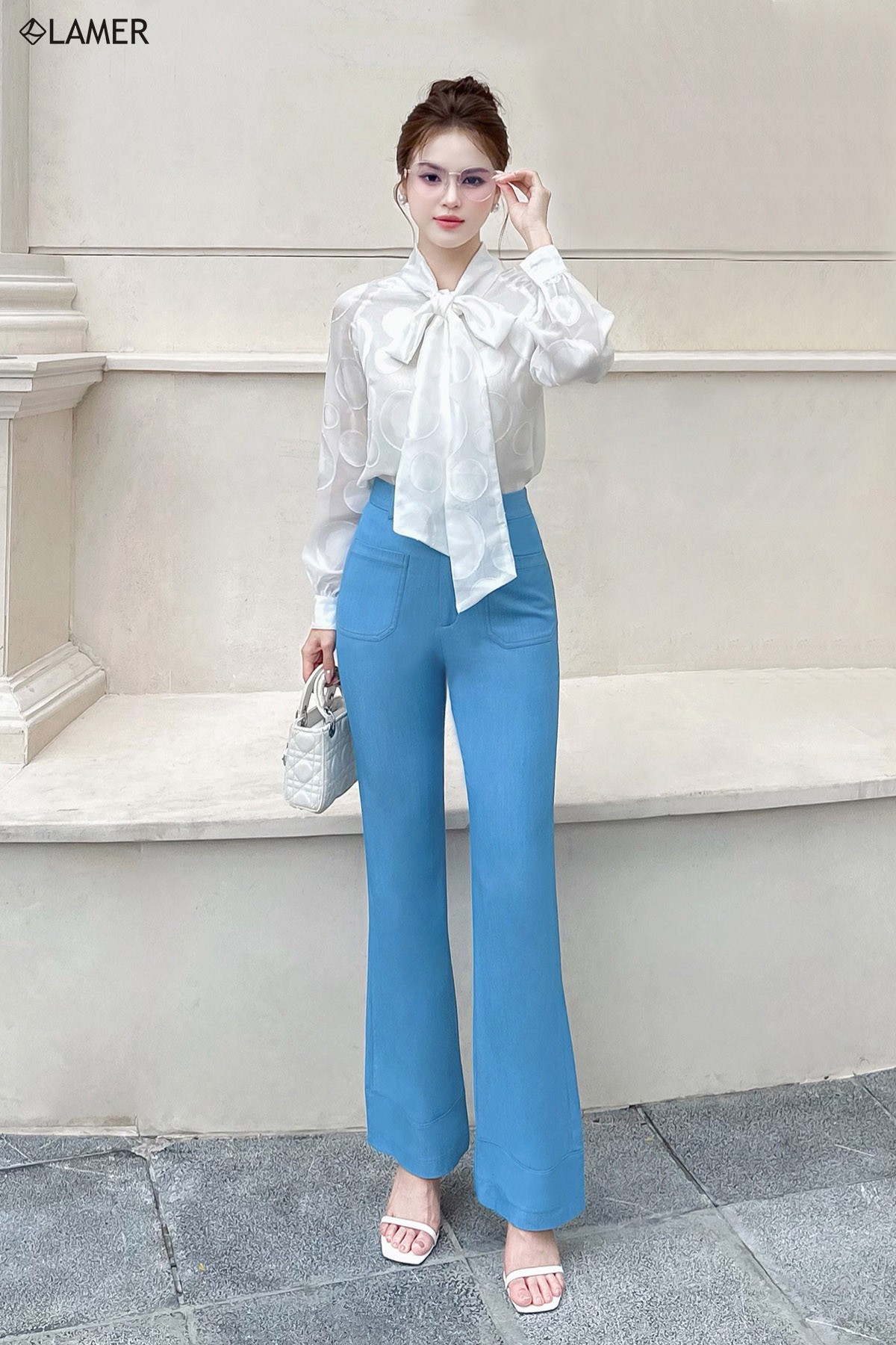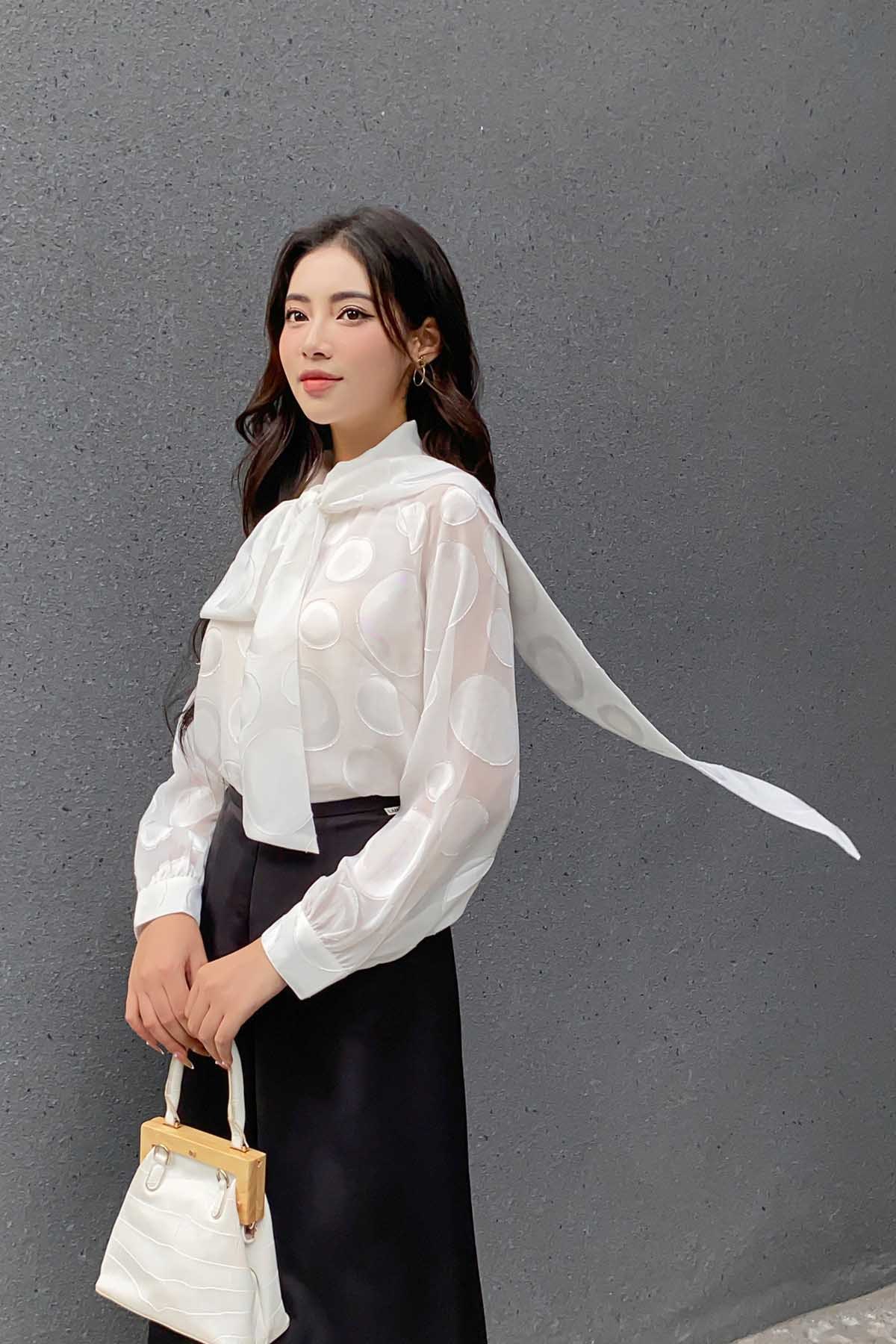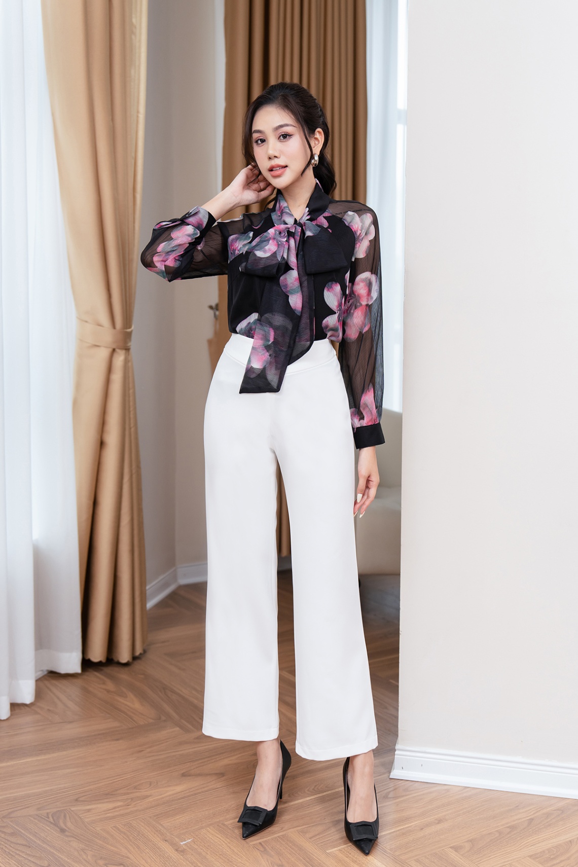 Áo sơ mi cổ nơ, tay raplang : L61H23Q064-S1500