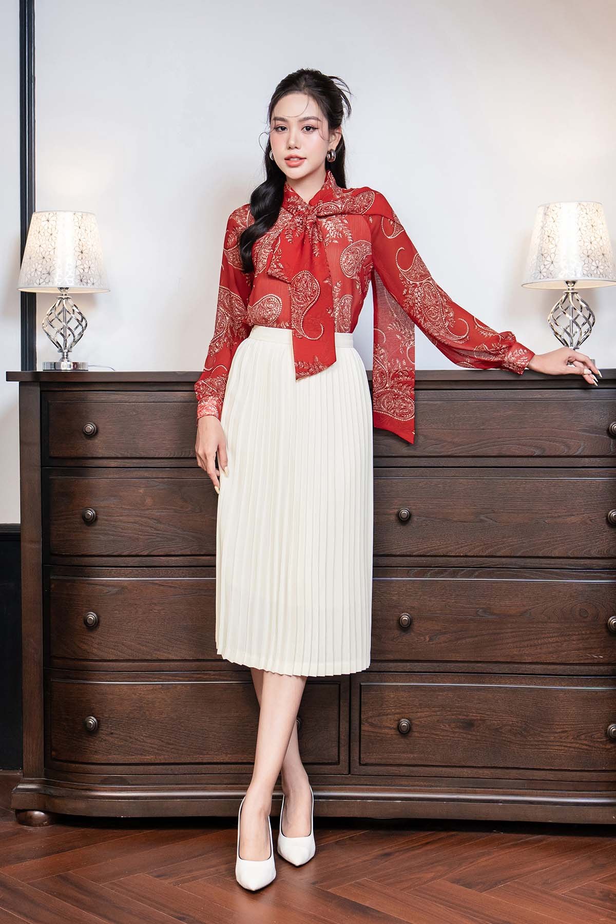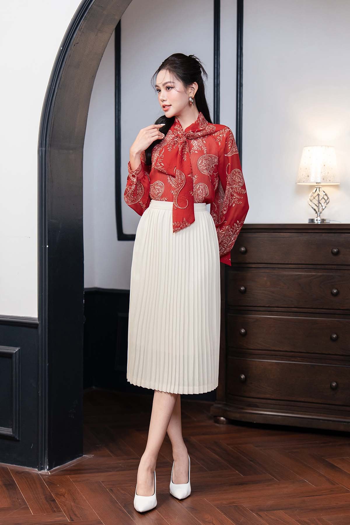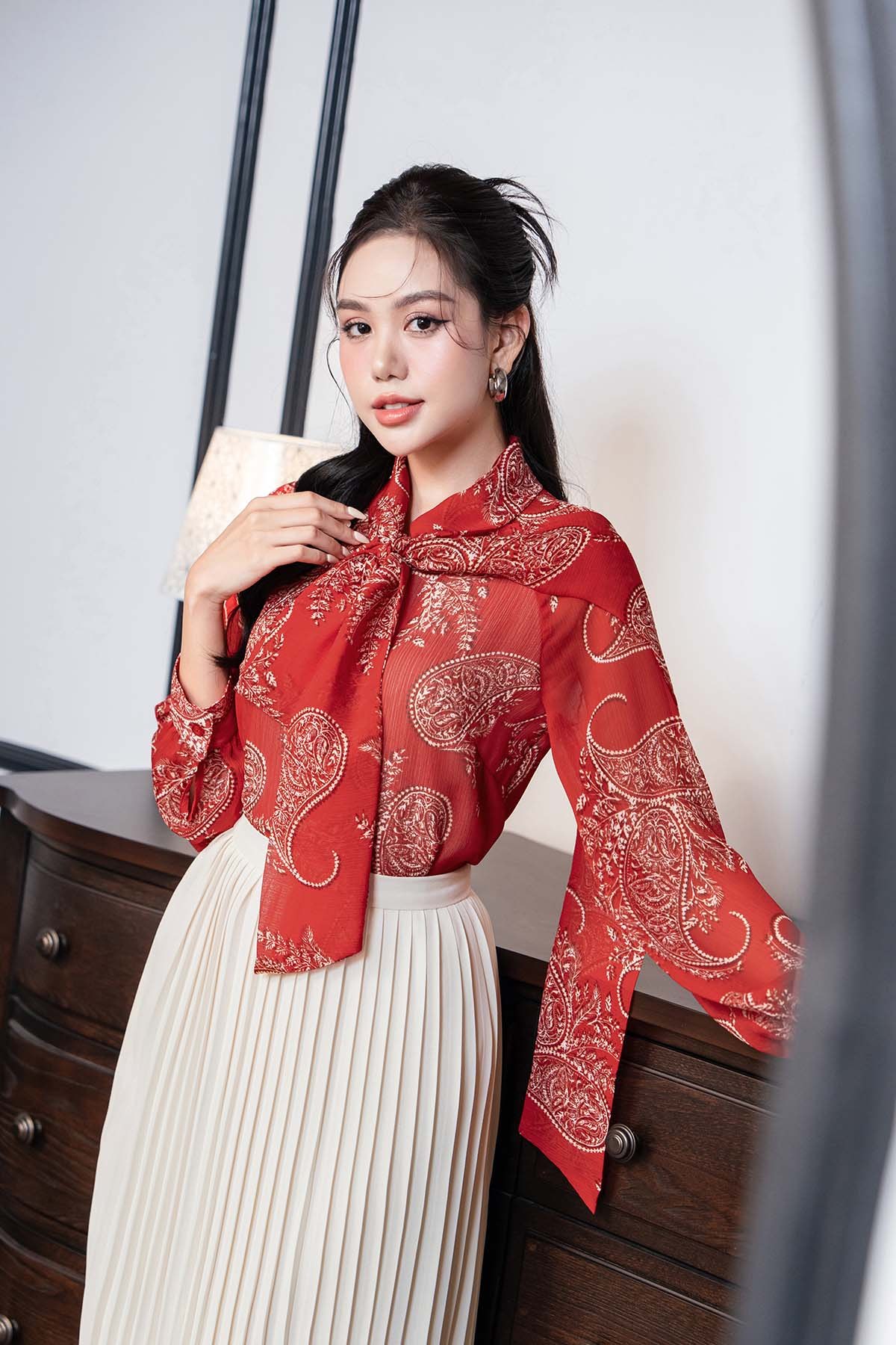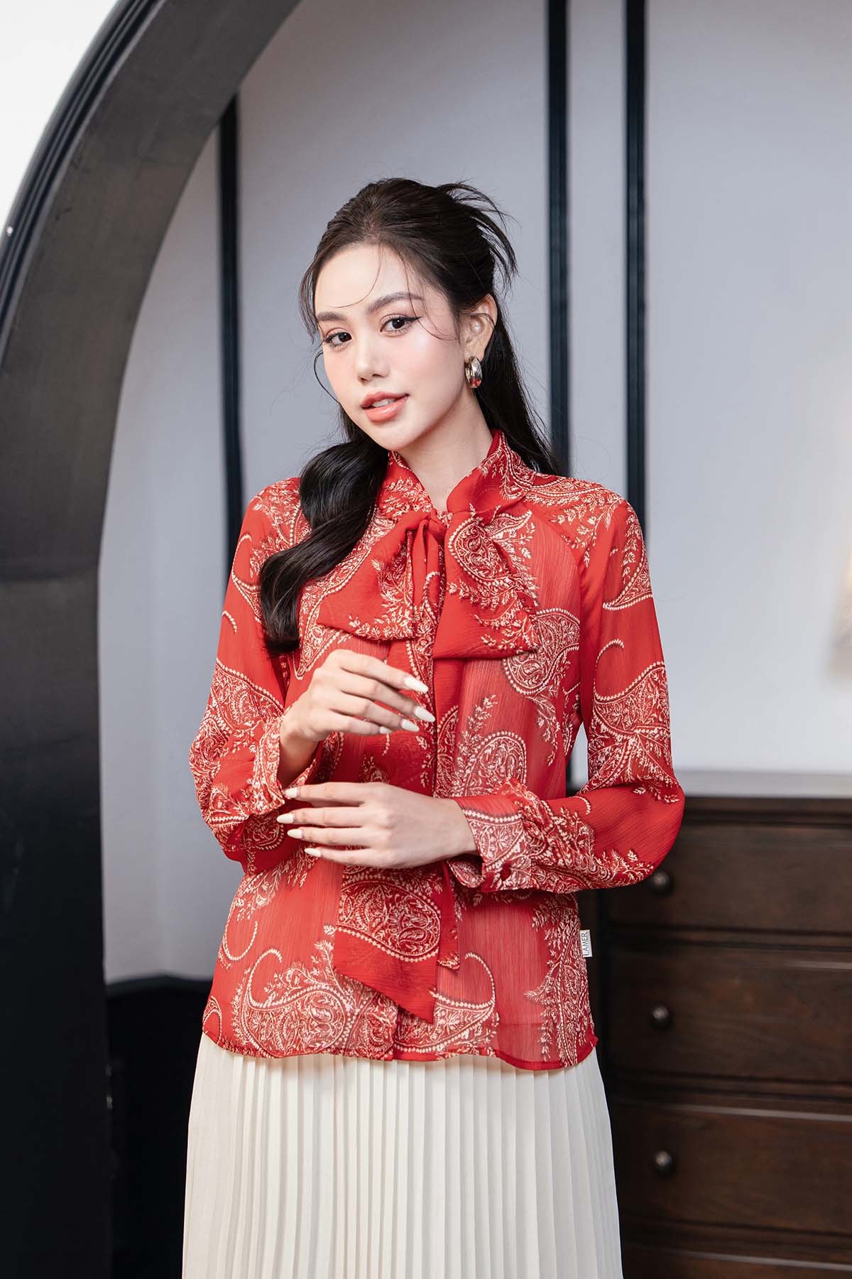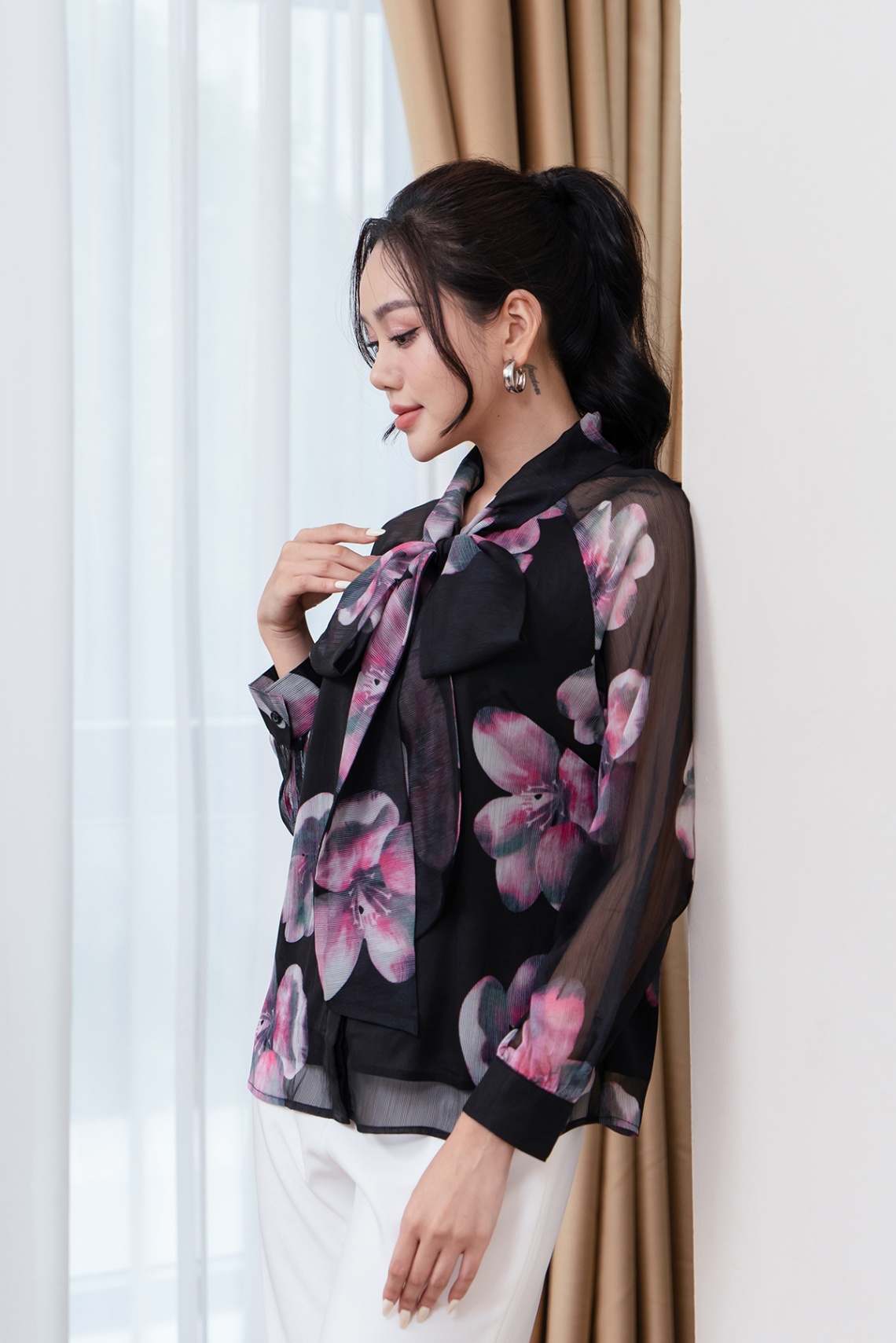 Áo sơ mi cổ nơ, tay raplang : L61H23Q064-S1500