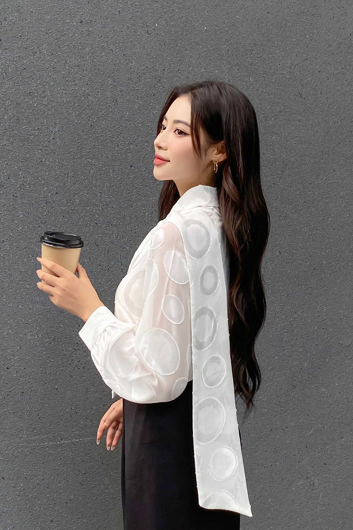 áo sơ mi cổ nơ - L61H23Q064 KHUYẾN MÃI - ƯU ĐÃI