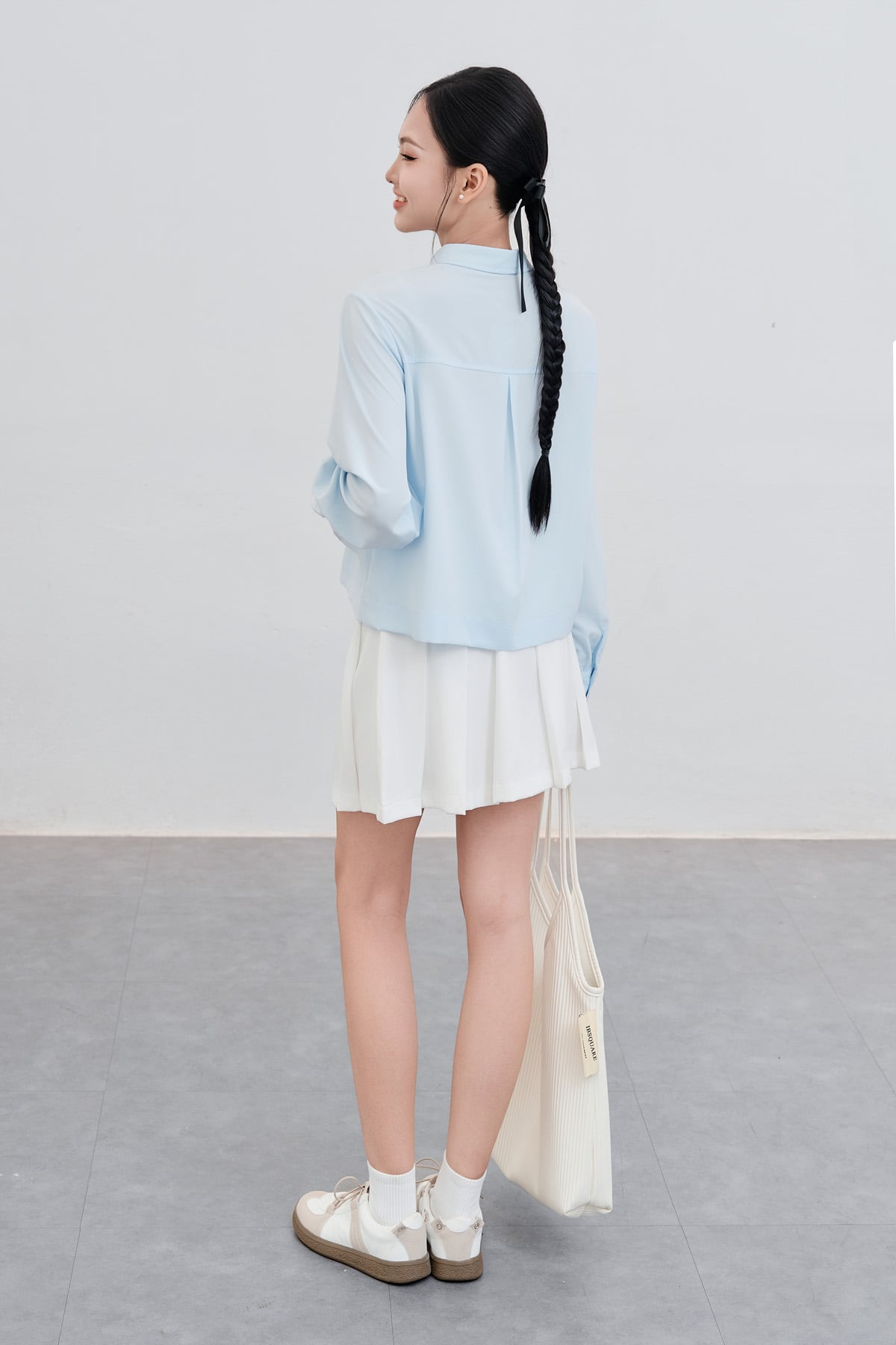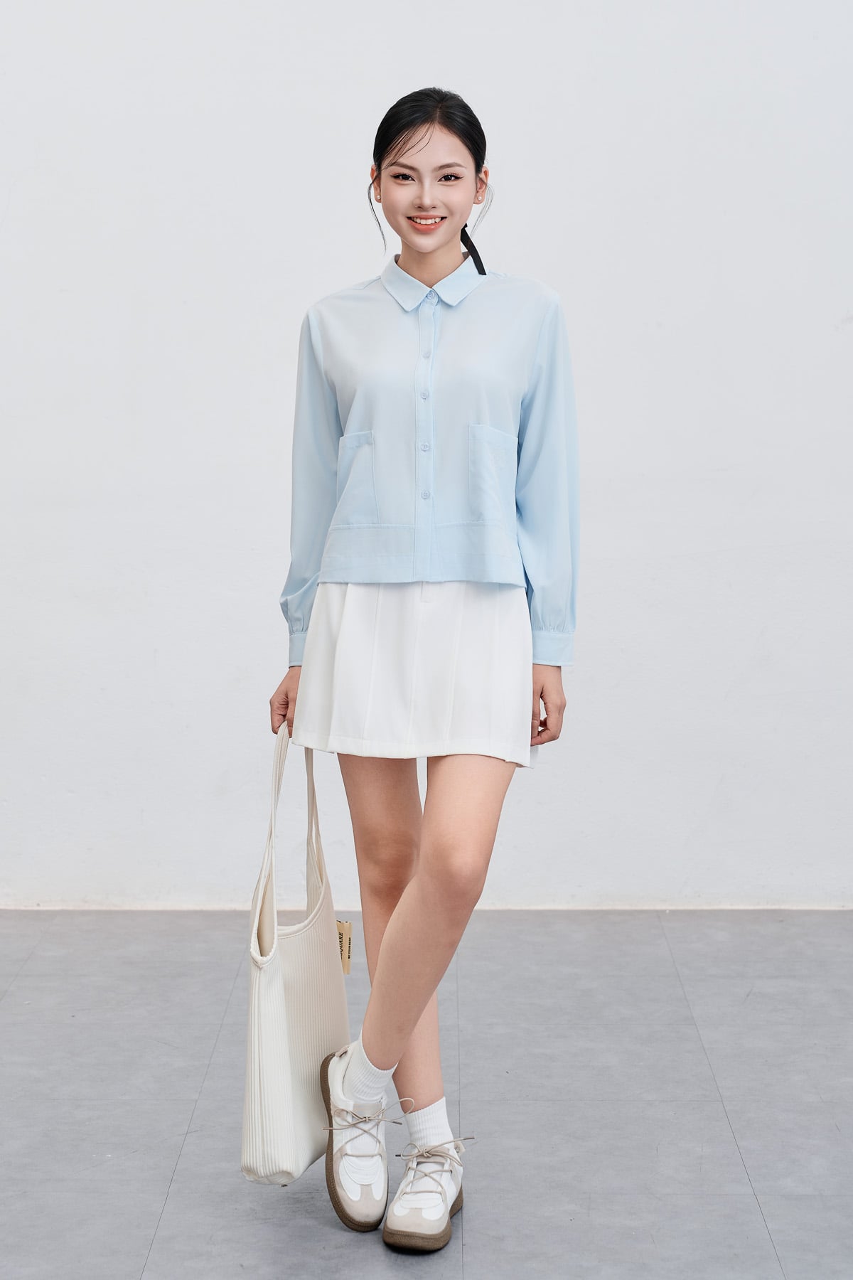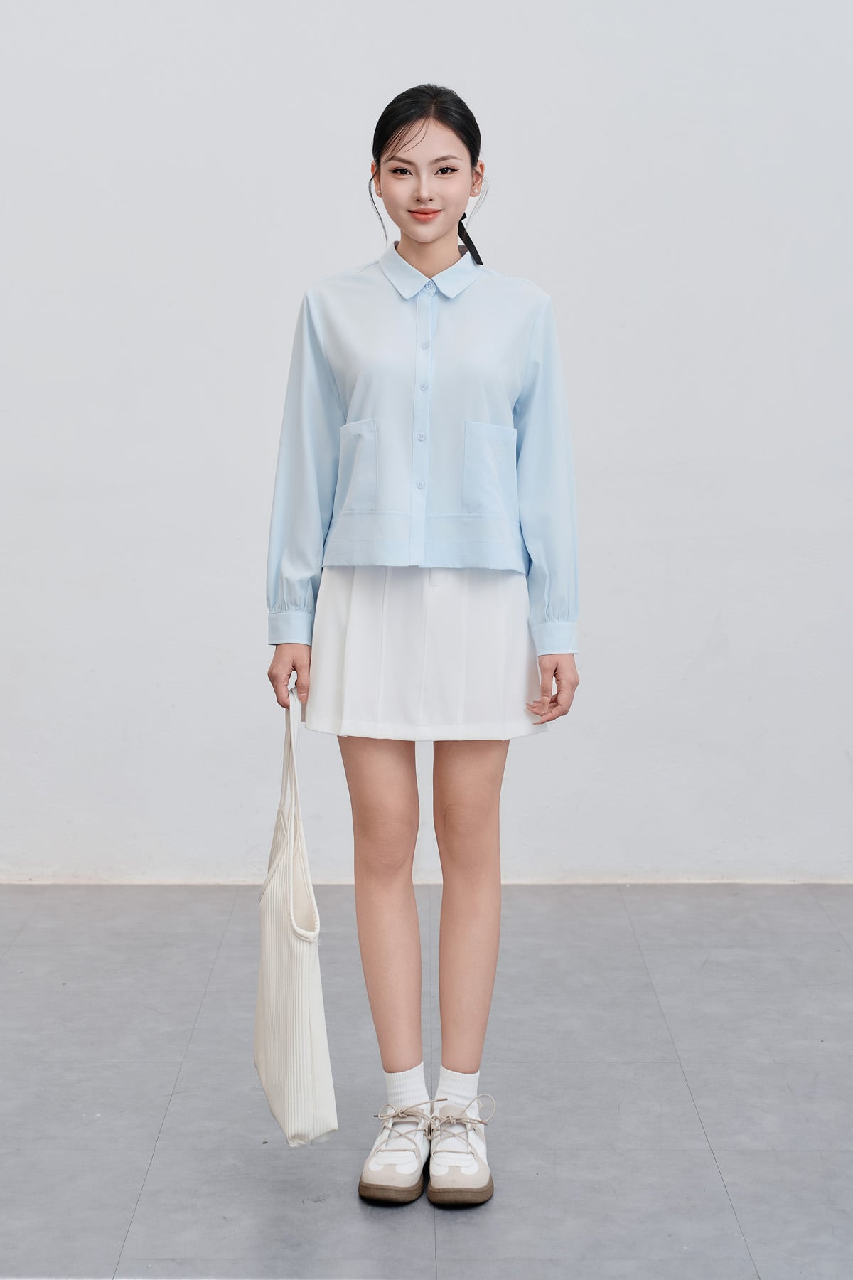 Áo sơ mi dáng rộng; cổ đức; túi ốp : H61H25Q002