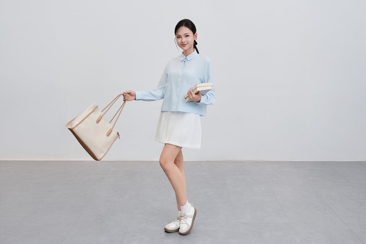 Áo sơ mi dáng rộng; cổ đức; túi ốp - H61H25Q002 KHUYẾN MÃI - ƯU ĐÃI