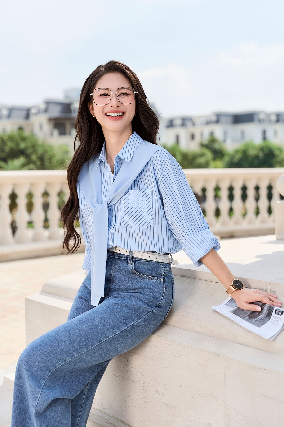 Áo sơ mi dáng rộng cổ khăn quàng - V61H24Q058 KHUYẾN MÃI - ƯU ĐÃI