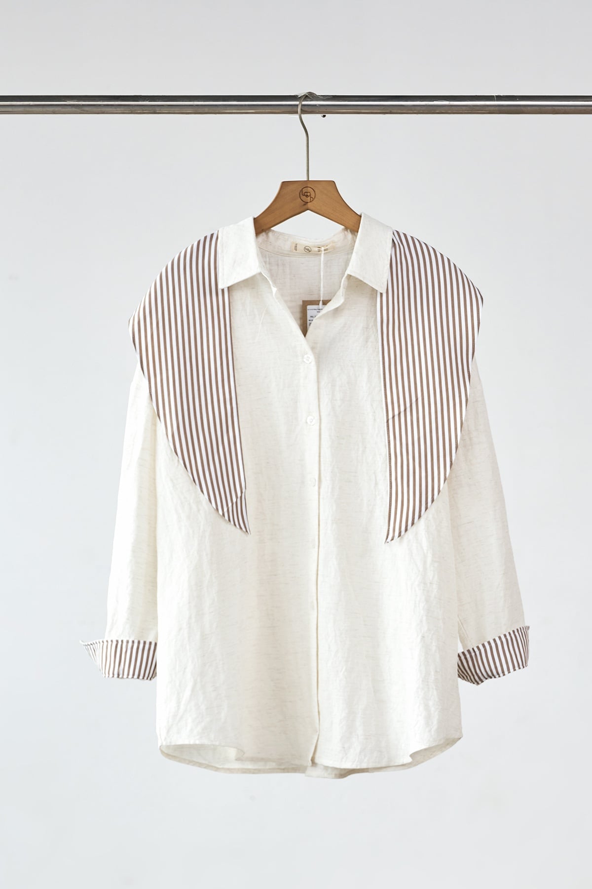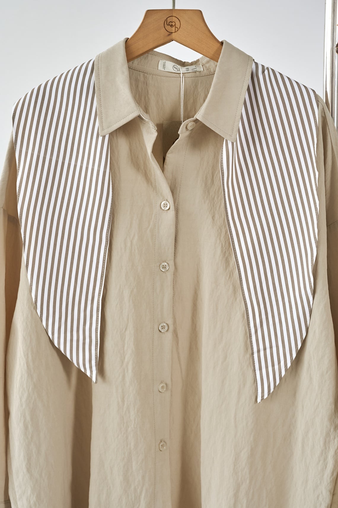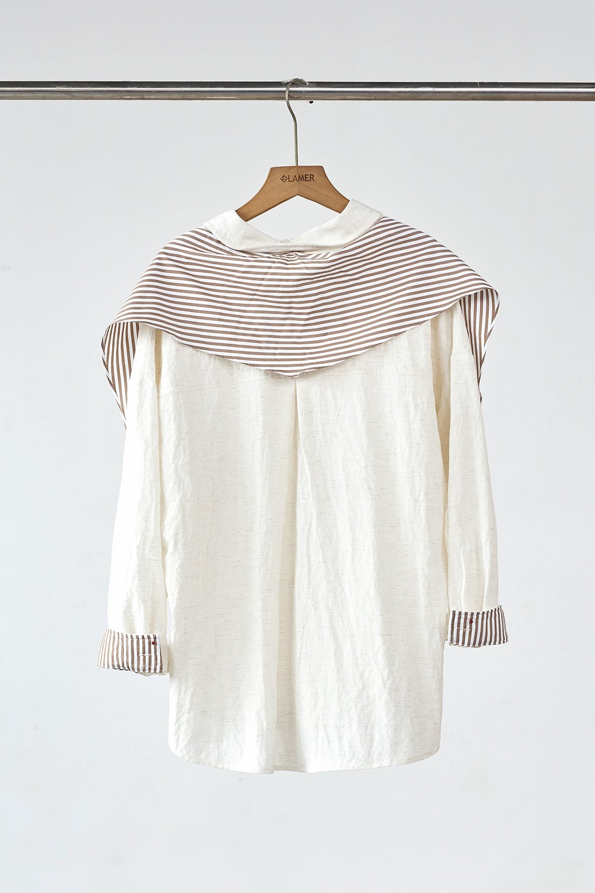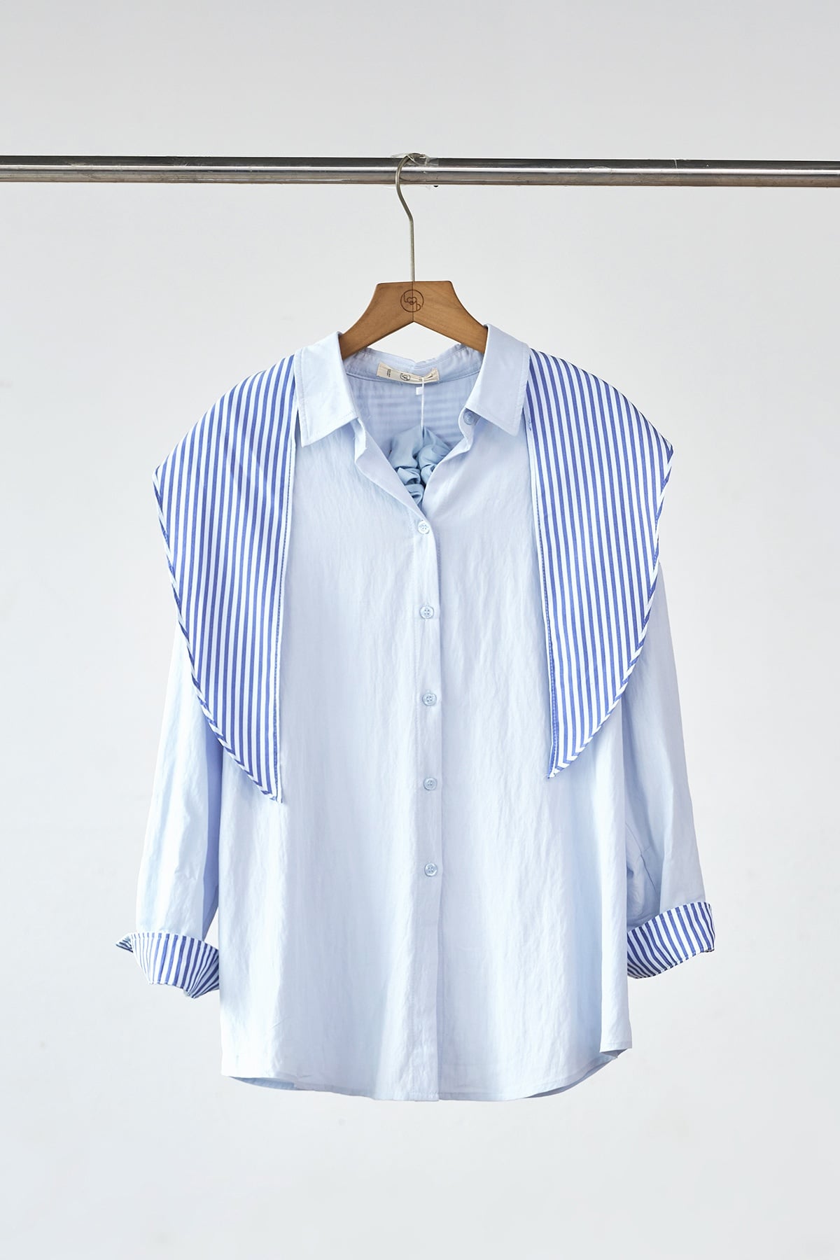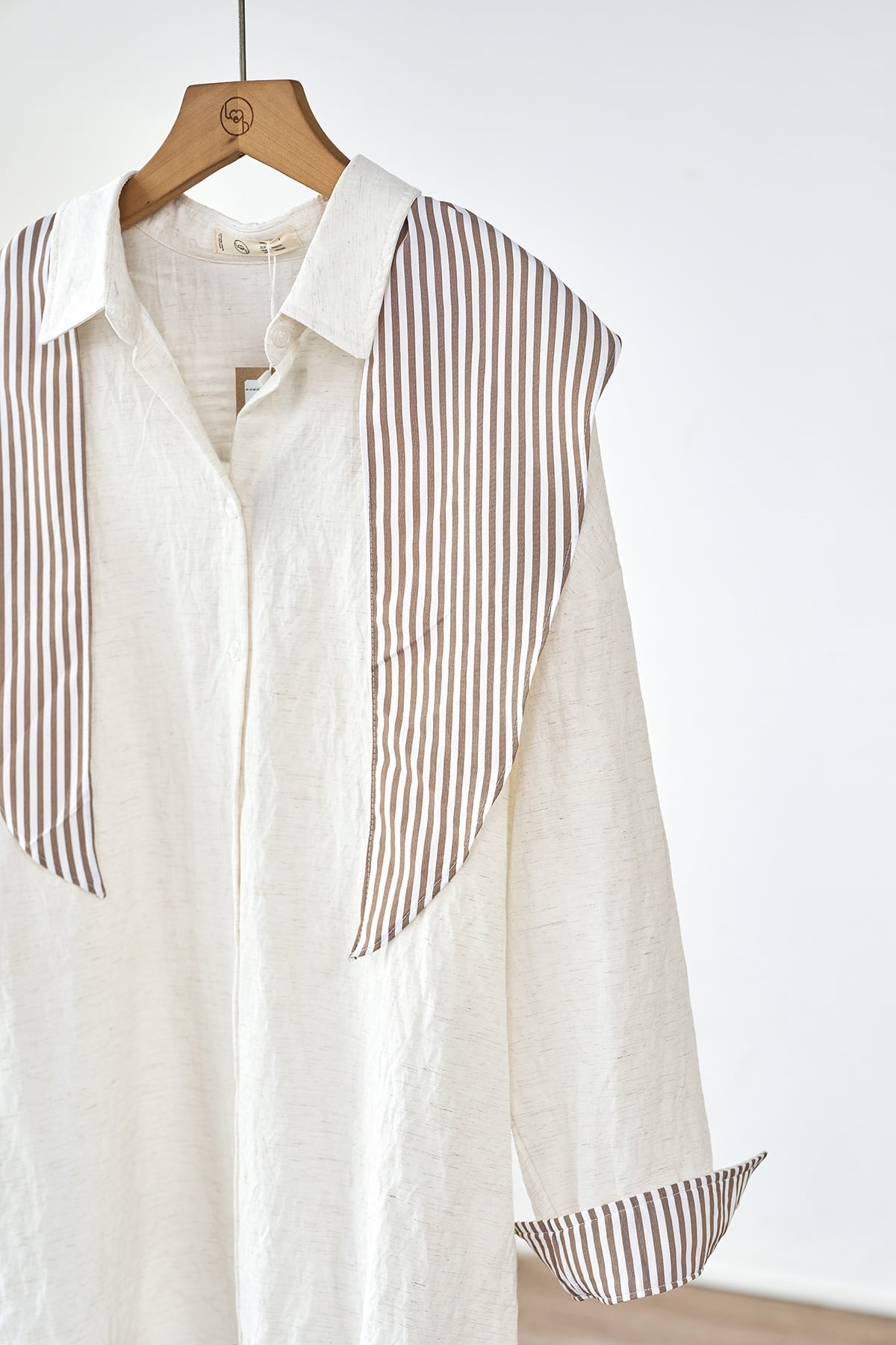 Áo sơ mi dáng rộng phối măng sét và khăn rời - H61H25Q007