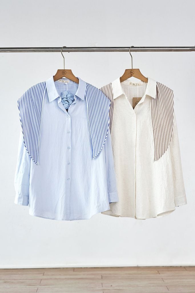 Áo sơ mi dáng rộng phối măng sét và khăn rời - H61H25Q007 KHUYẾN MÃI - ƯU ĐÃI