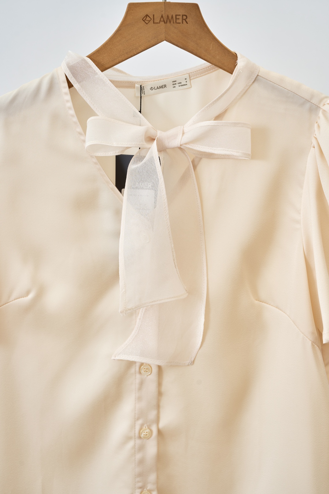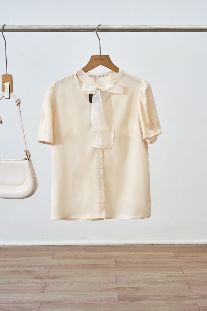 Áo sơ mi phối nơ buộc voan: L61H25H023
