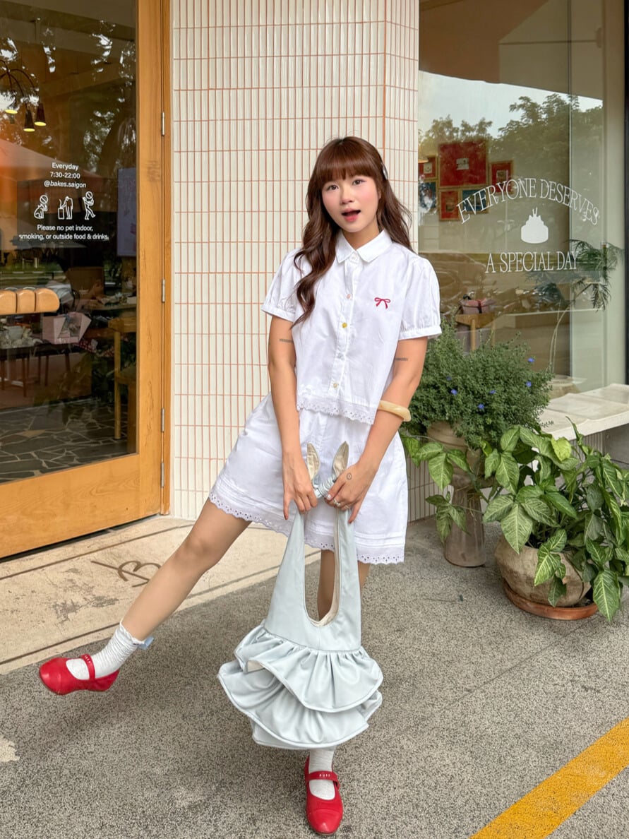 Áo sơ mi phối ren; cúc nhiều màu  - D61H25H007 Quần Short cạp chun; ren gấu - D64S25H002 Quần Short cạp chun; ren gấu - D64S25H002