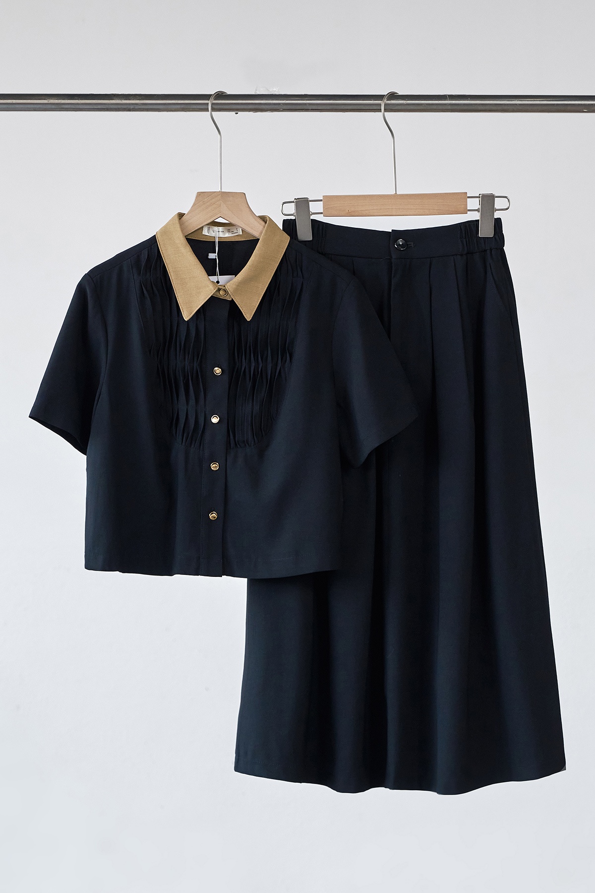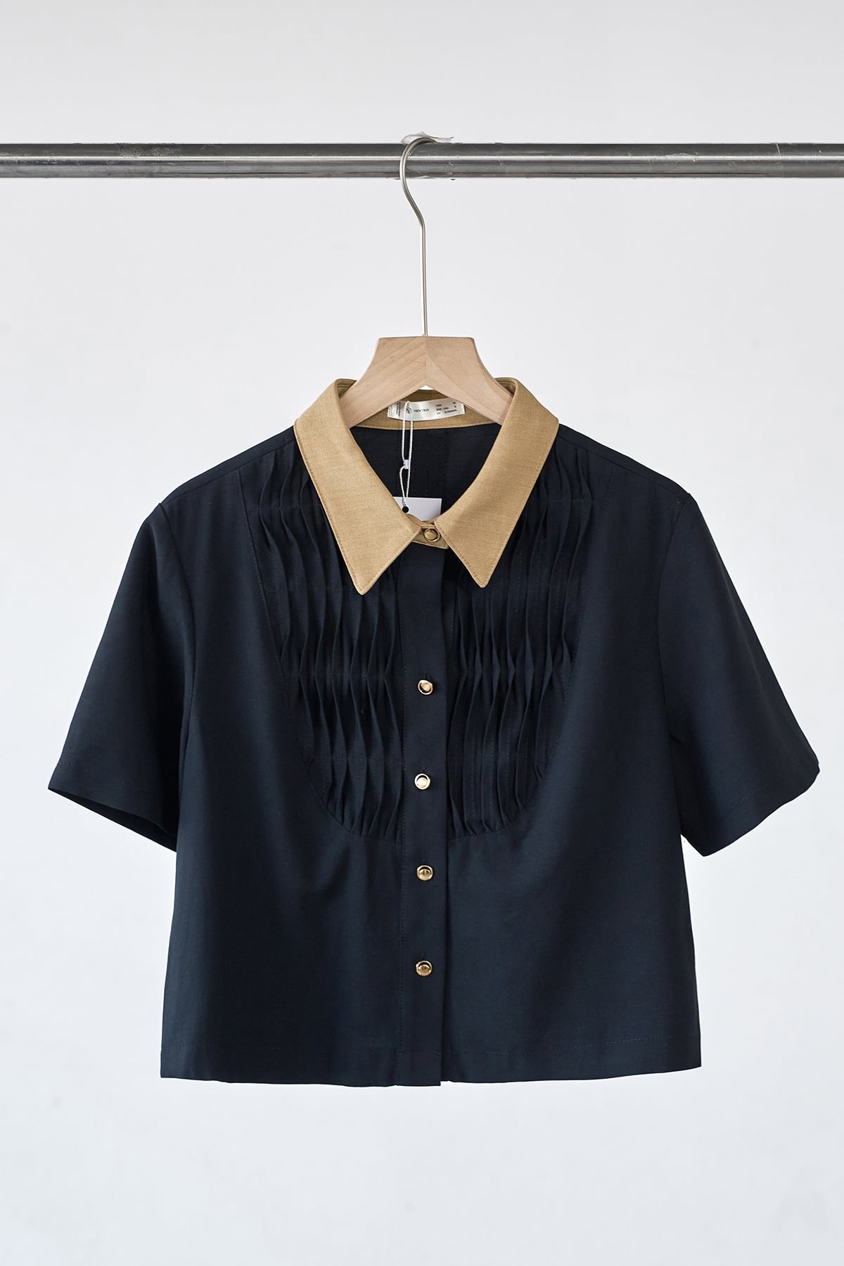 Áo sơ mi tay ngắn phối cổ đức mí ngực-GBQ015 : V61H25Q032