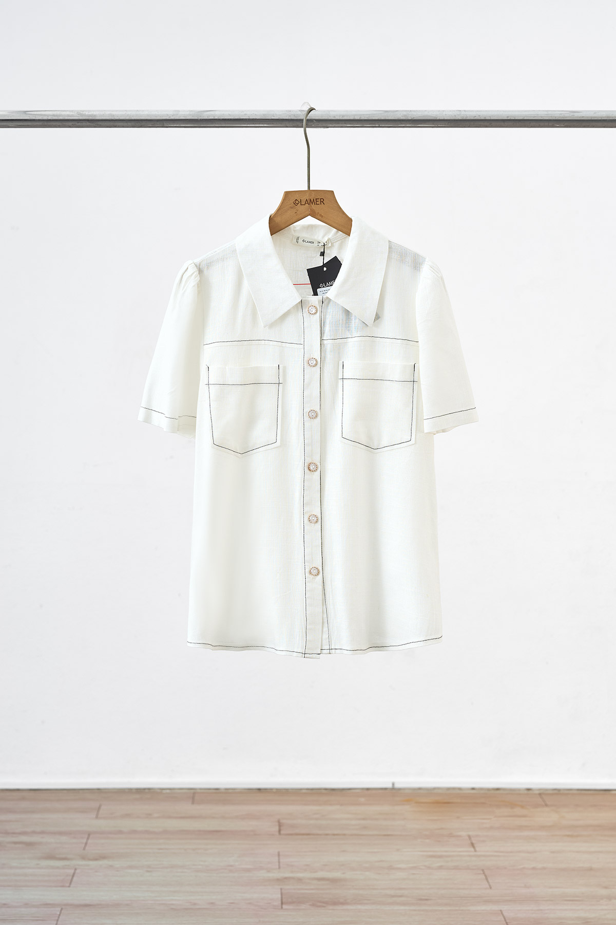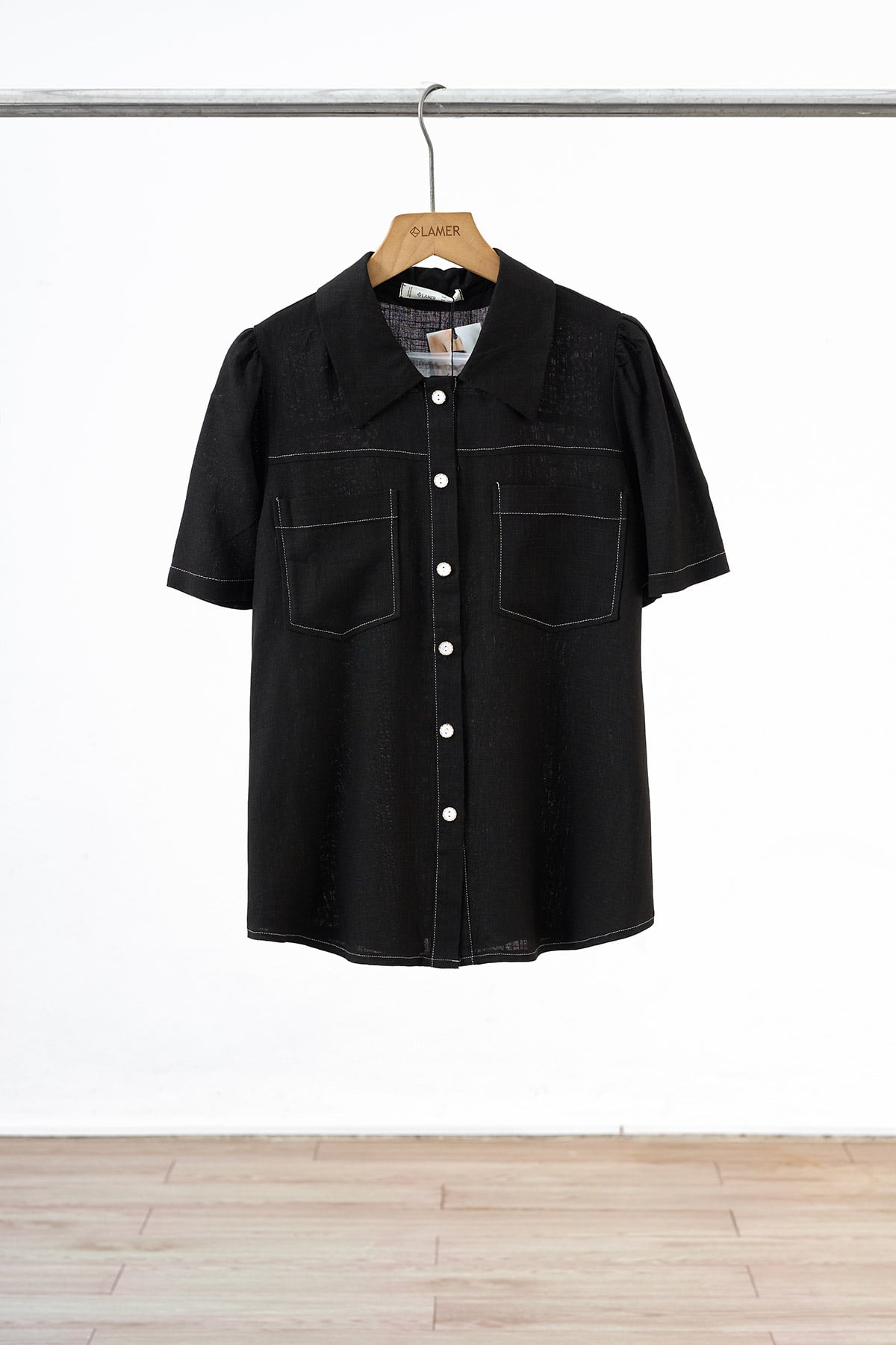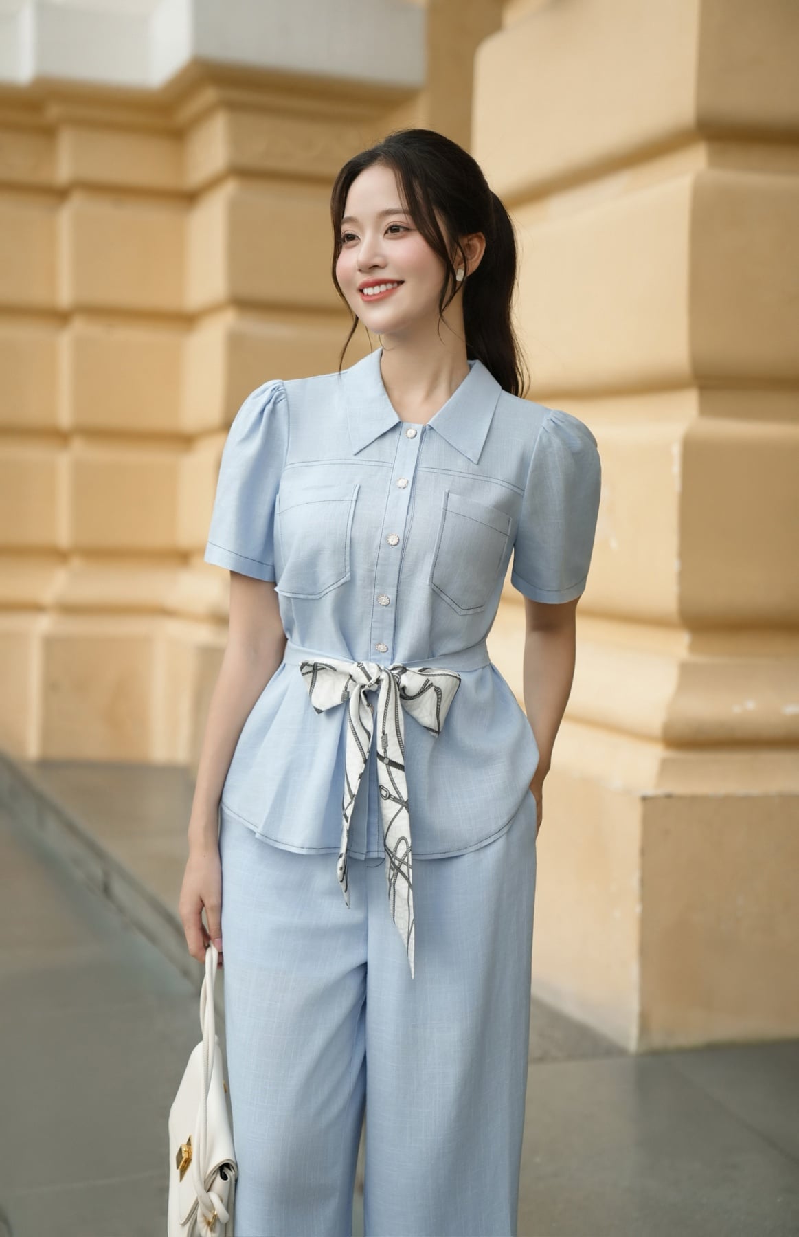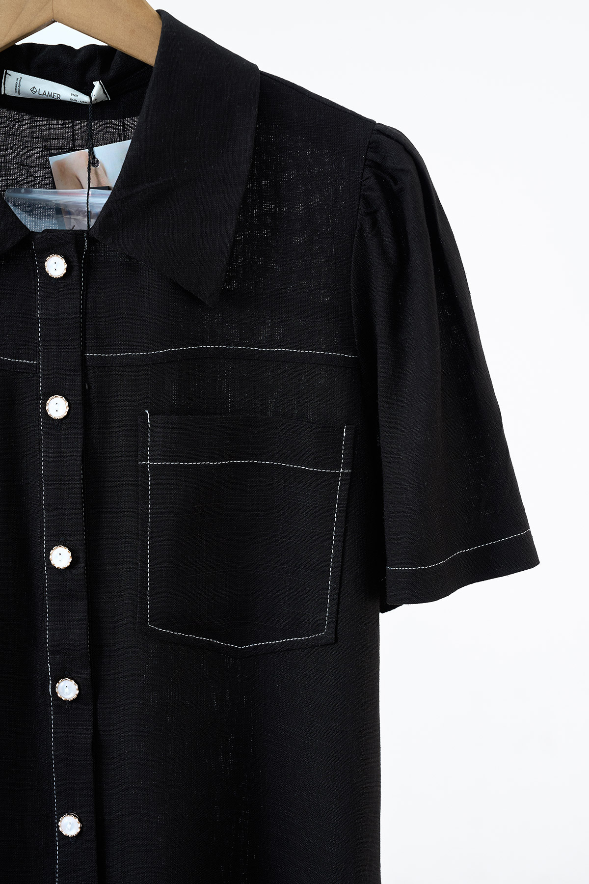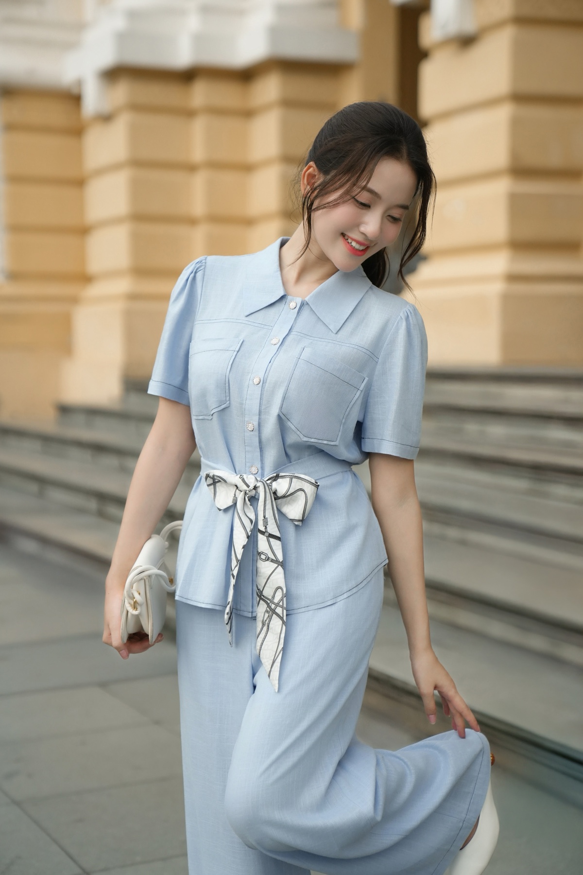 Áo sơ mi tay ngắn thắt eo buộc dây nơ - L61H25H087 KHUYẾN MÃI - ƯU ĐÃI