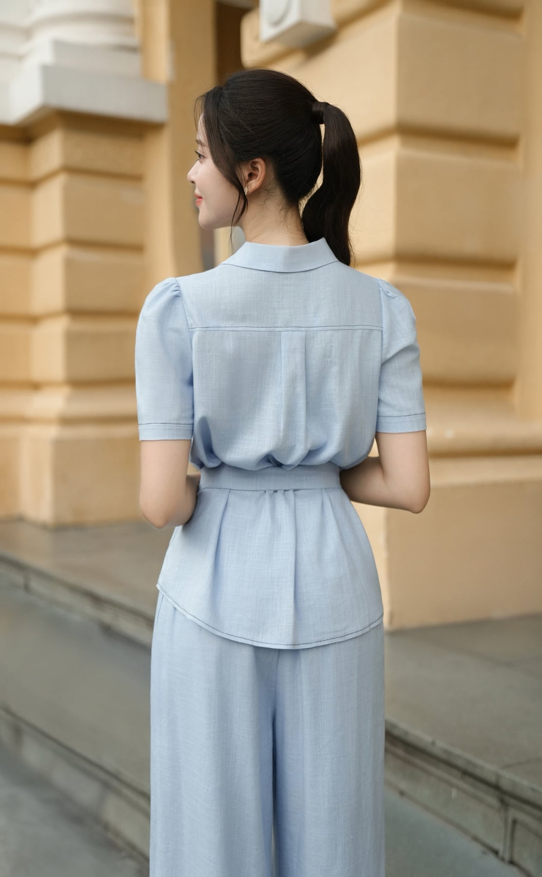 Áo sơ mi tay ngắn thắt eo buộc dây nơ - L61H25H087
