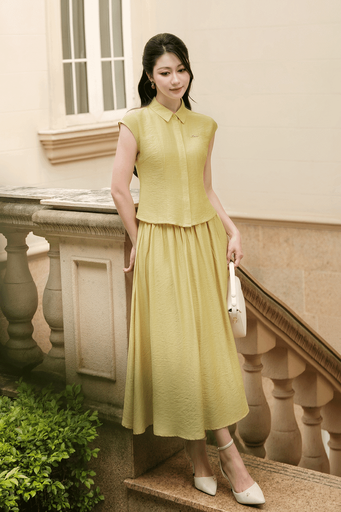 Áo sơ mi vai chờm chiết ly eo - O61H26H005 KHUYẾN MÃI - ƯU ĐÃI