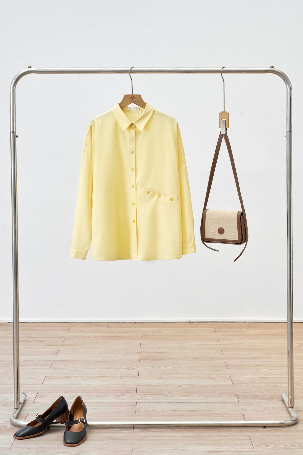 Áo sơ mi vai xệ đính cúc eo-Vienne Tran : D61H25Q003