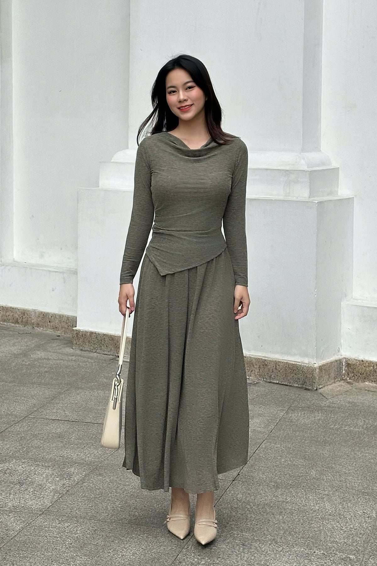 Áo thun chéo vạt dài tay cổ đổ-Bản TC-Vienne Tran-GBT002 : O61B25T004