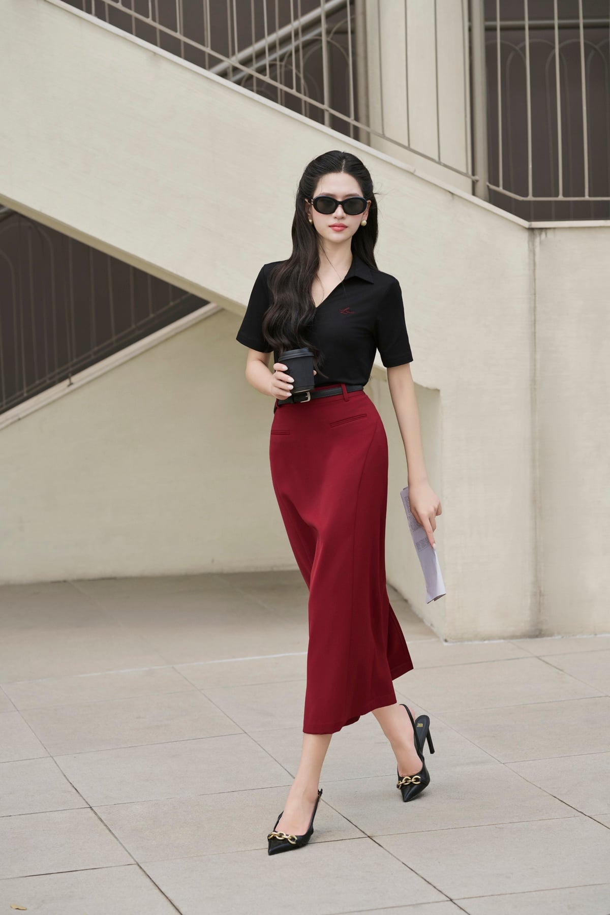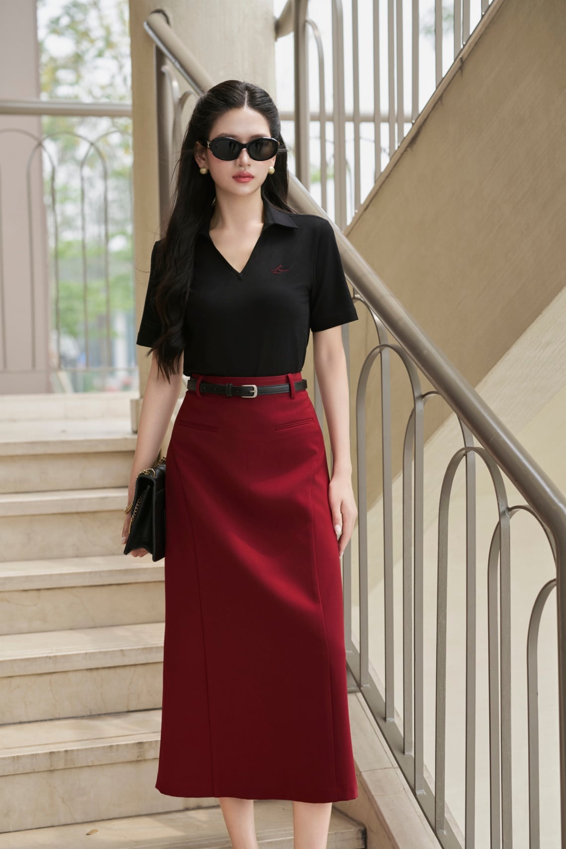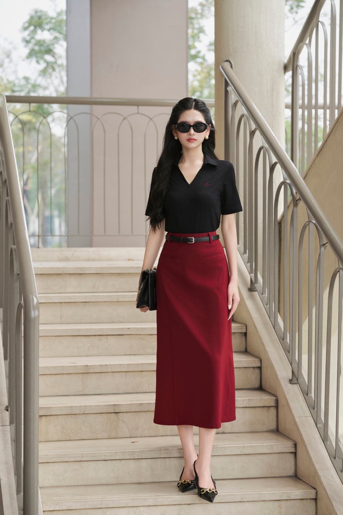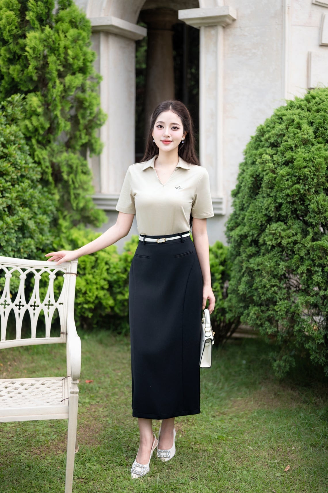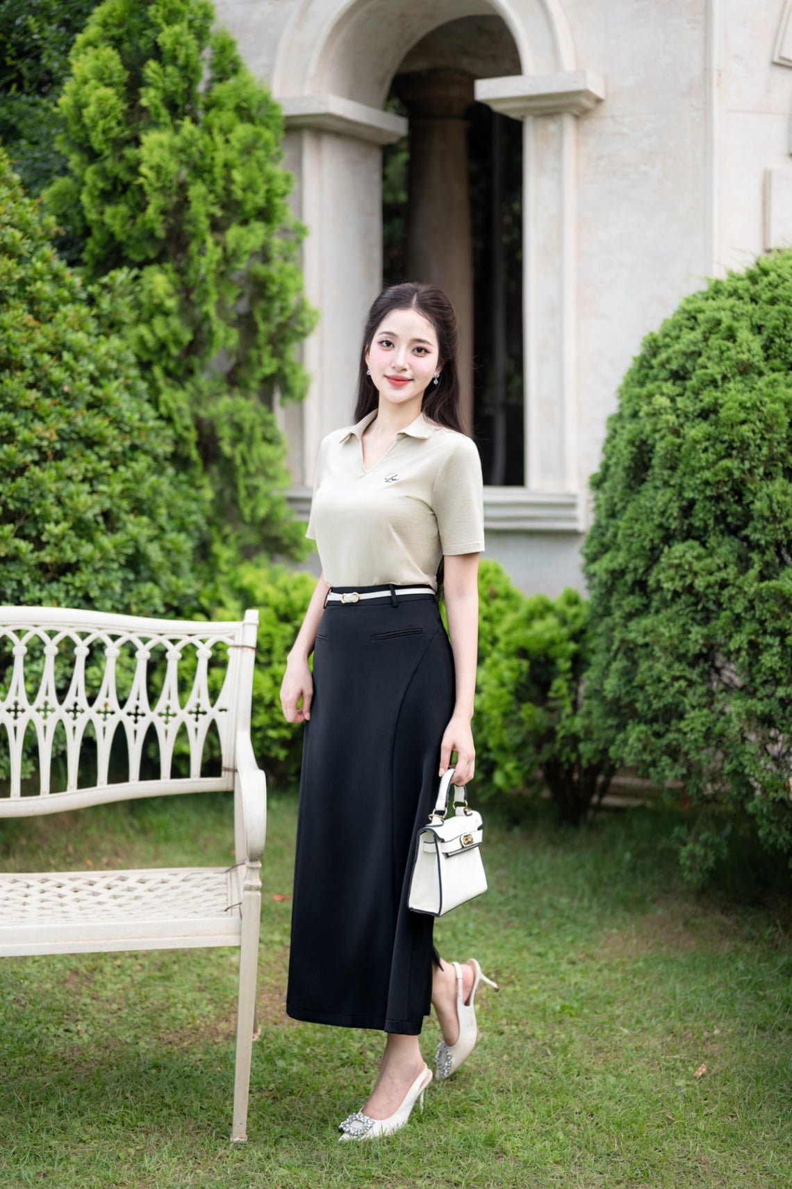 Mô tả sản phẩm : Áo dáng ôm, cổ bẻ xẻ V, ngực thêu chữ. GB O62M25Q002.