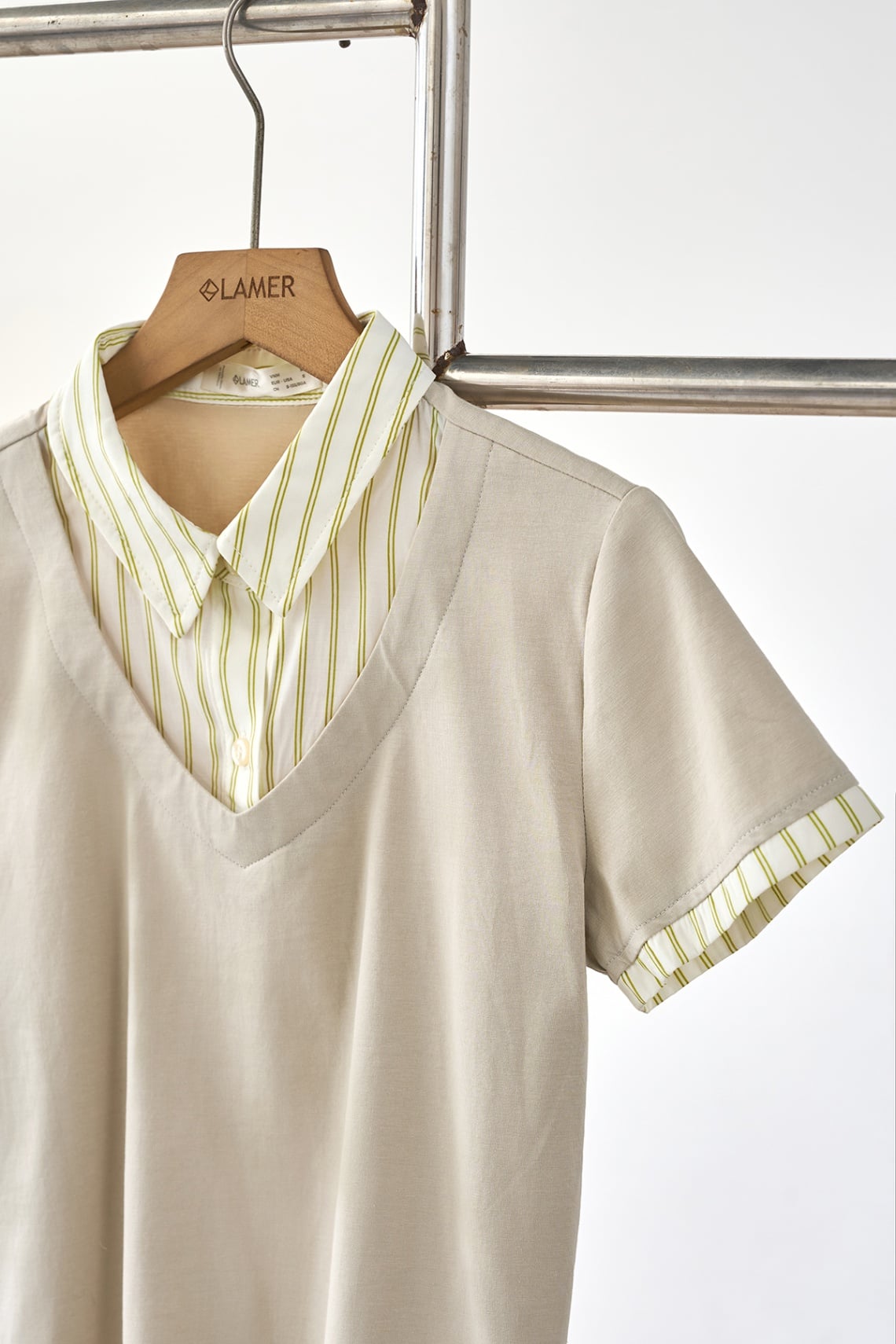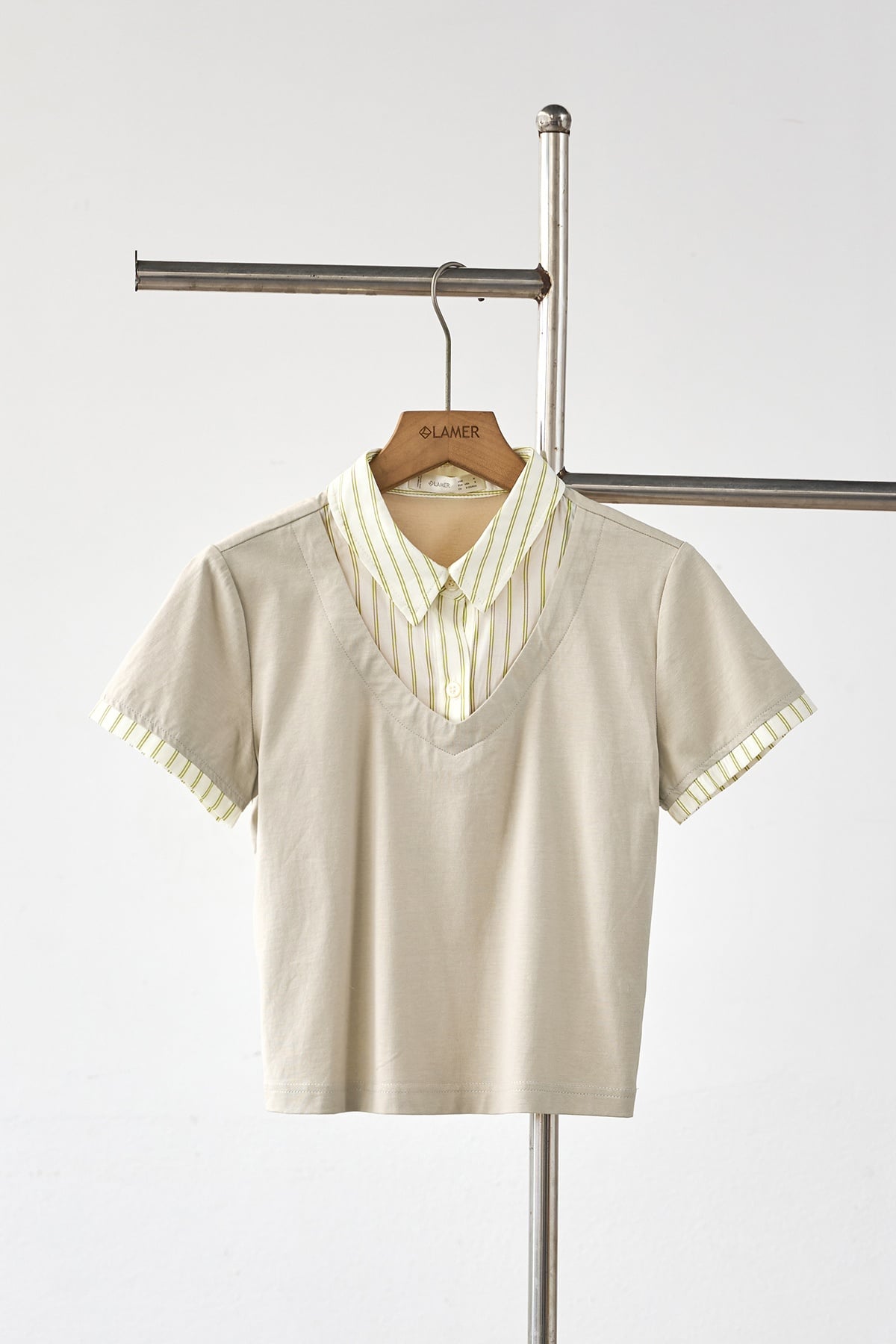 Áo thun phối kẻ - L61B25H046 KHUYẾN MÃI - ƯU ĐÃI