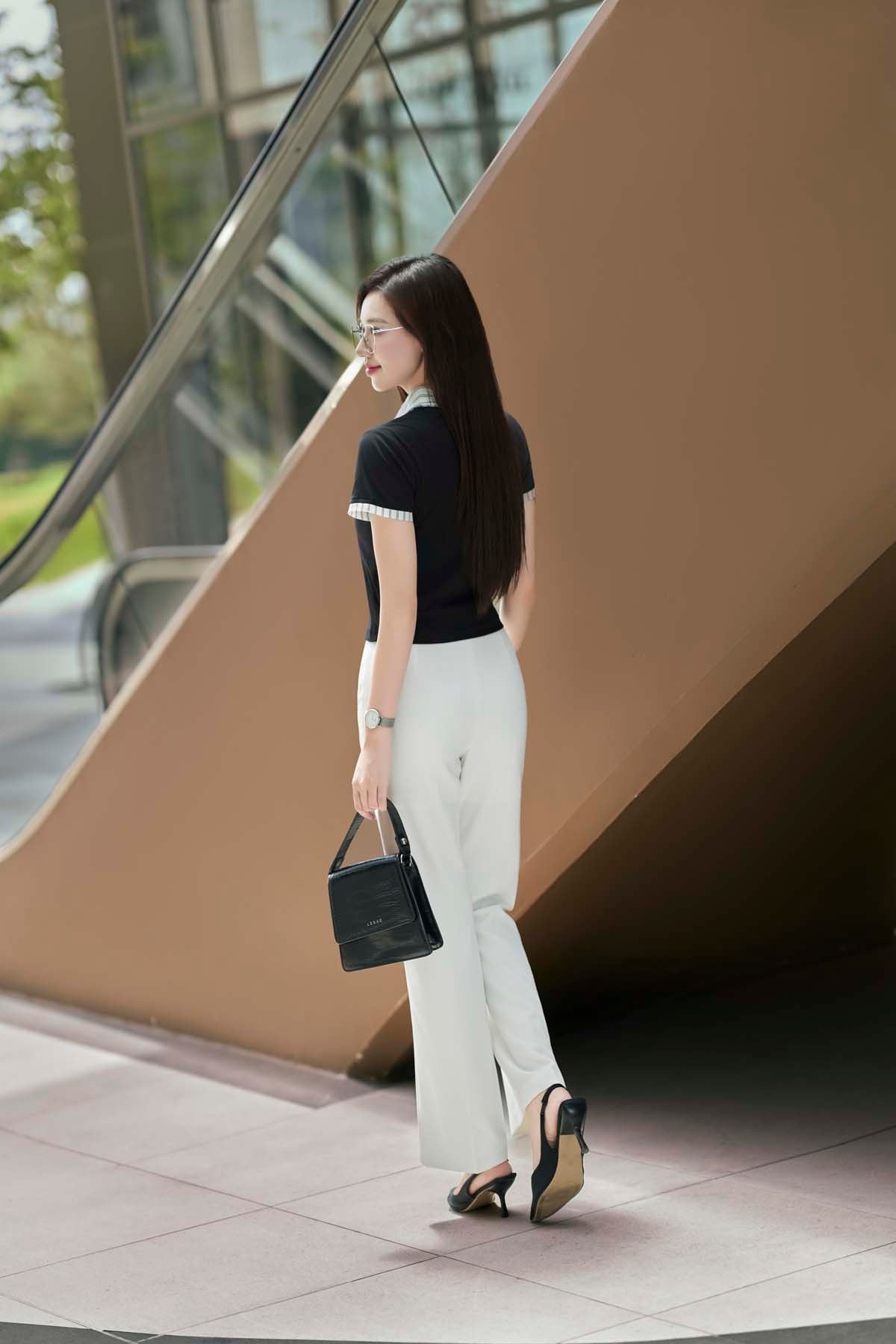 Mô tả sản phẩm : Áo dáng ôm, cổ đức, tay ngắn, phối kẻ, cúc sơ mi.