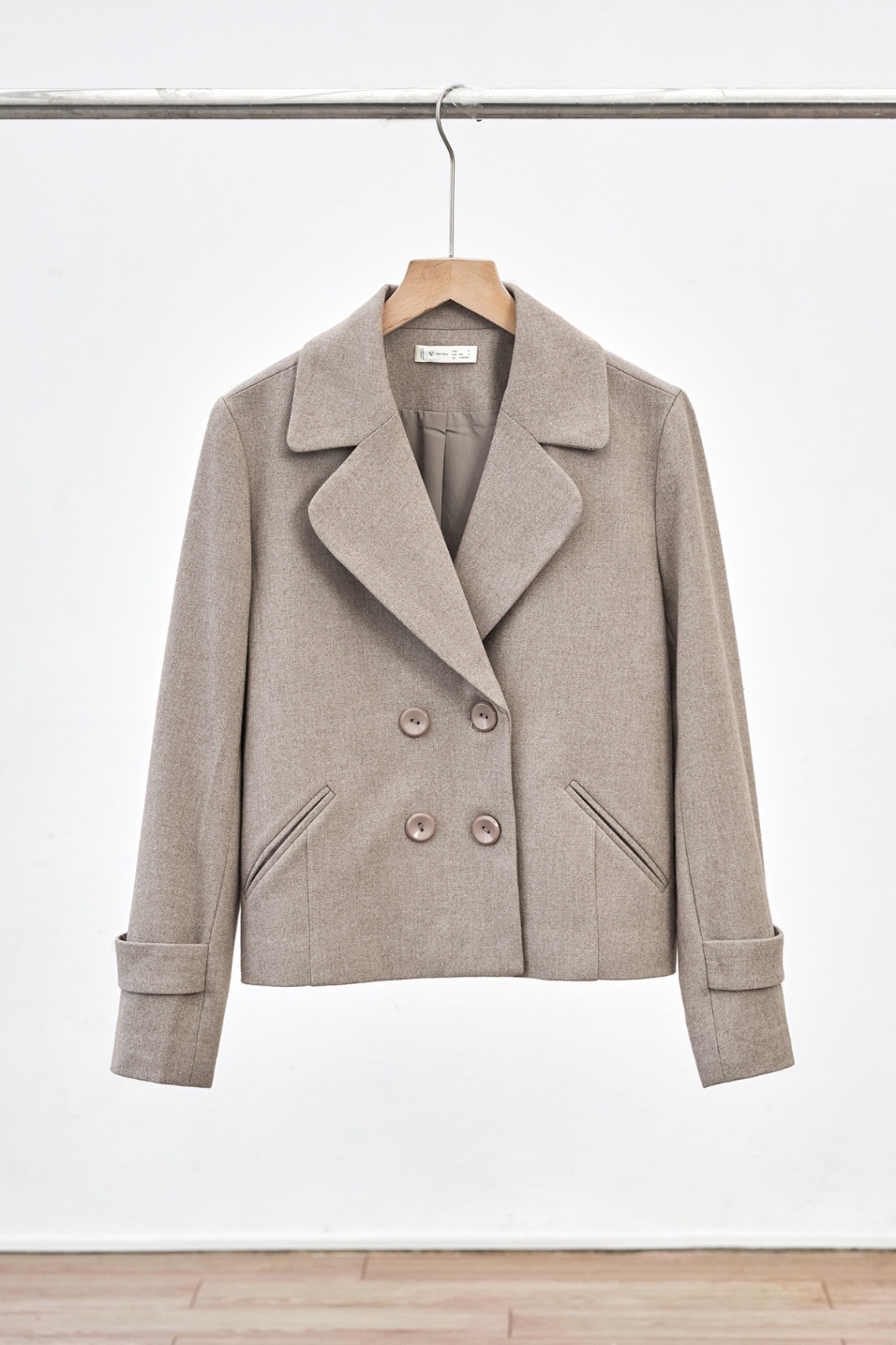 Mô tả sản phẩm : Áp vest dáng suông, 2 hàng khuy, cổ 2 ve, 2 túi cơi, tay đính đá. GB V64W25T003