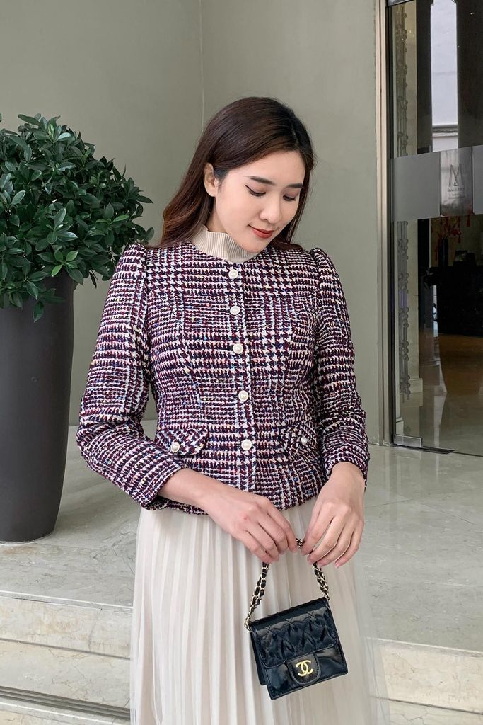 Chất liệu : Hai lớp: Lớp ngoài bằng vải dạ tweed Hàn, lớp lót bằng vải siêu nhẹ.