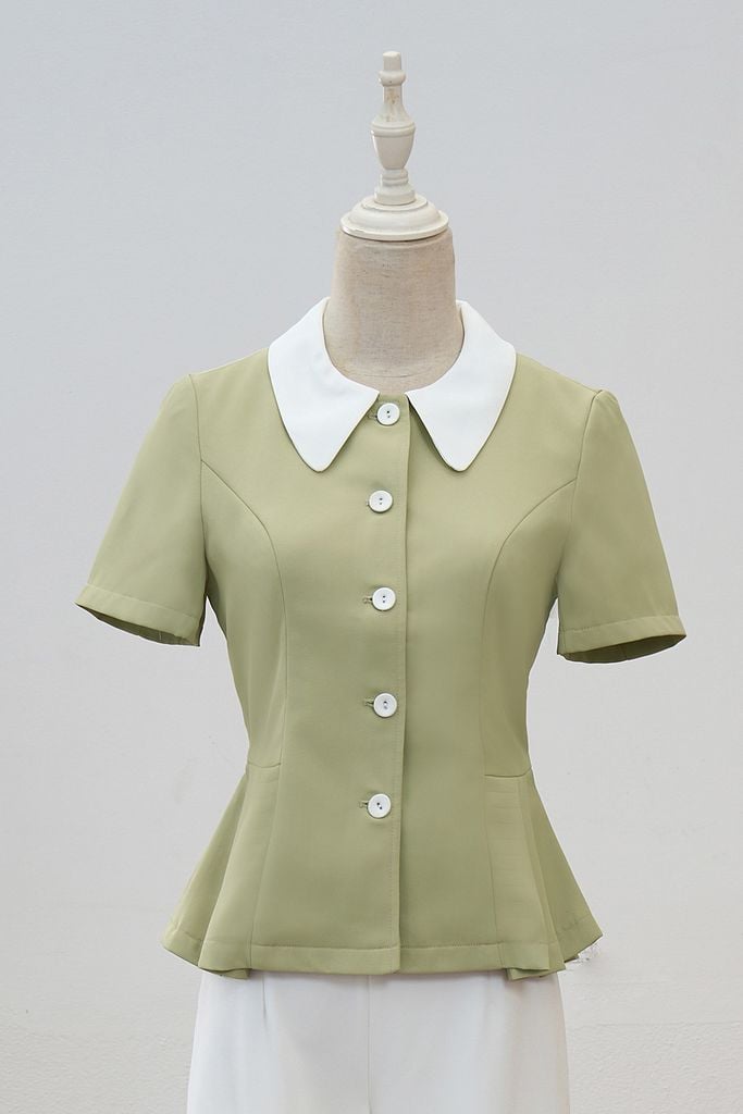 Áo vest xếp ly hai bên phối cổ-Xanh cốm: L65B24Q008-S4402