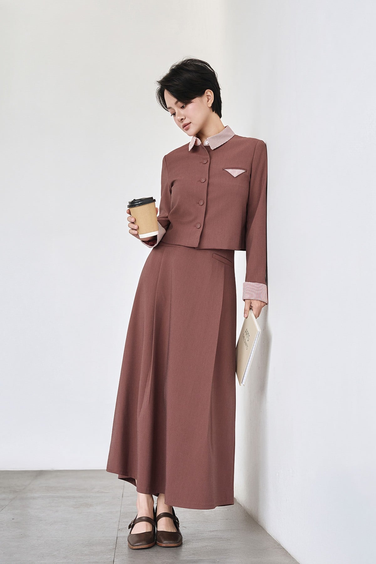 Chân váy dáng xoè ly bung; cơi giả - V62L25T003 KHUYẾN MÃI - ƯU ĐÃI
