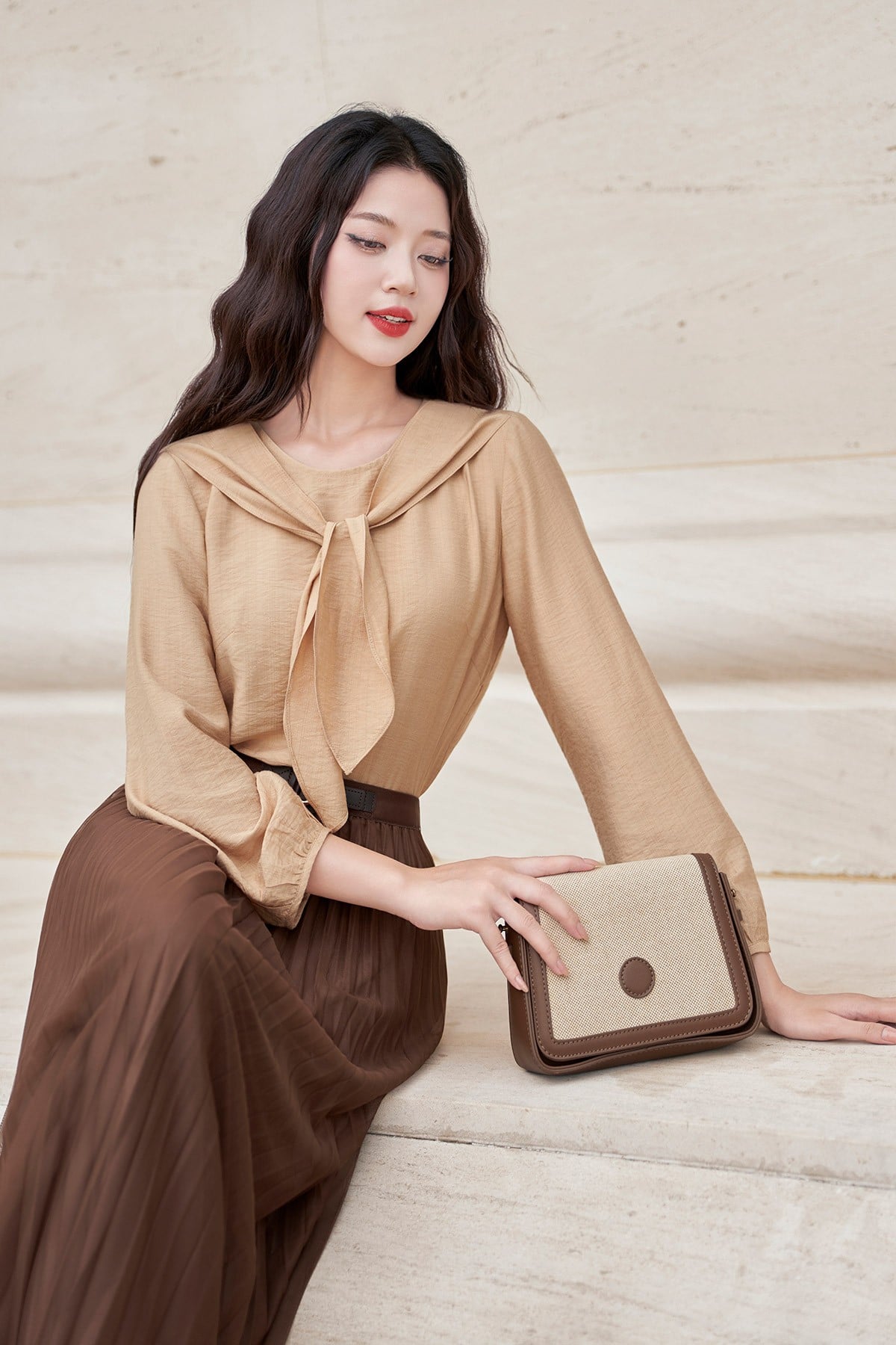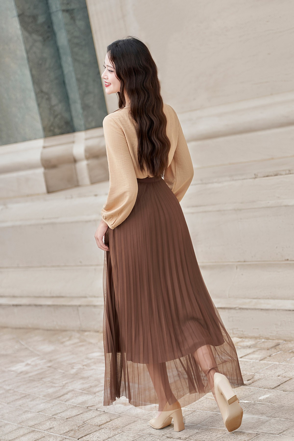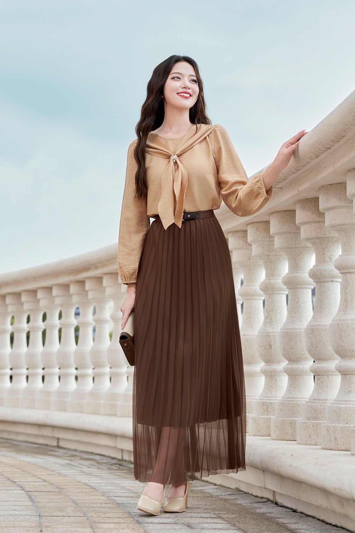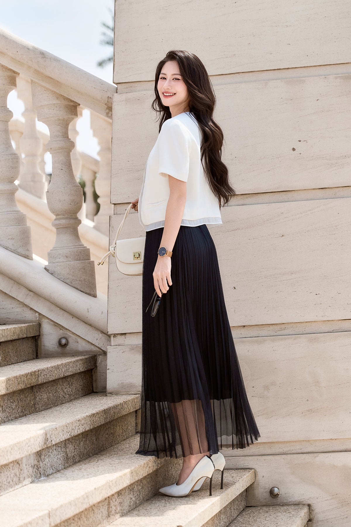 Chân váy dập ly dài đính mặt đai - O62L25Q006 KHUYẾN MÃI - ƯU ĐÃI