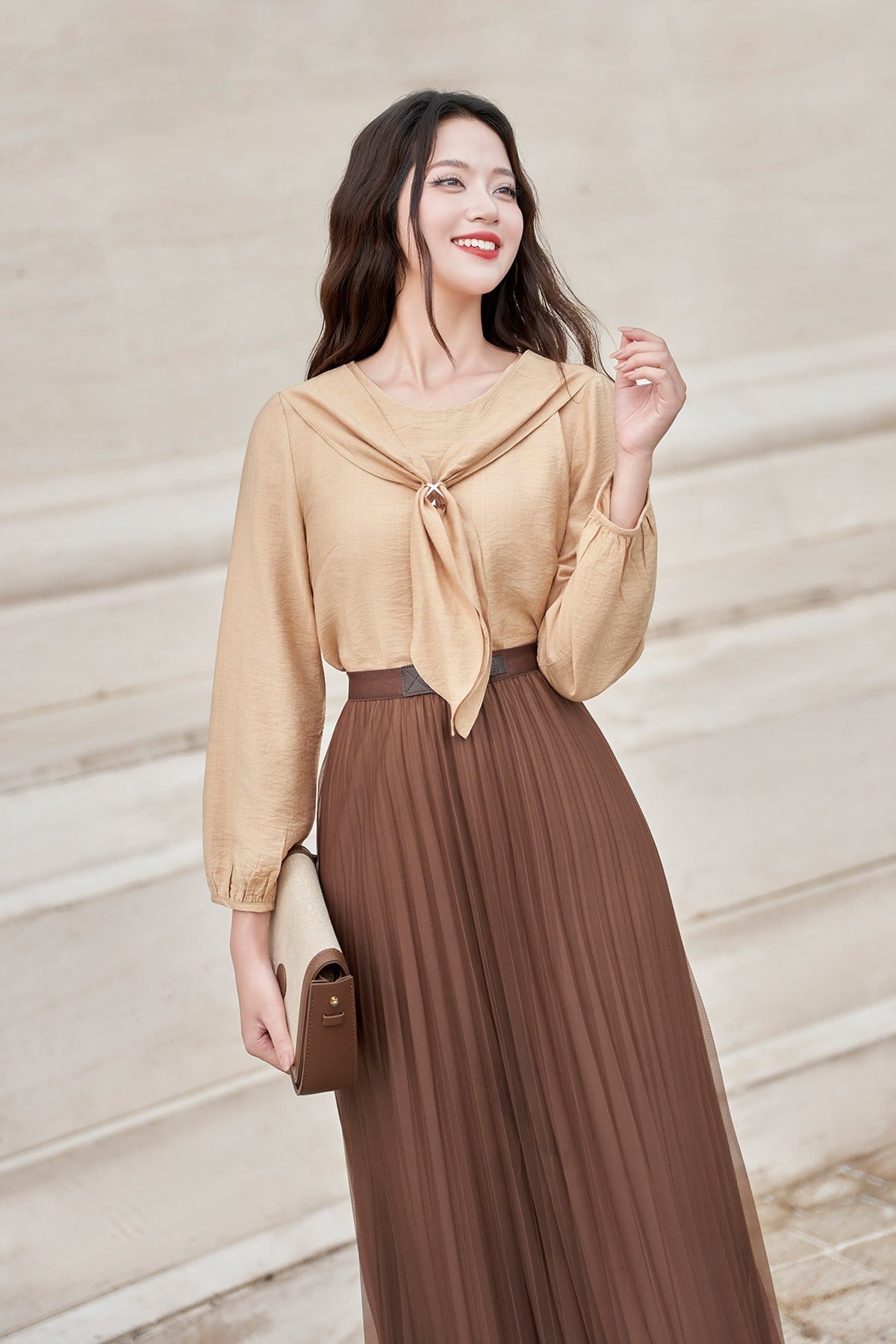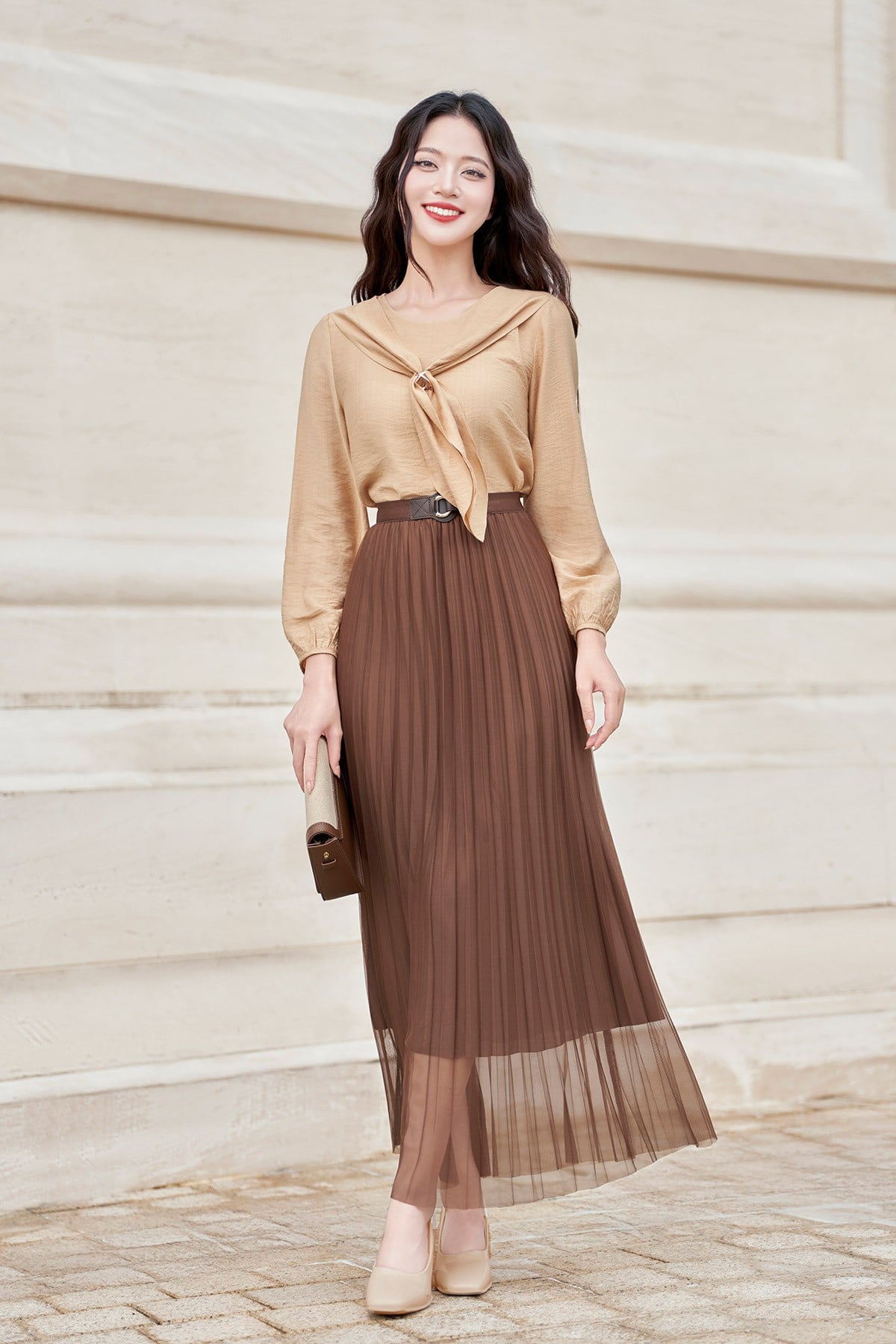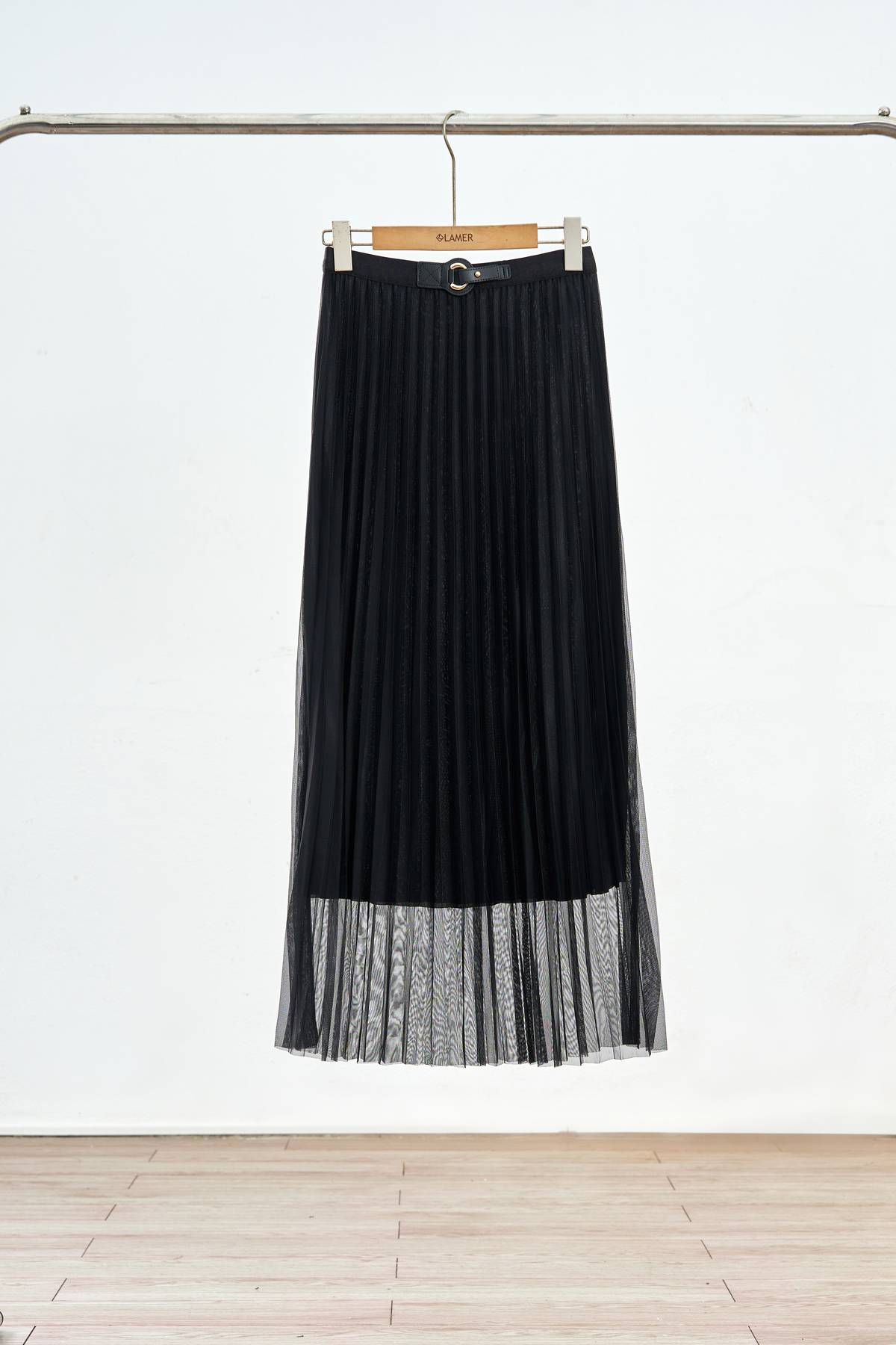 Chân váy dập ly dài đính mặt đai-GBQ012-Lamer: O62L25Q006