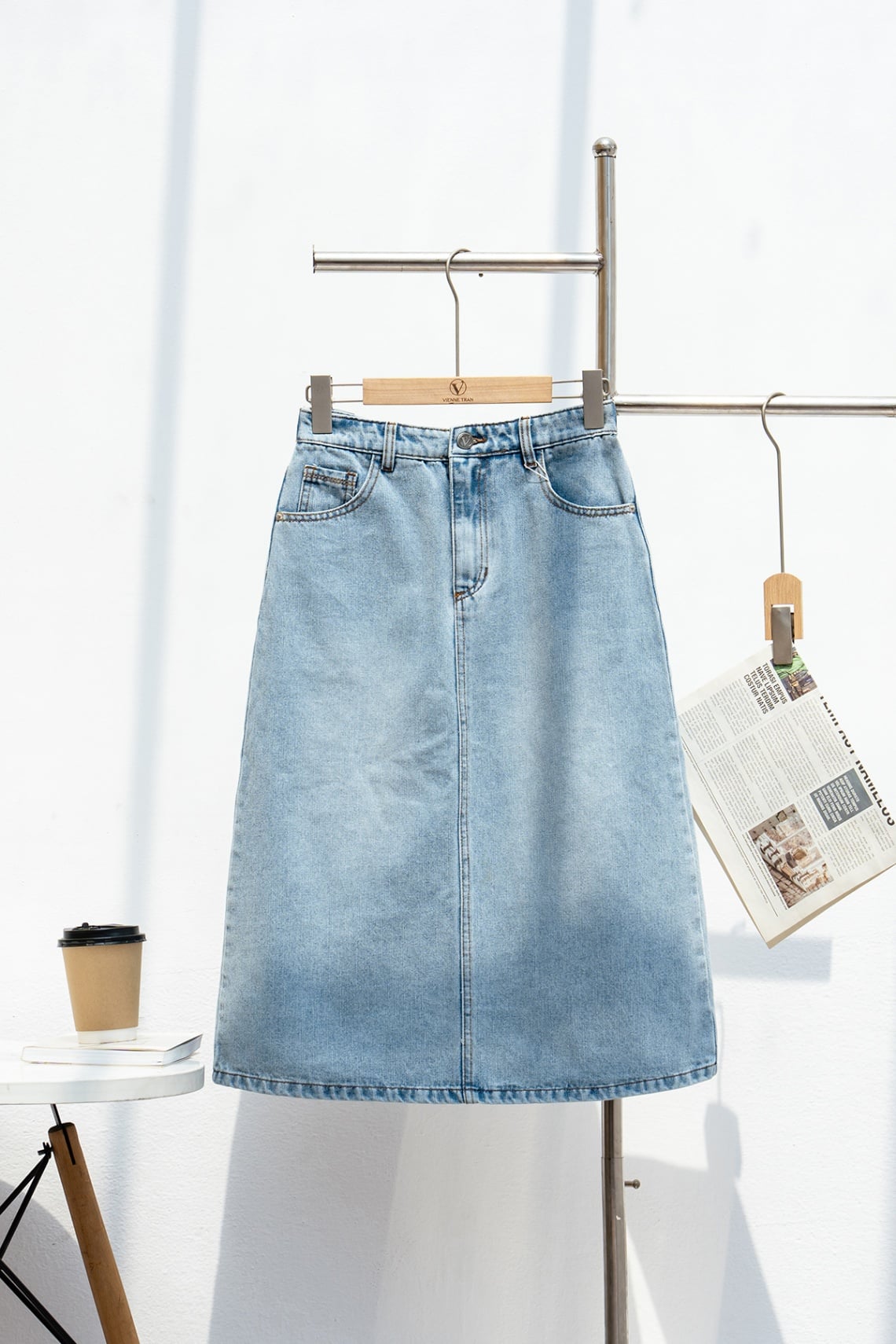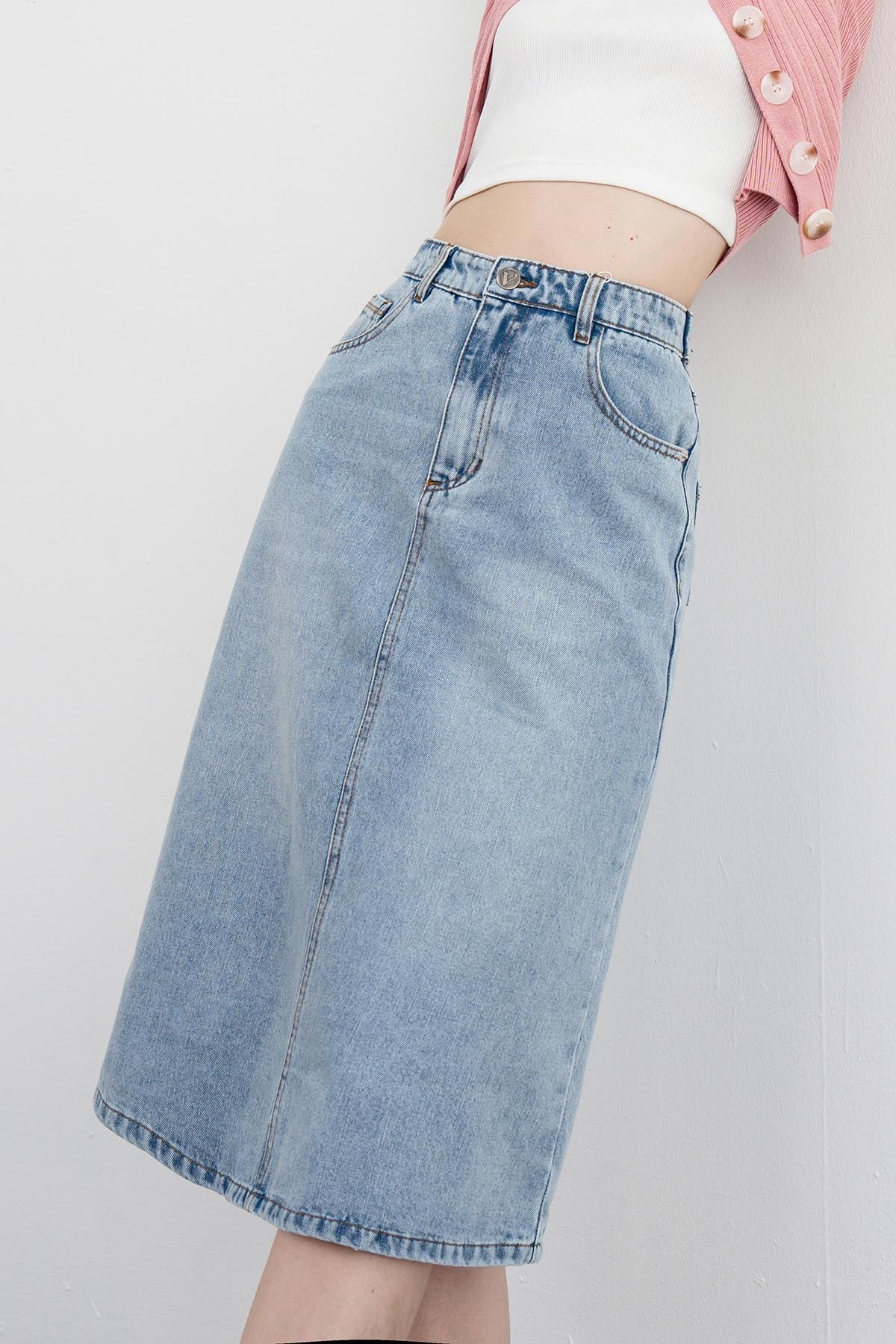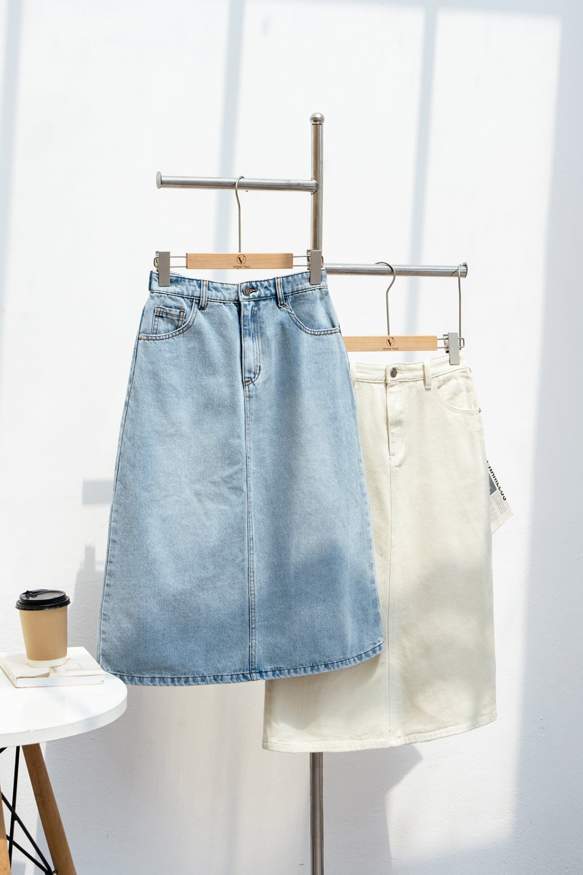 Chân váy jean midi dáng A : V62I23Q008-S3300