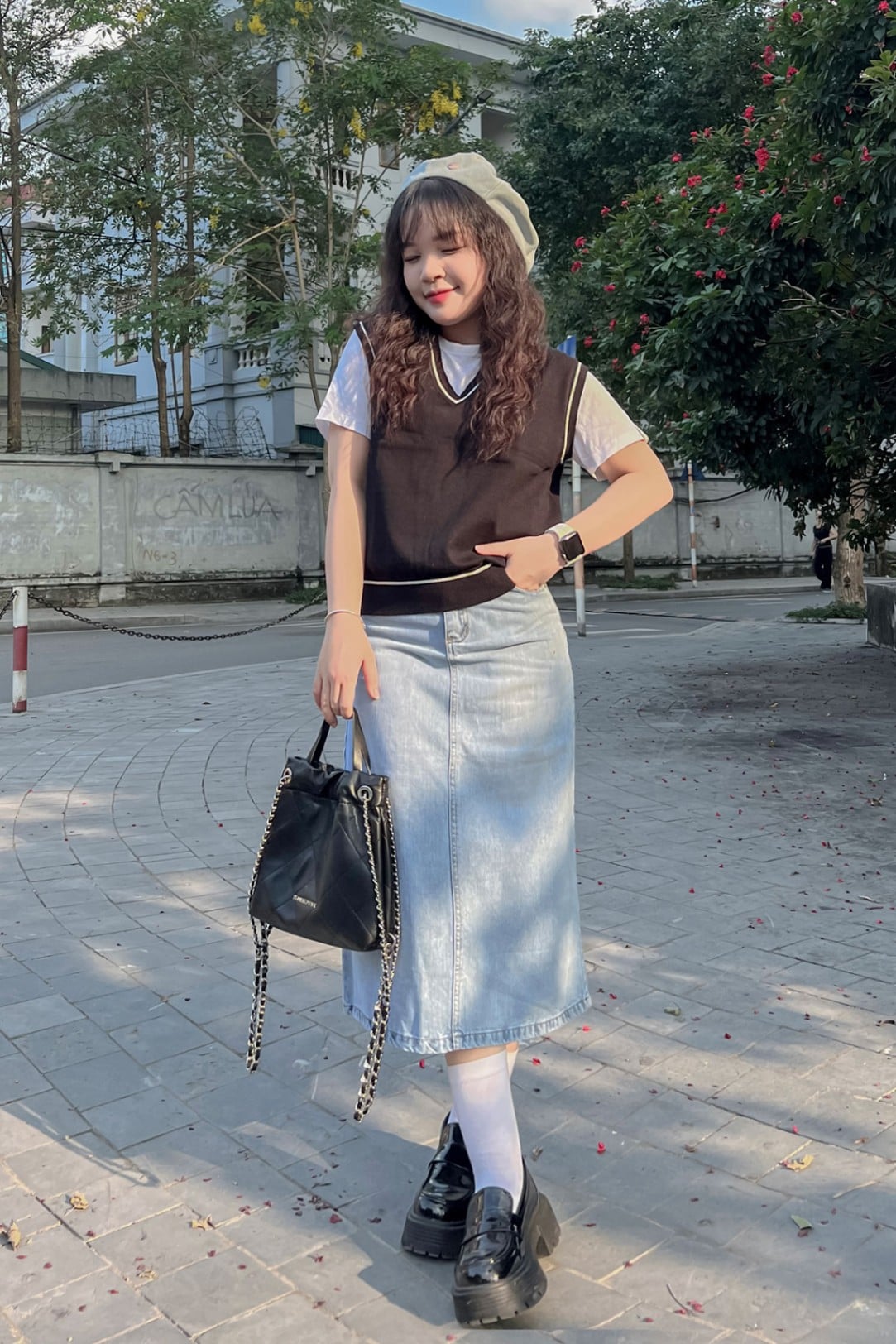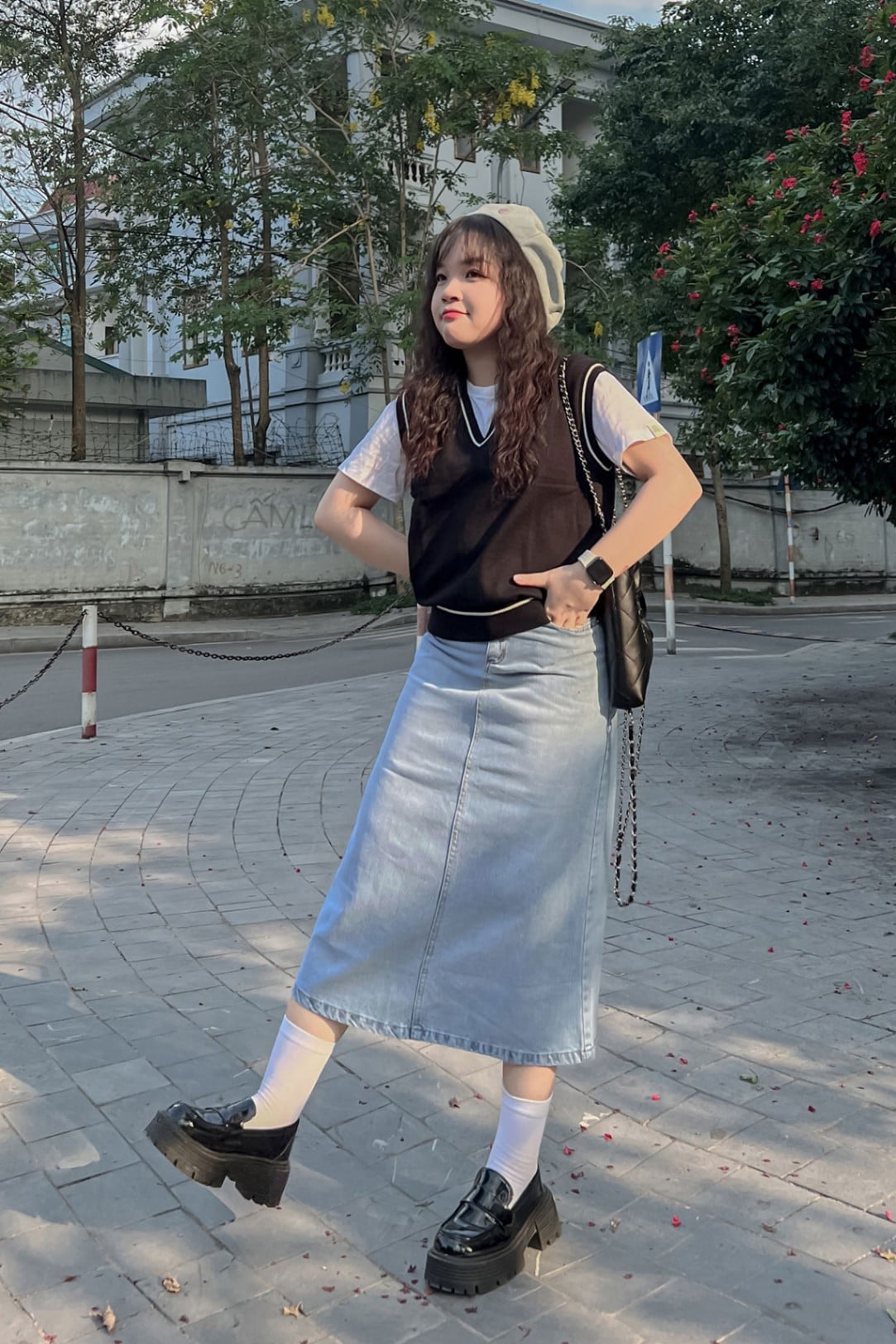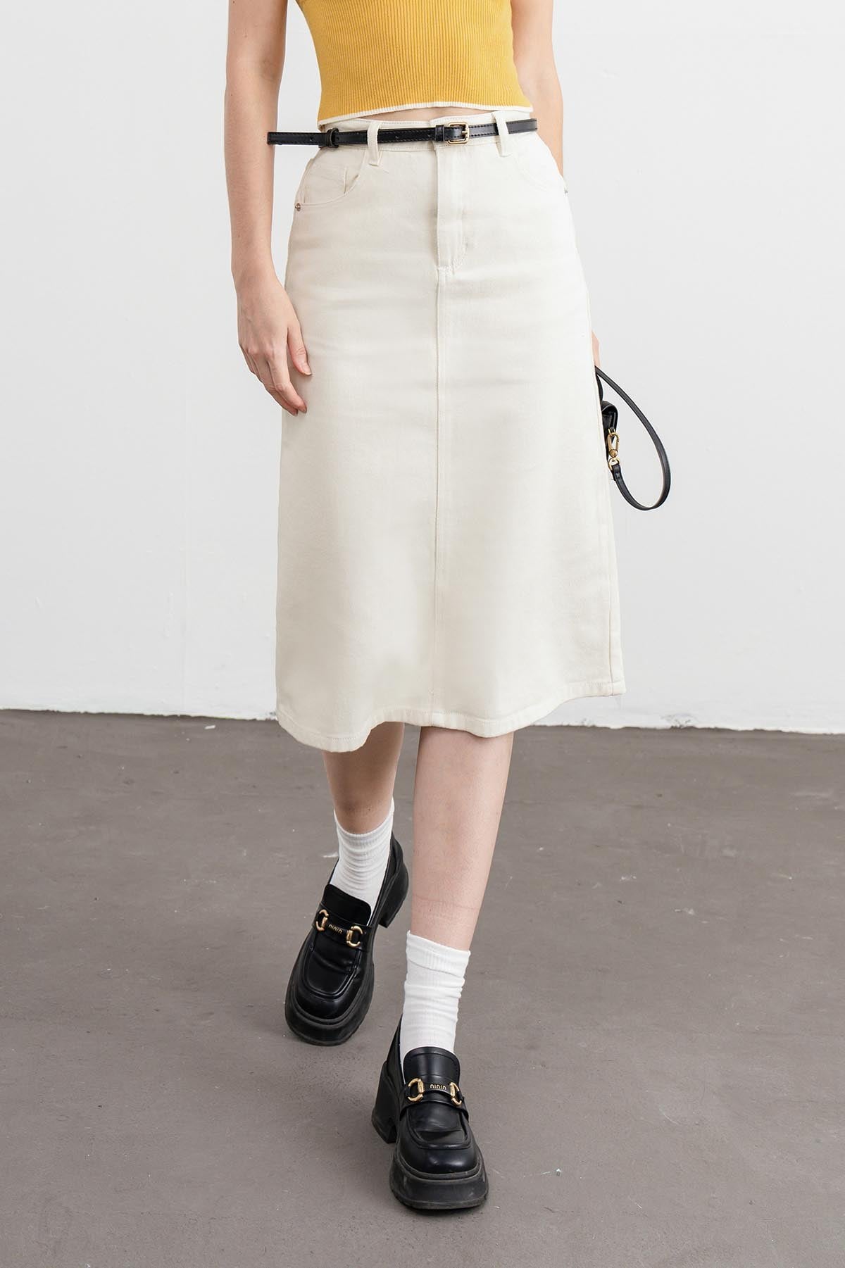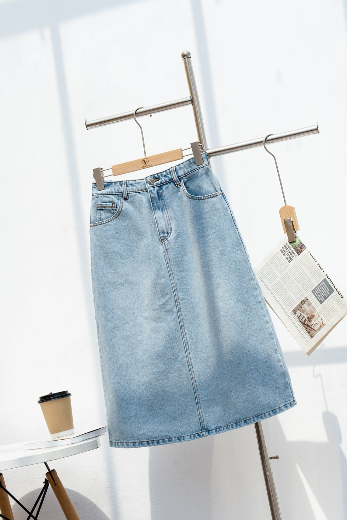 Chân váy jean midi dáng A : V62I23Q008-S3300
