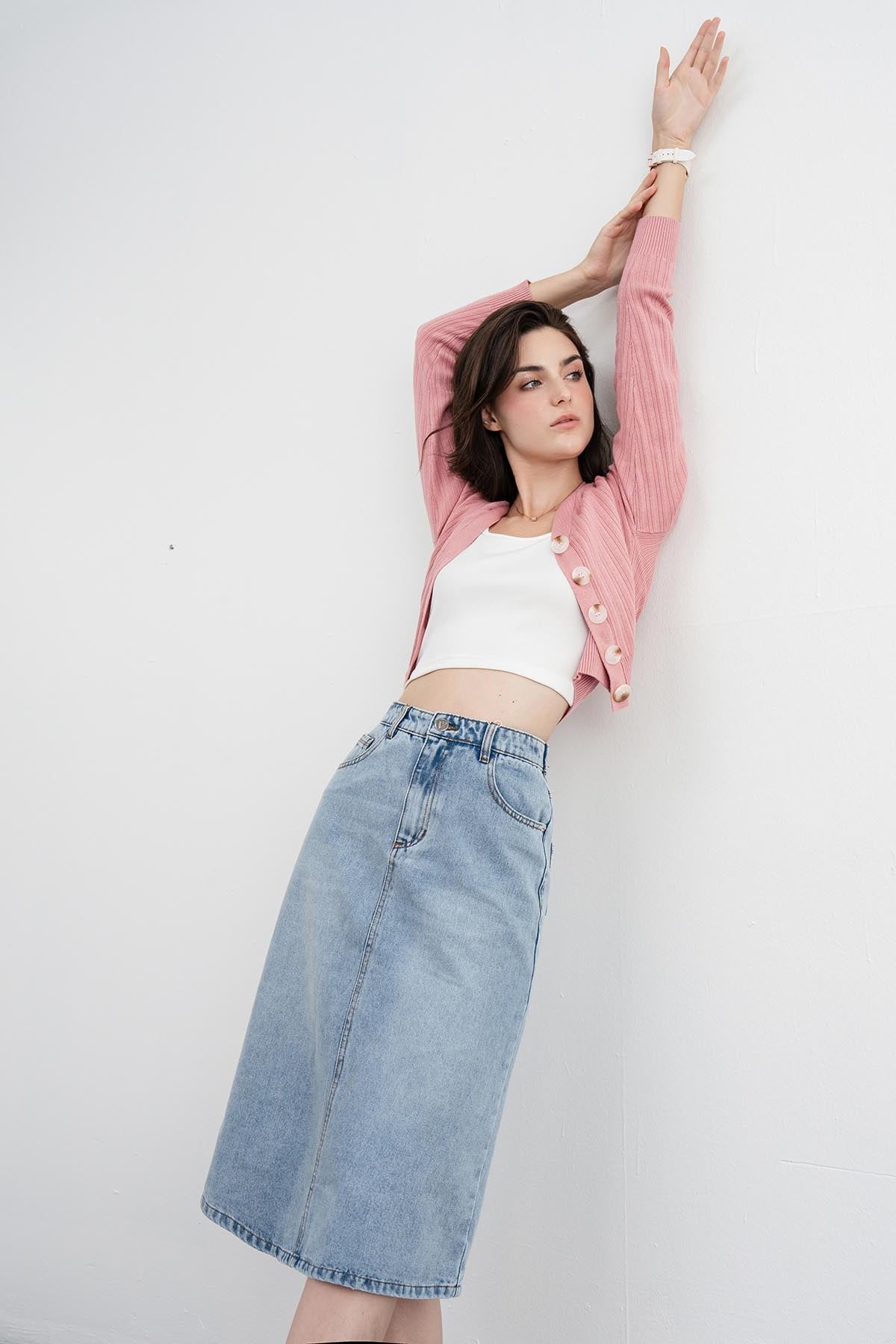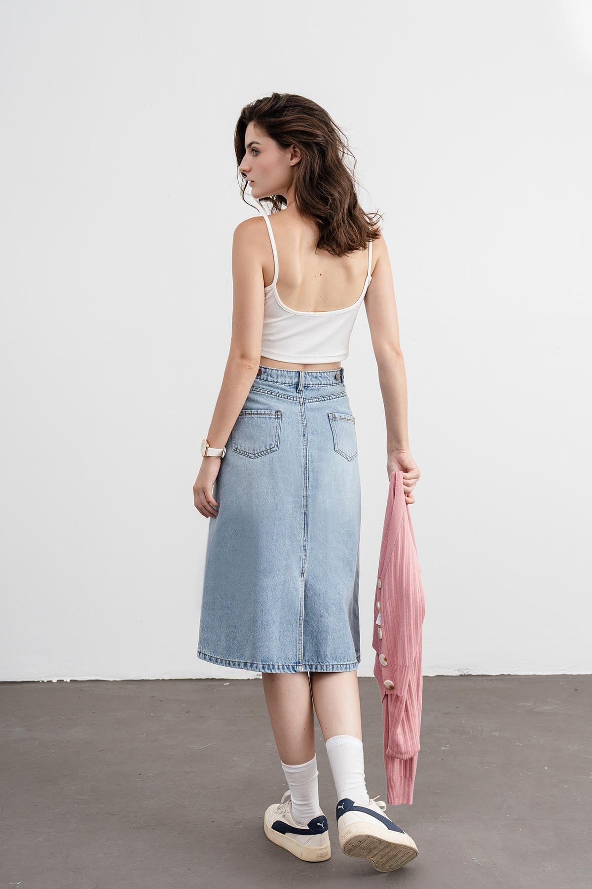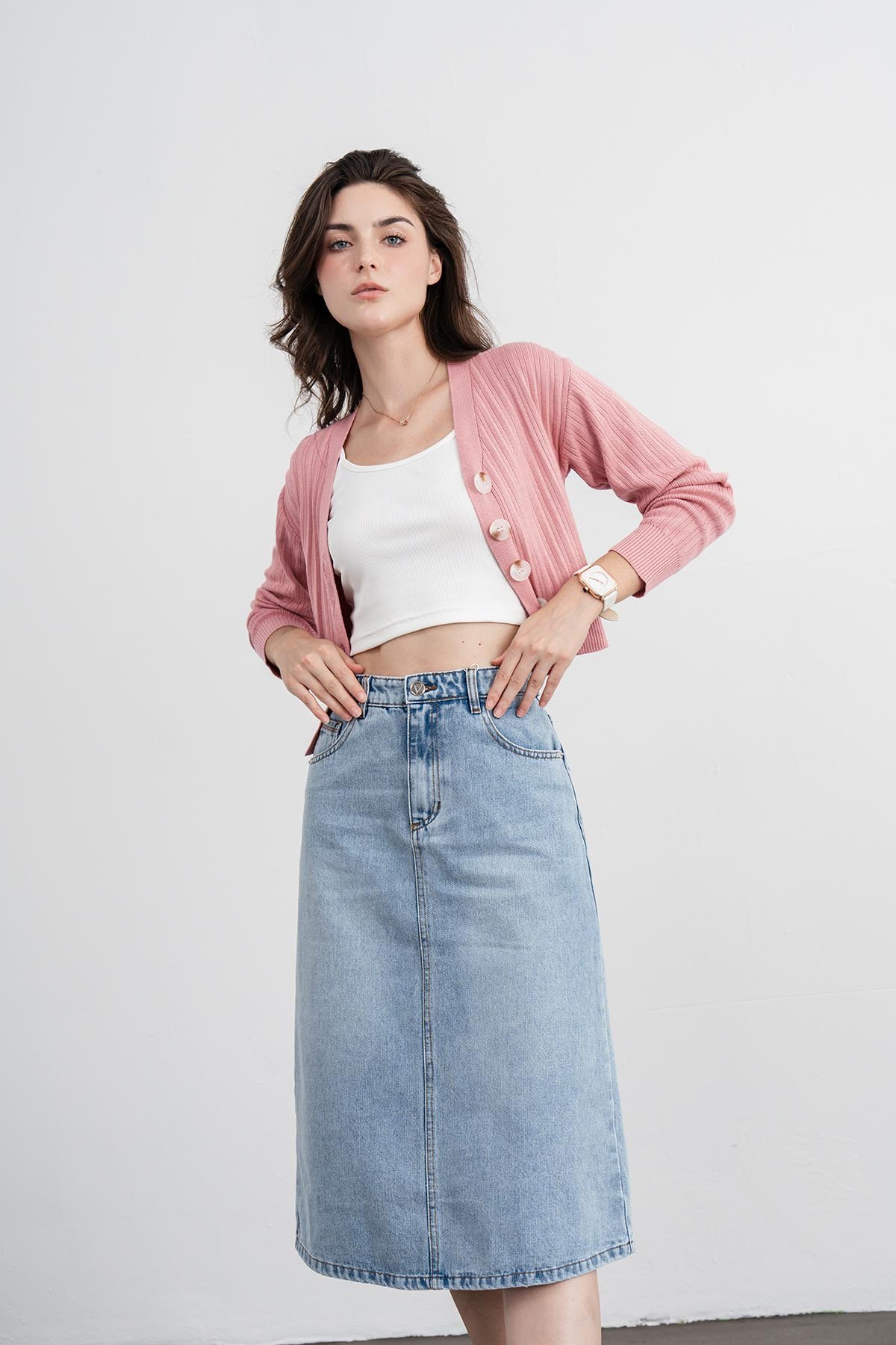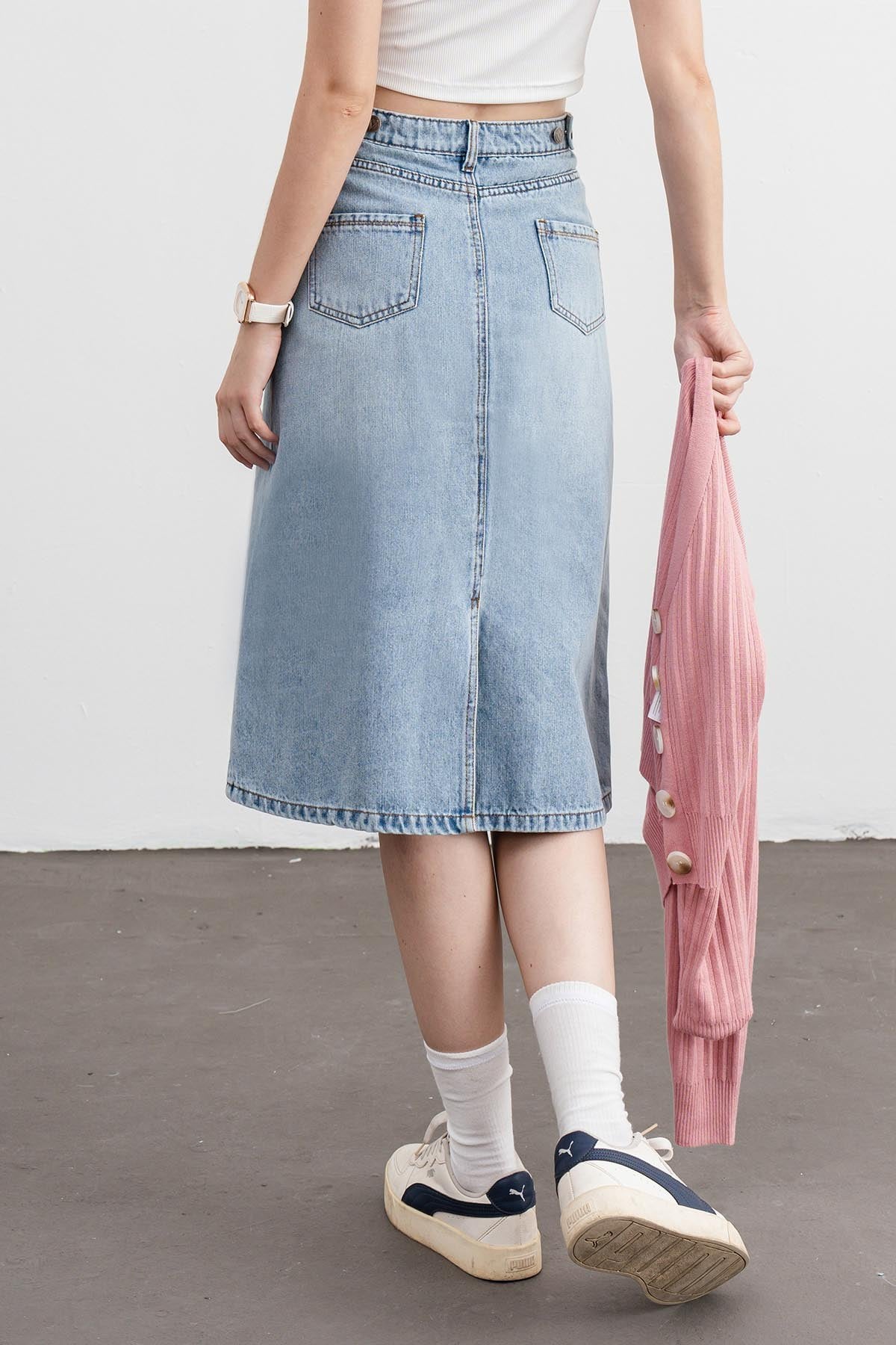 Chân váy Jean midi dáng A - V62I23Q008 KHUYẾN MÃI - ƯU ĐÃI