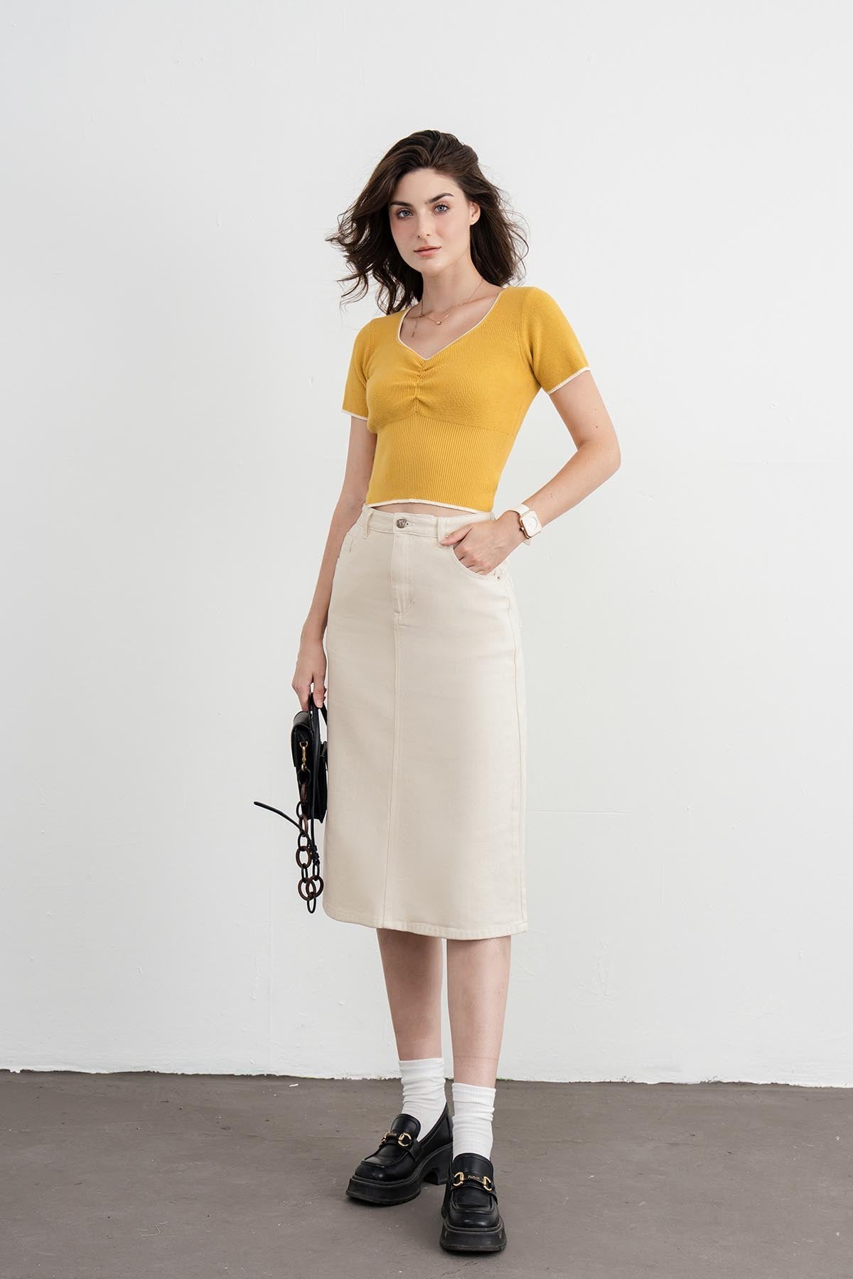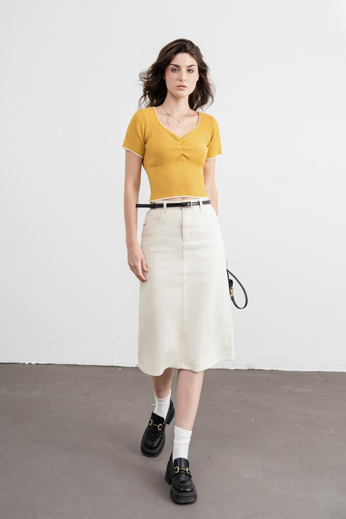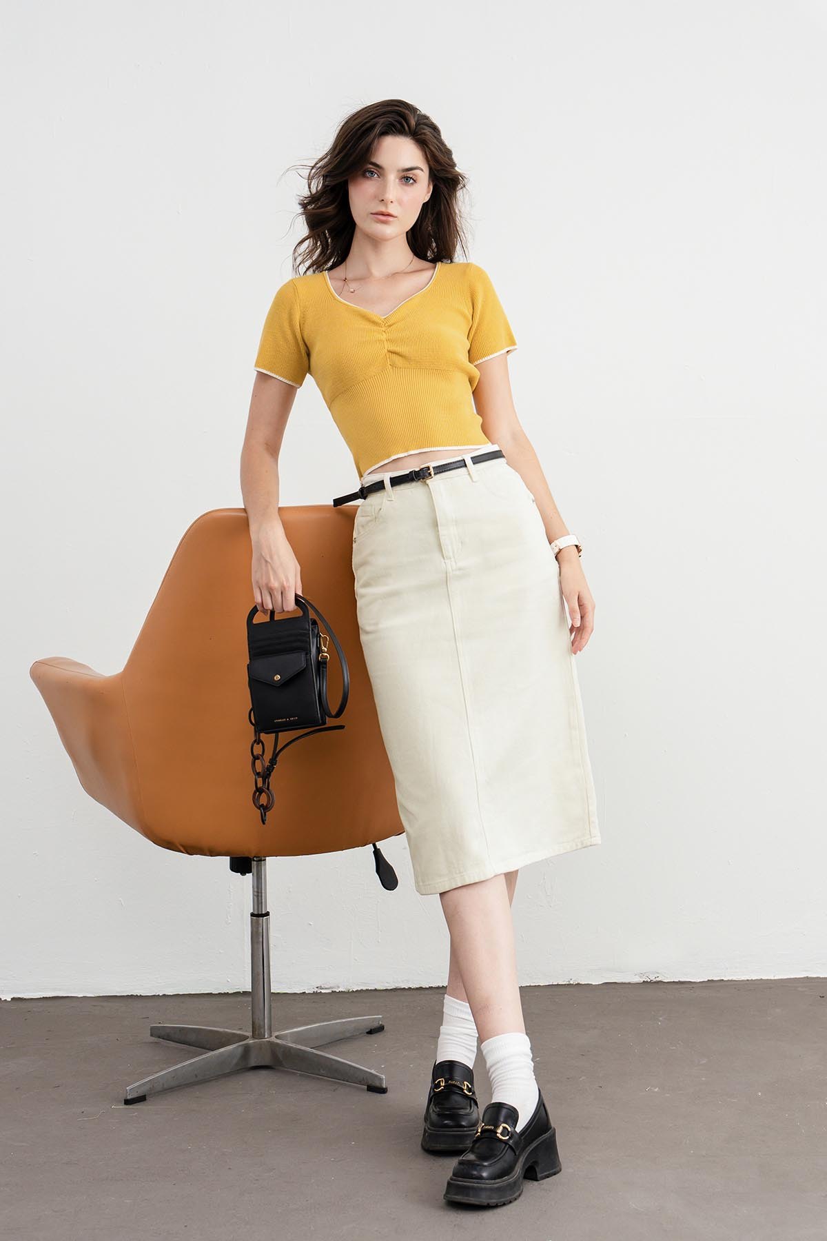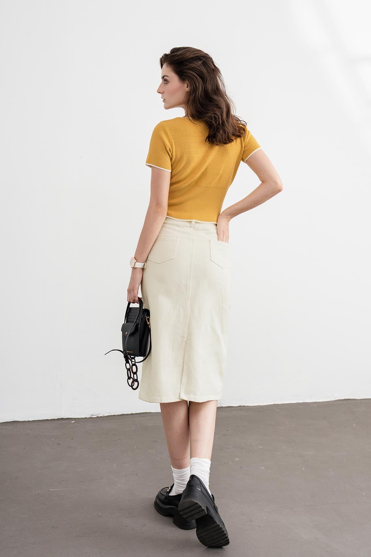 Chân váy Jean midi dáng A - V62I23Q008 KHUYẾN MÃI - ƯU ĐÃI