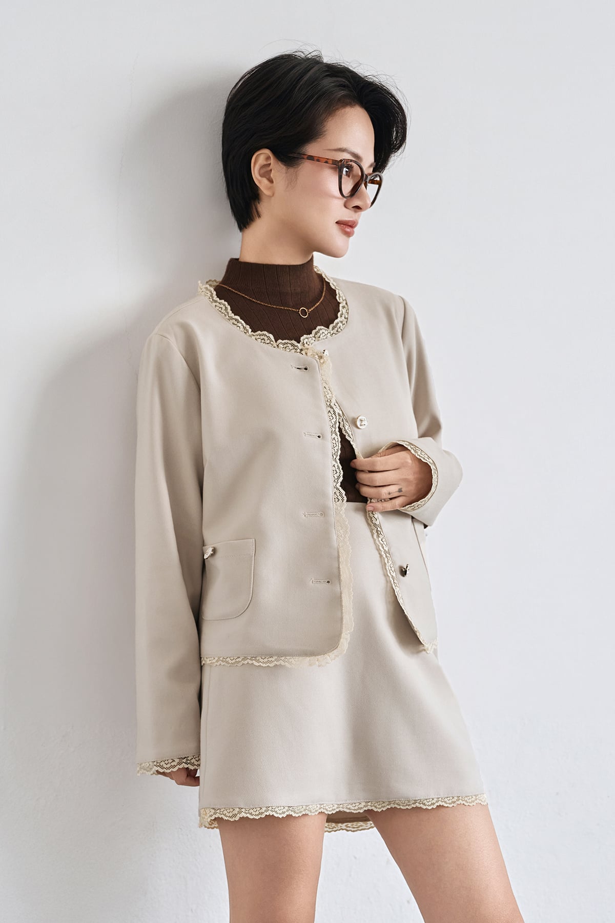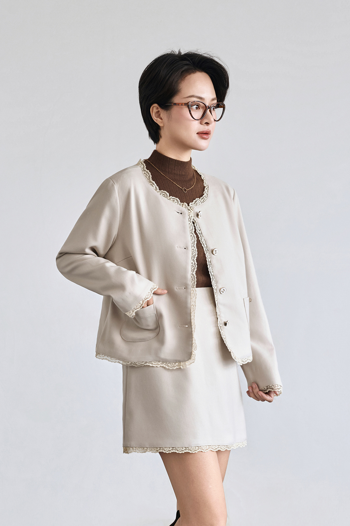 Chân váy ngắn phối ren - V62R25Q010